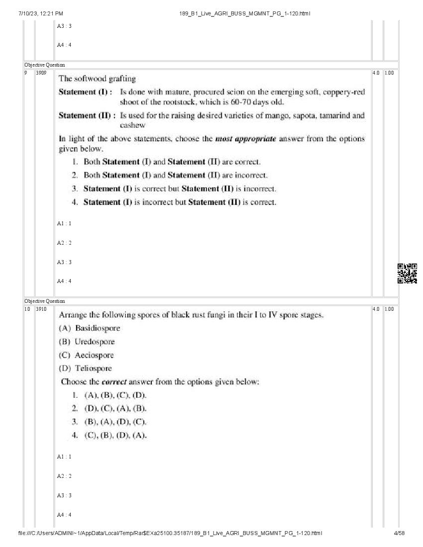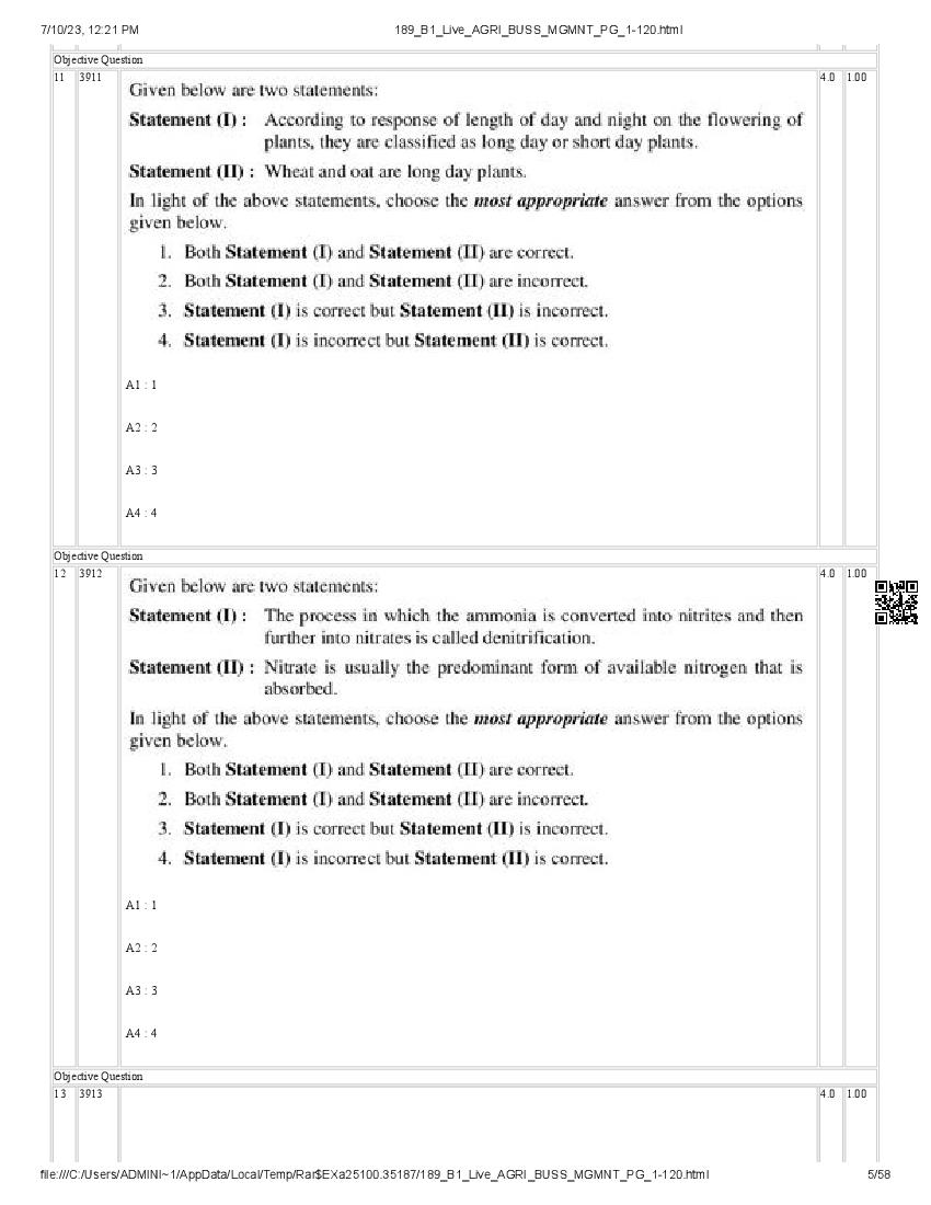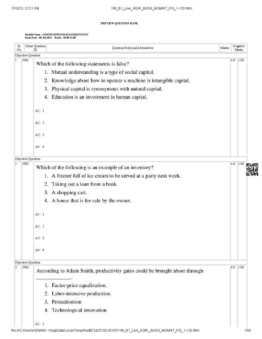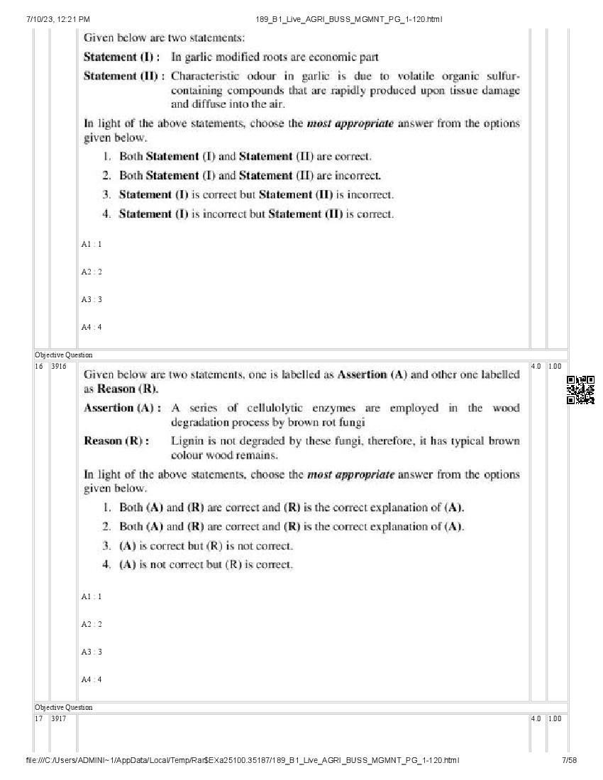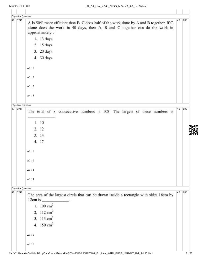 ICAR AIEEA PG 2023 Question Paper Agri Business Management View Download