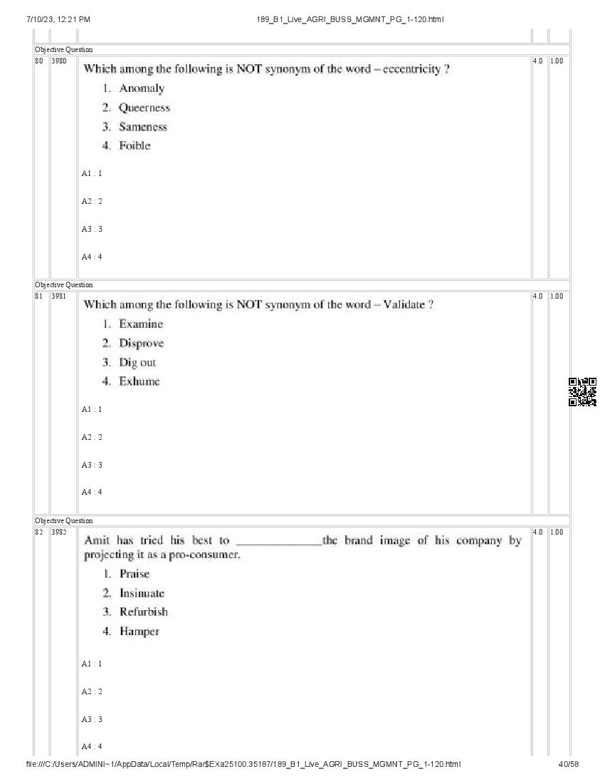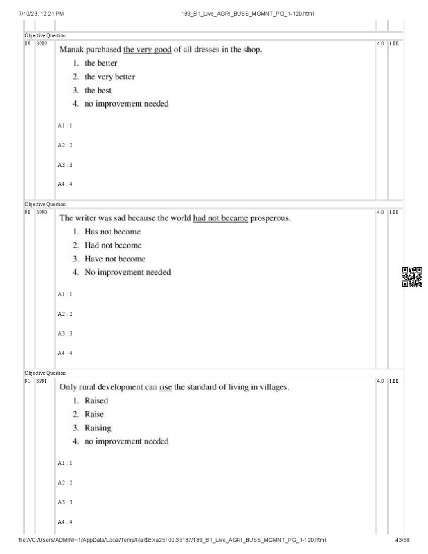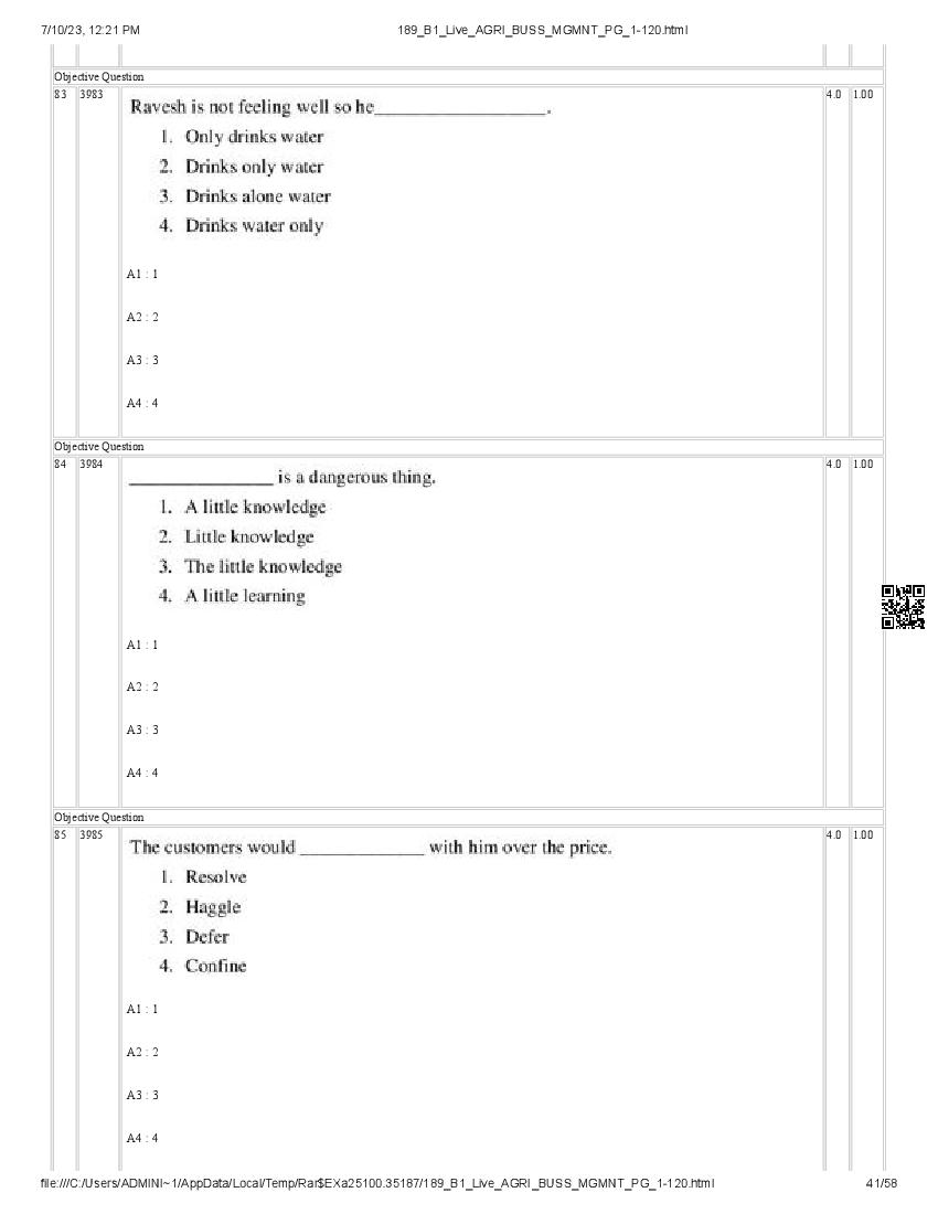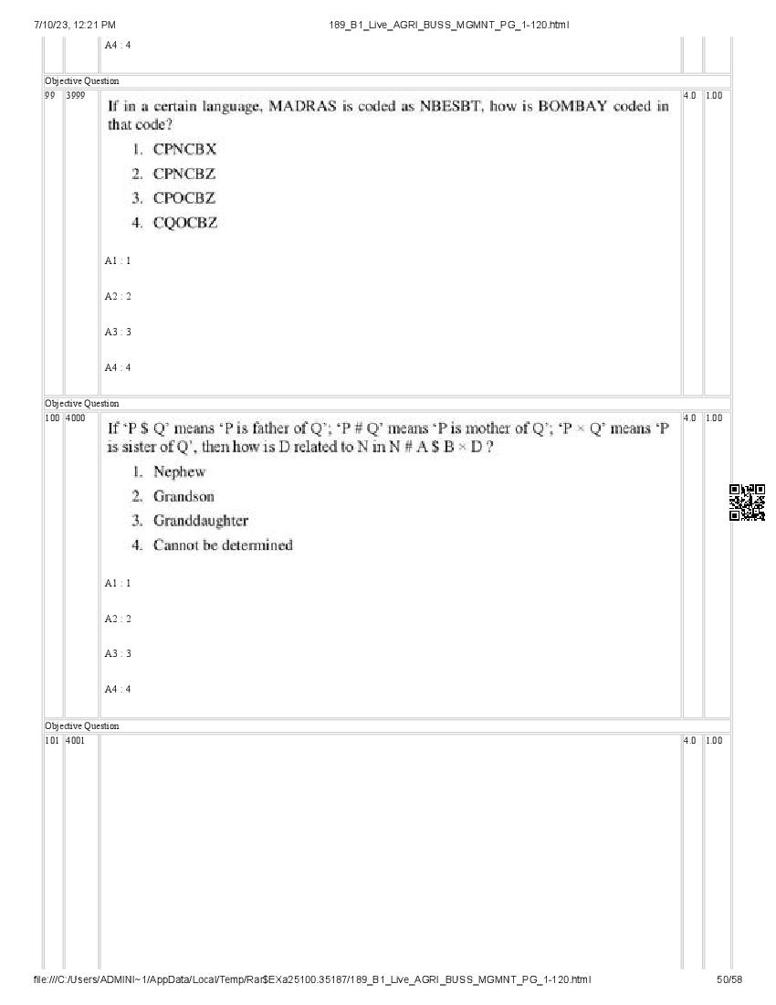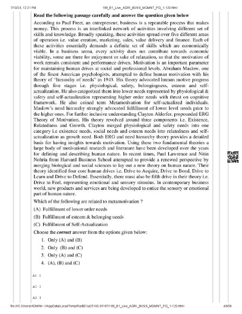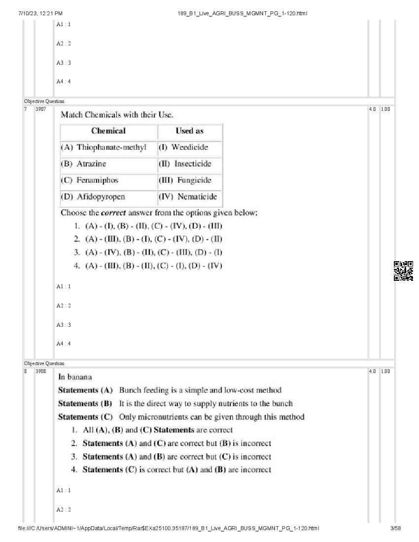 ICAR AIEEA PG 2023 Question Paper Agri Business Management View Download