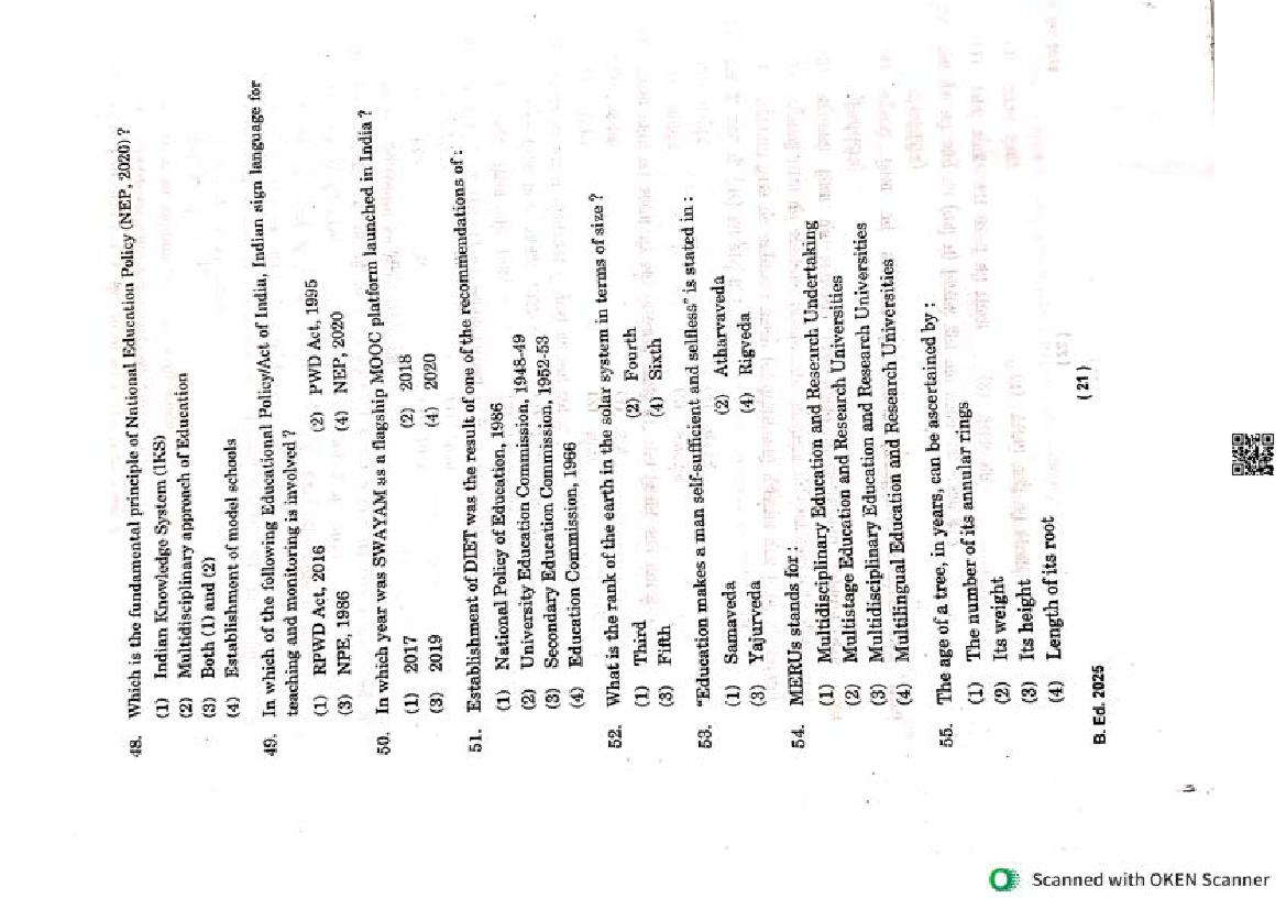 The question paper of IGNOU B.Ed Entrance Exam 2025 is as follows. Indira Gandhi National Open University Bachelor in Education Entrance Exam (IGNOU B.Ed) is the University level Education entrance exam for admission to B.Ed in IGNOU School of Education.