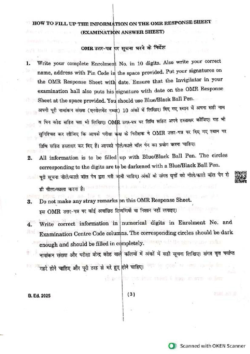 - Then solve IGNOU B.Ed Question Paper 2025 in set time limit.