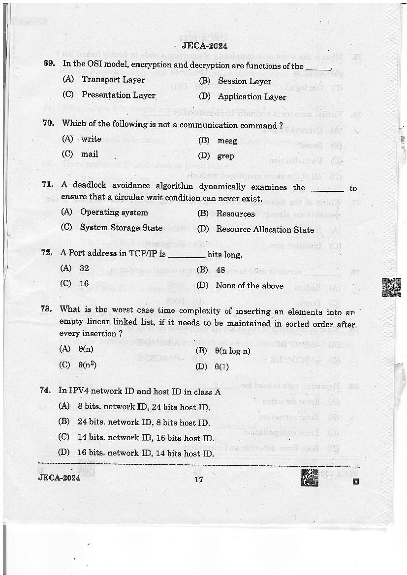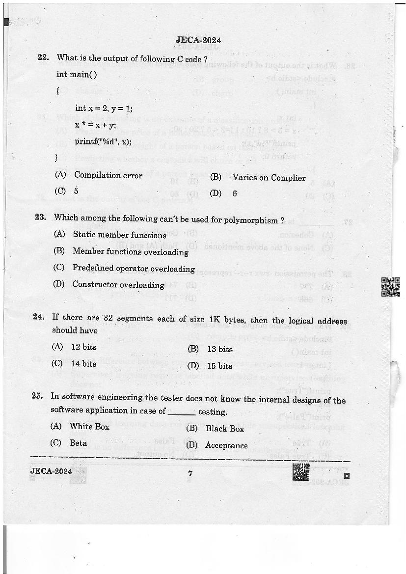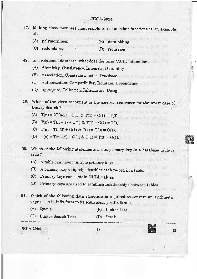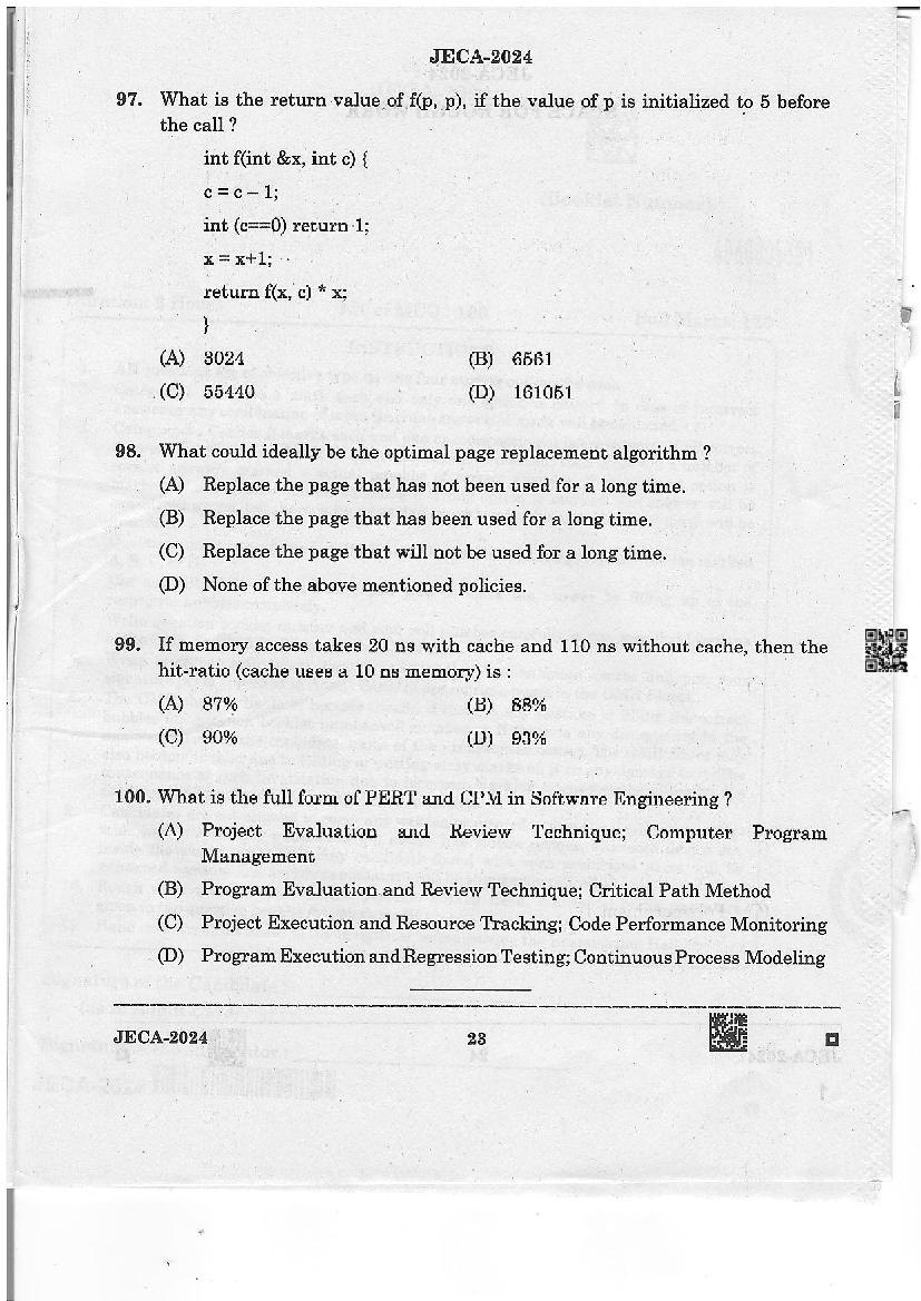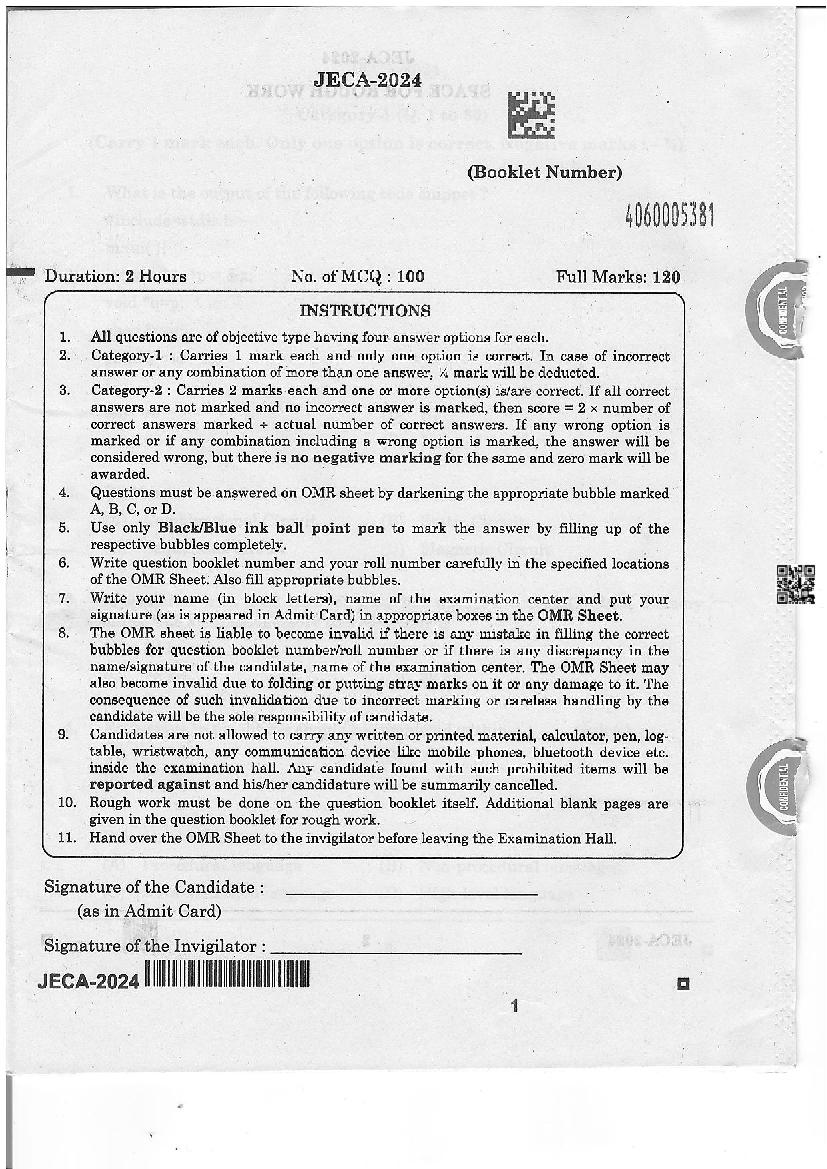 The question paper of JECA 2024 is as follows. Joint Entrance for admission in to MCA course (WB JECA) is the State level MCA entrance exam for admission to MCA in various Universities, Government as well as Self Financing Institutes in the State of West Bengal.