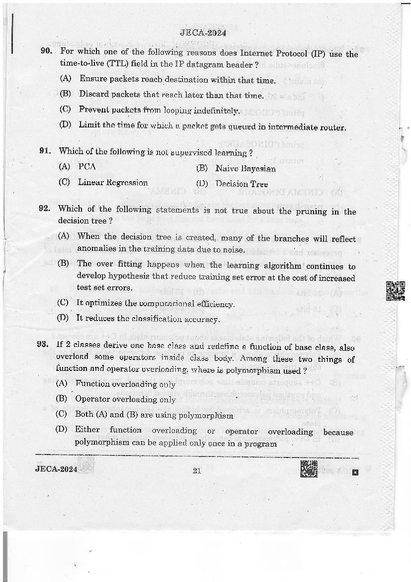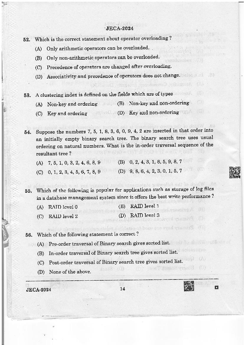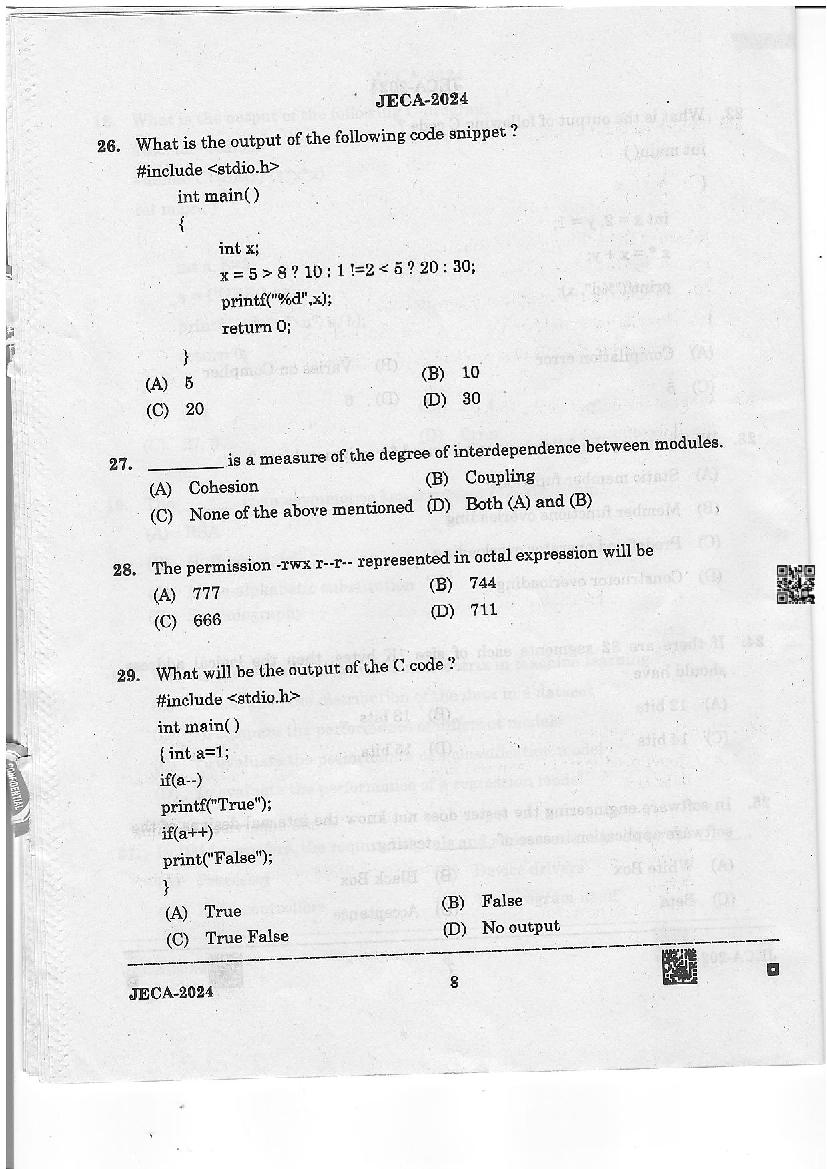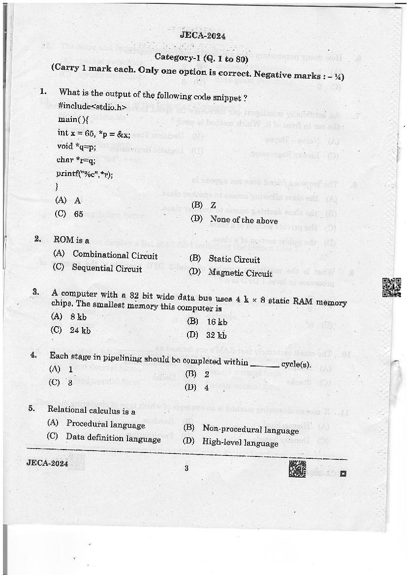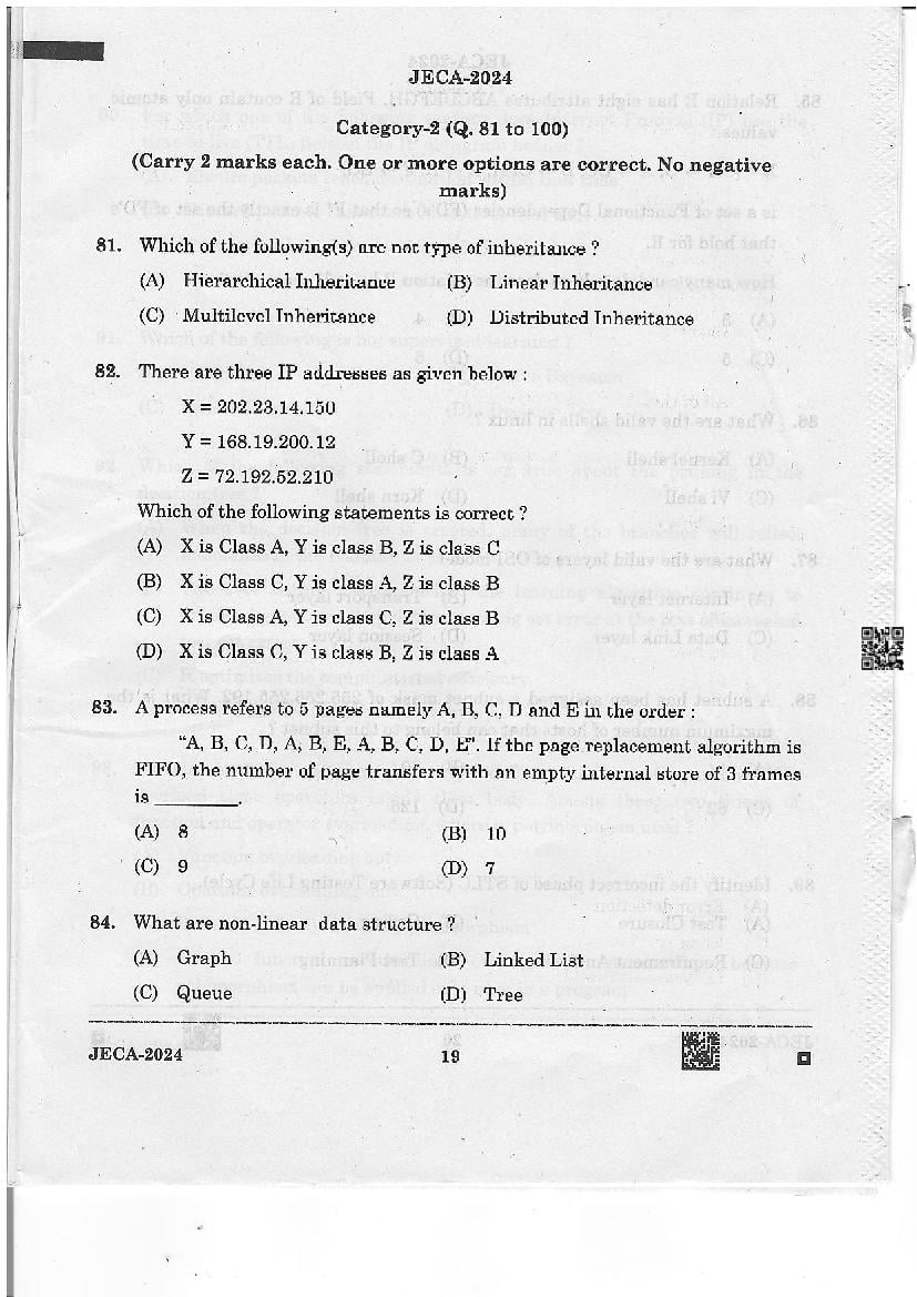 The question paper of JECA 2024 is as follows. Joint Entrance for admission in to MCA course (WB JECA) is the State level MCA entrance exam for admission to MCA in various Universities, Government as well as Self Financing Institutes in the State of West Bengal.