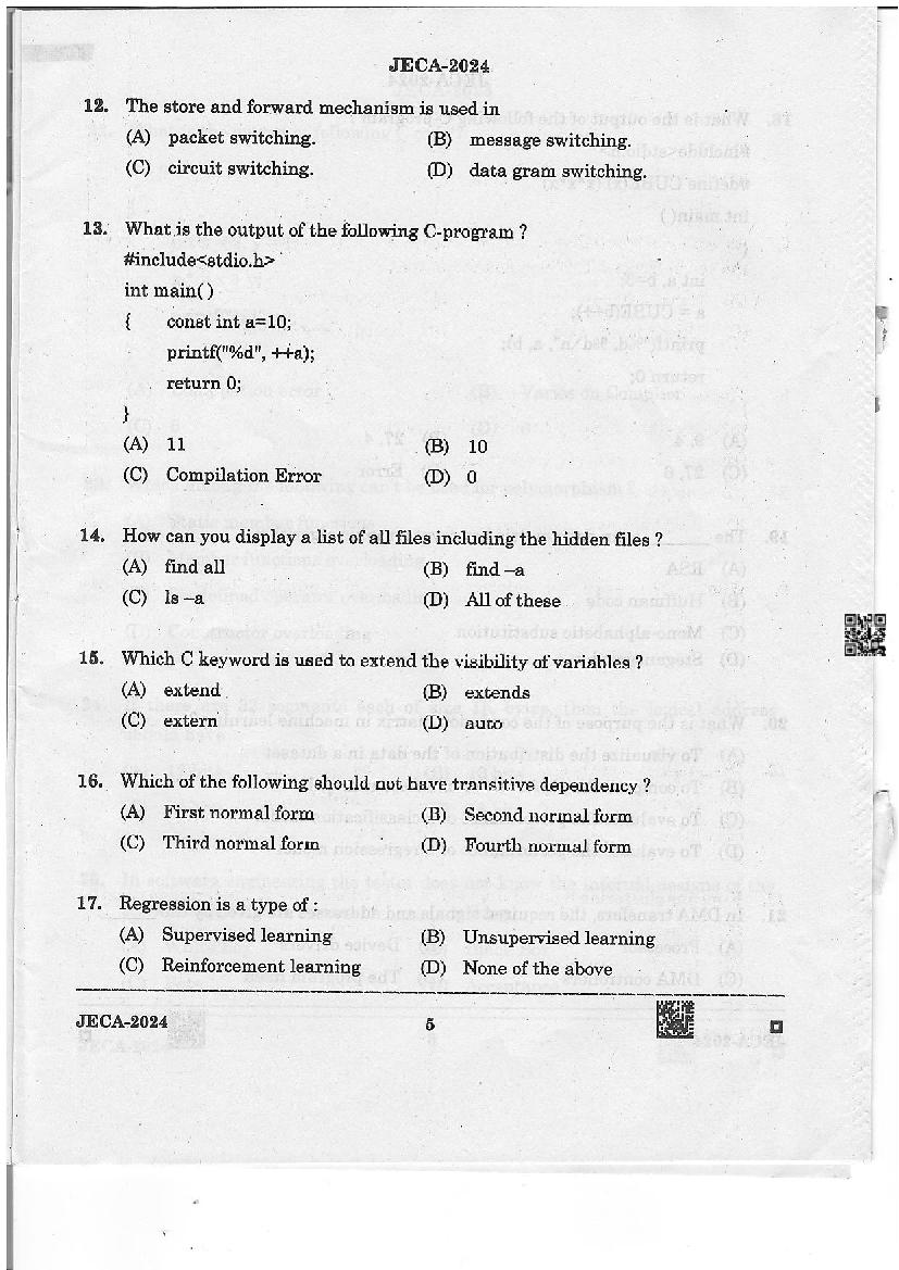 WB JECA 2024 question paper is published here. You can download the WB JECA Question Paper 2024 PDF from here on aglasem to know all the questions asked in exam. This WB JECA previous year question paper is of the Joint Entrance for admission in to MCA course held in the year 2024. It contains exact questions asked in the test by West Bengal Joint Entrance Examinations Board (WBJEEB). If you are appearing in upcoming JECA, then you can enhance your exam preparation by practicing this question paper.