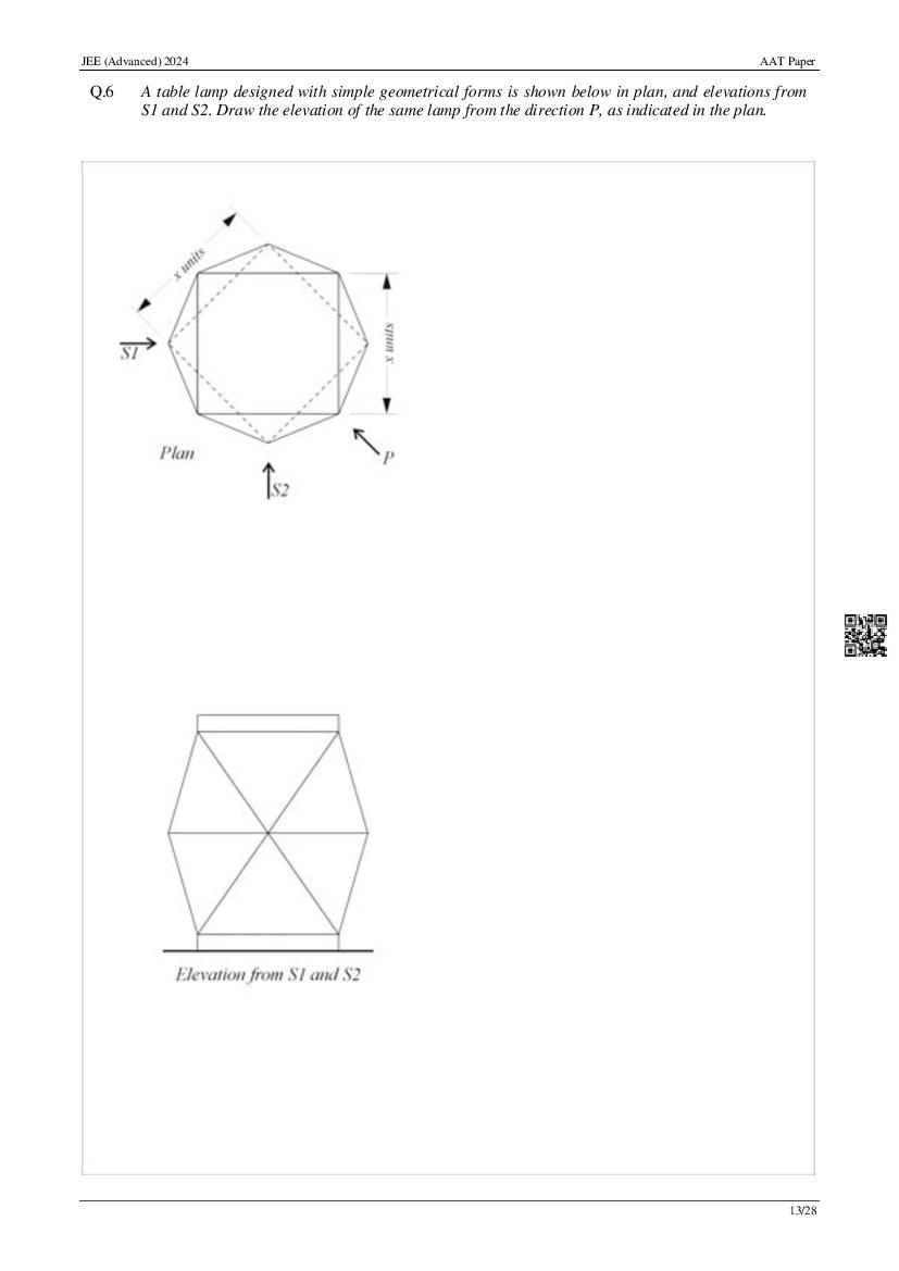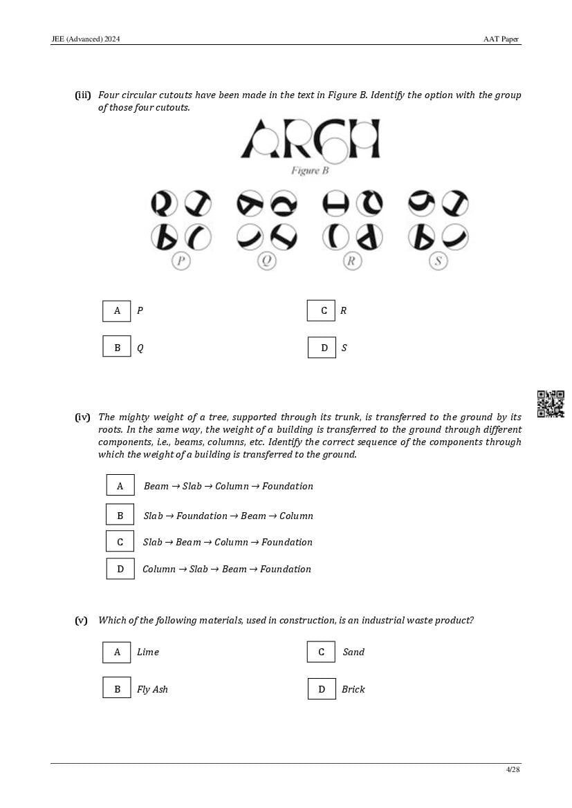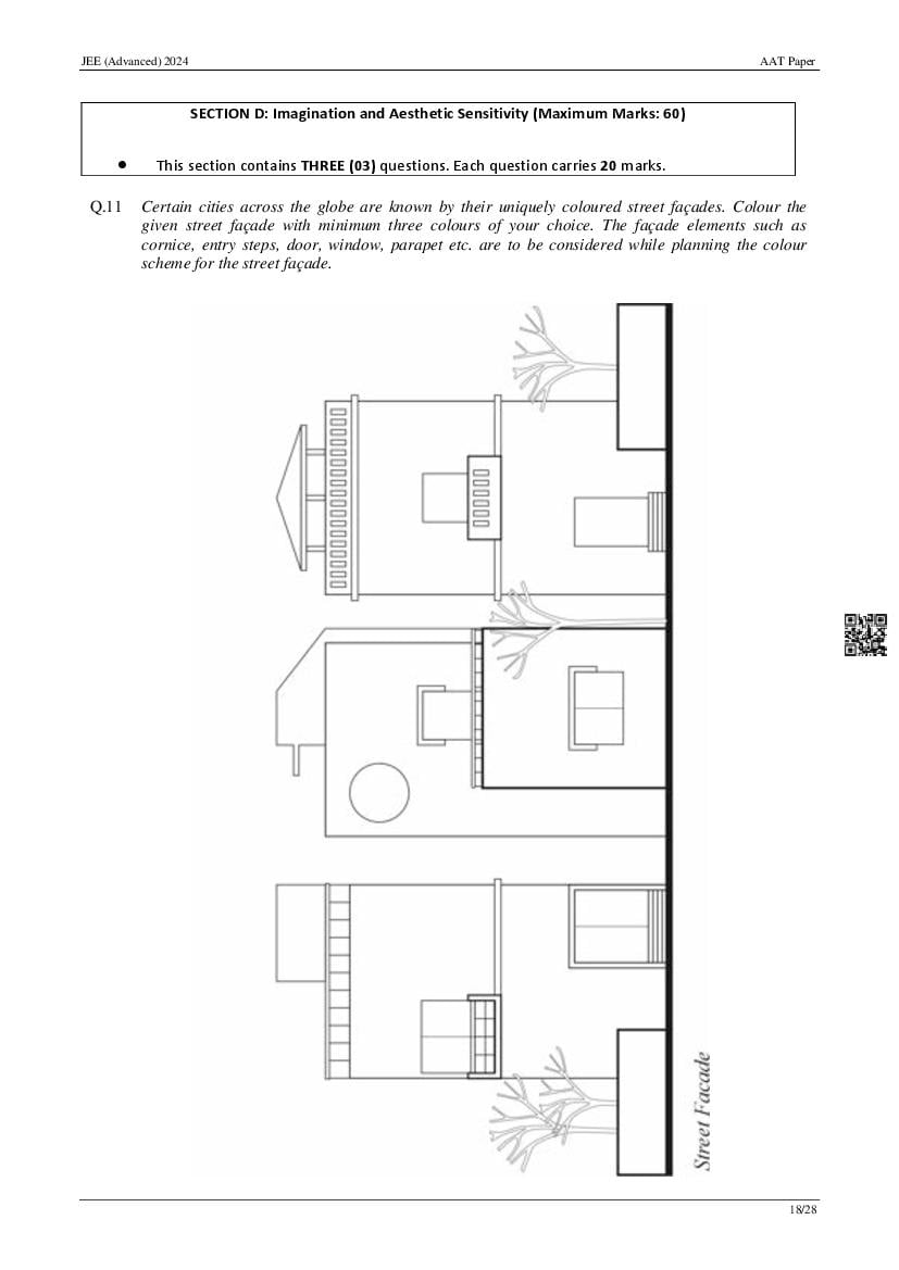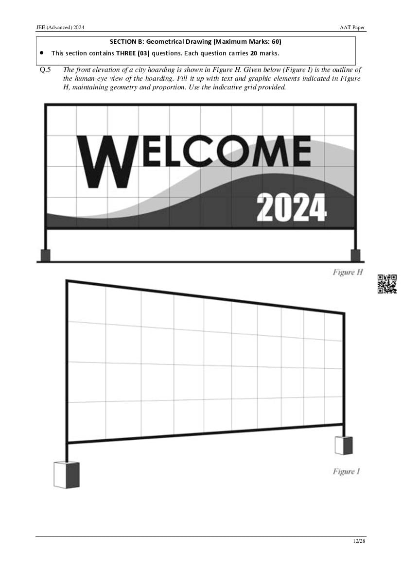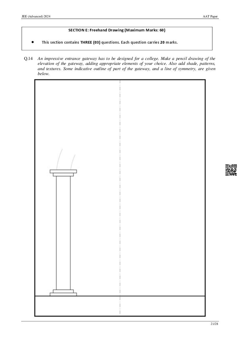 The question paper of AAT 2024 is as follows. Architecture Aptitude Test (JEE Advanced AAT) is the National level Architecture entrance exam for admission to B.Arch. in IIT (BHU) Varanasi, IIT Kharagpur and IIT Roorkee.