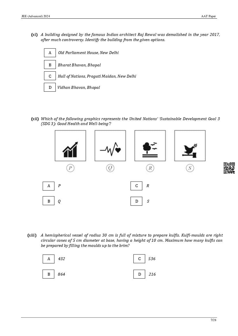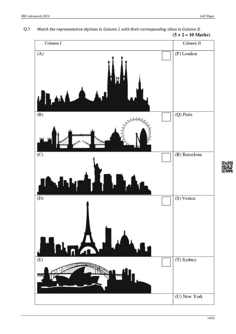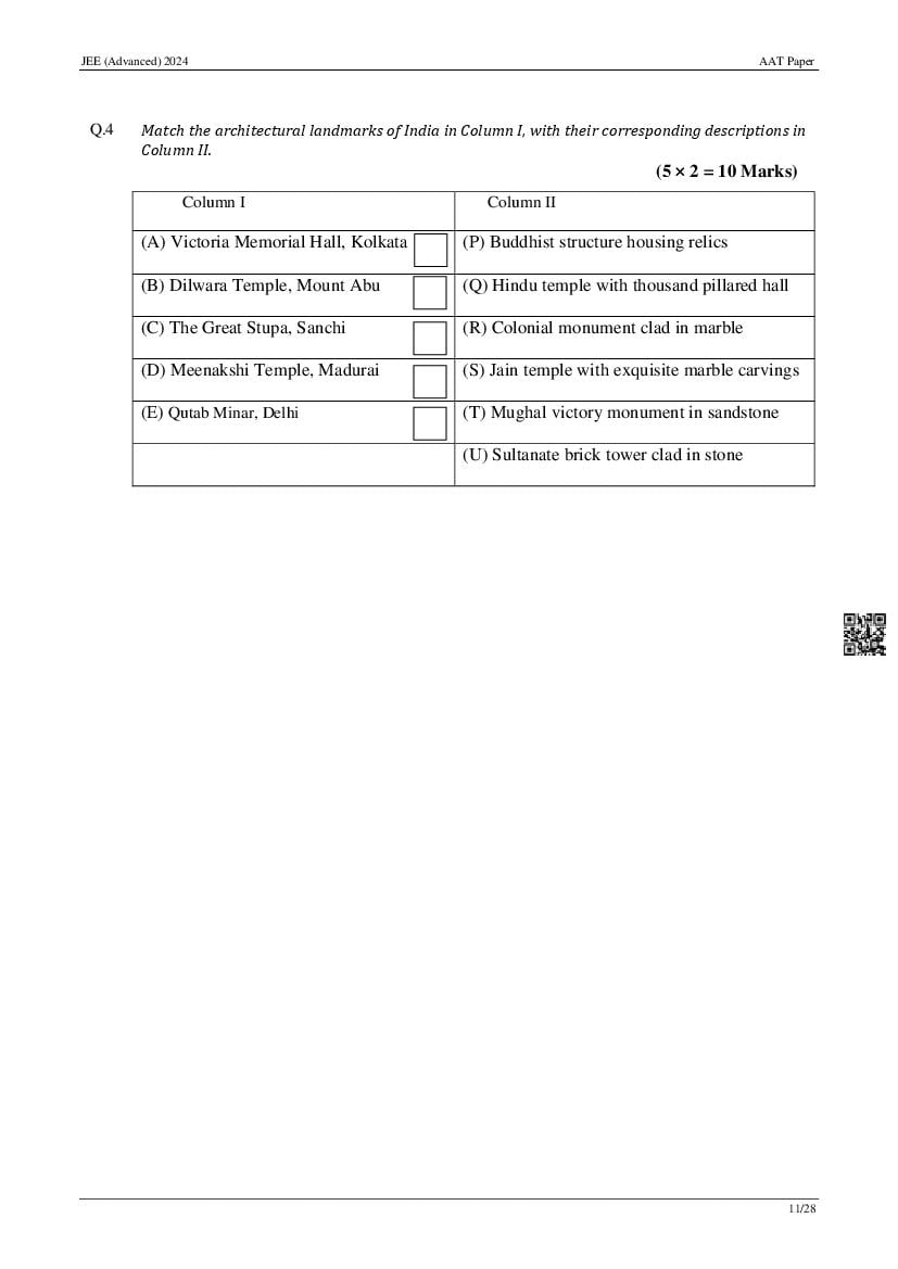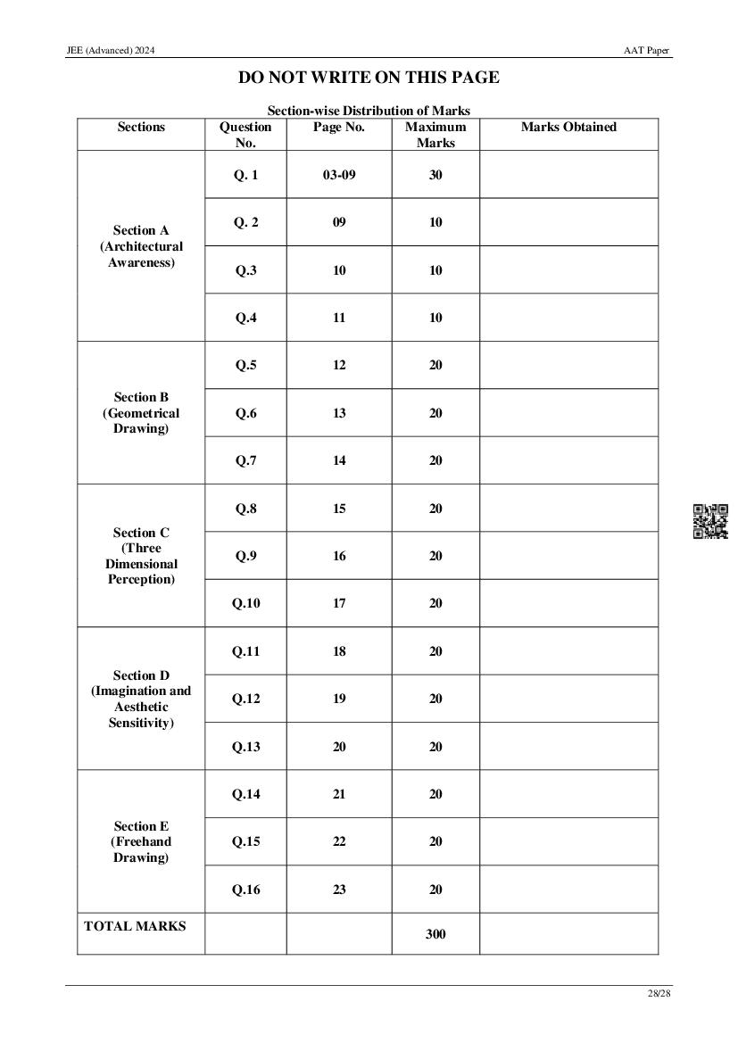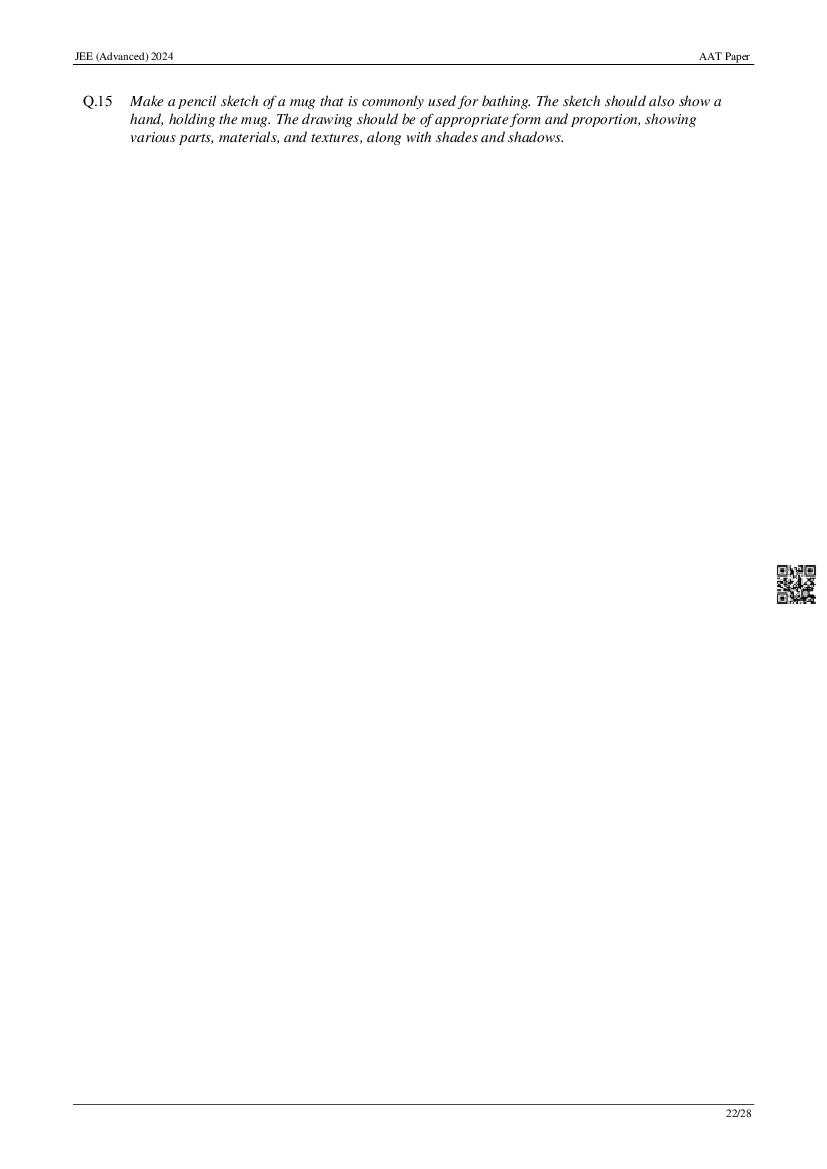 The question paper of AAT 2024 is as follows. Architecture Aptitude Test (JEE Advanced AAT) is the National level Architecture entrance exam for admission to B.Arch. in IIT (BHU) Varanasi, IIT Kharagpur and IIT Roorkee.