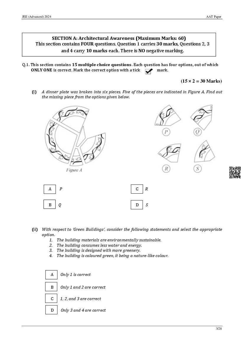 The key highlights of this Architecture Aptitude Test (JEE Advanced AAT) 2024 question papers are as follows.
