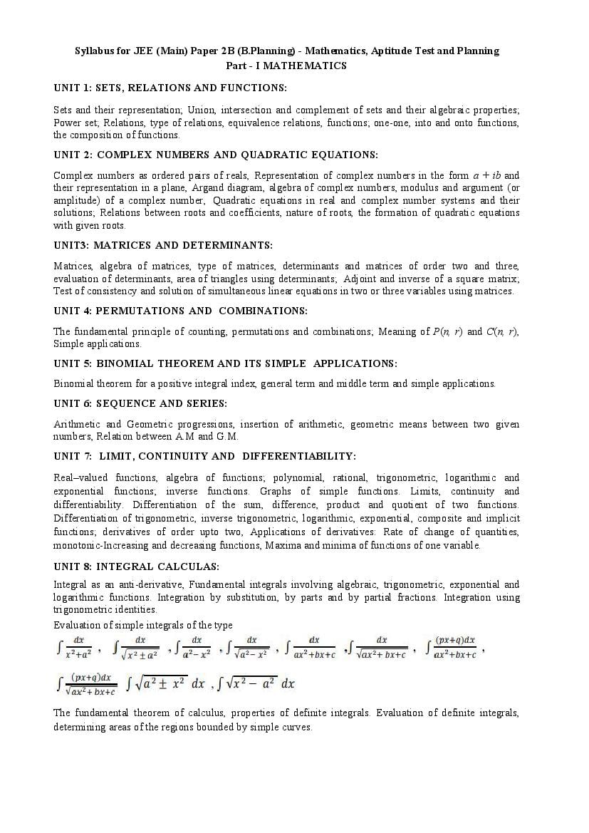 JEE Main Syllabus 2026 PDF Download Link – Click here to download the syllabus of JEE Main