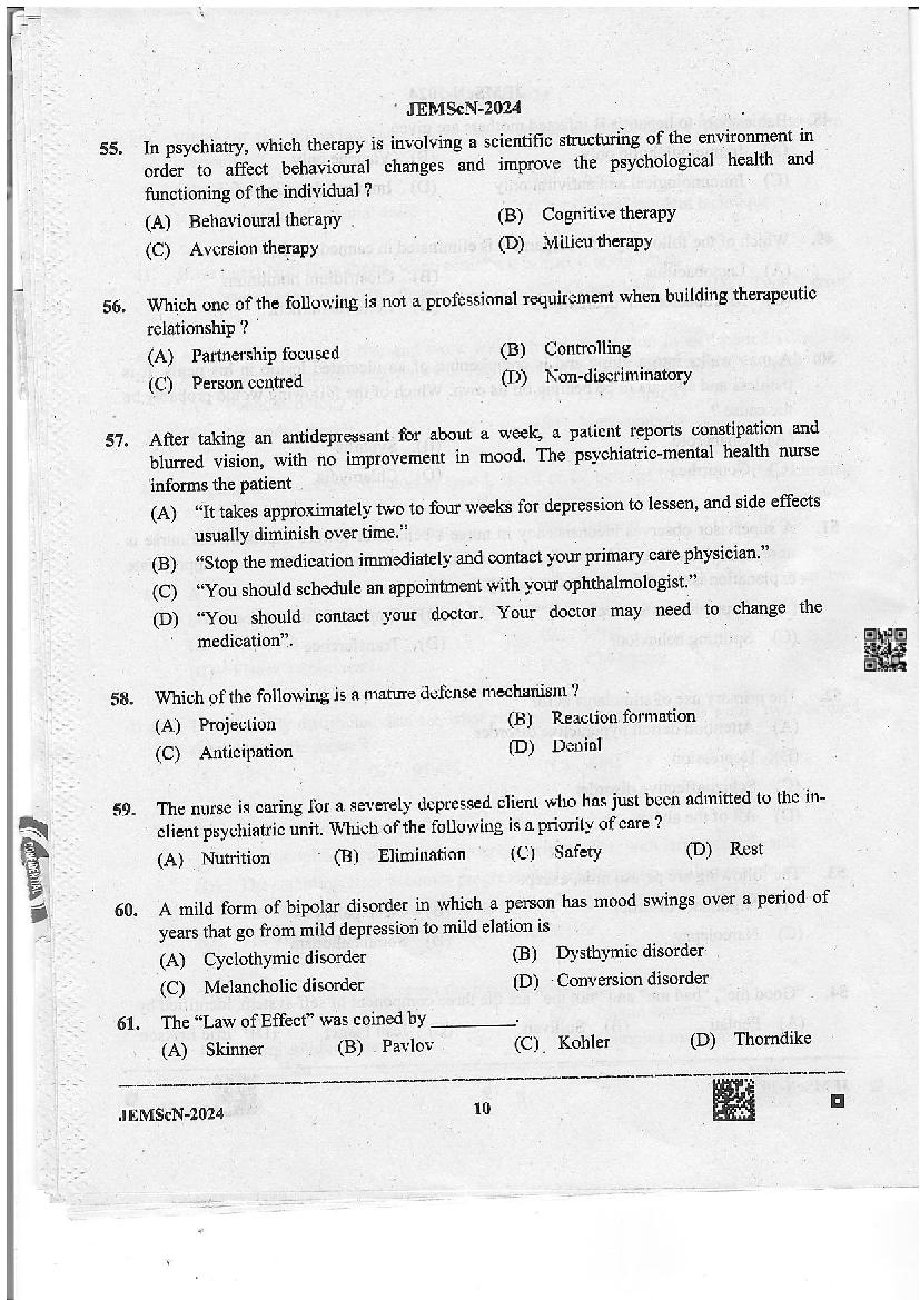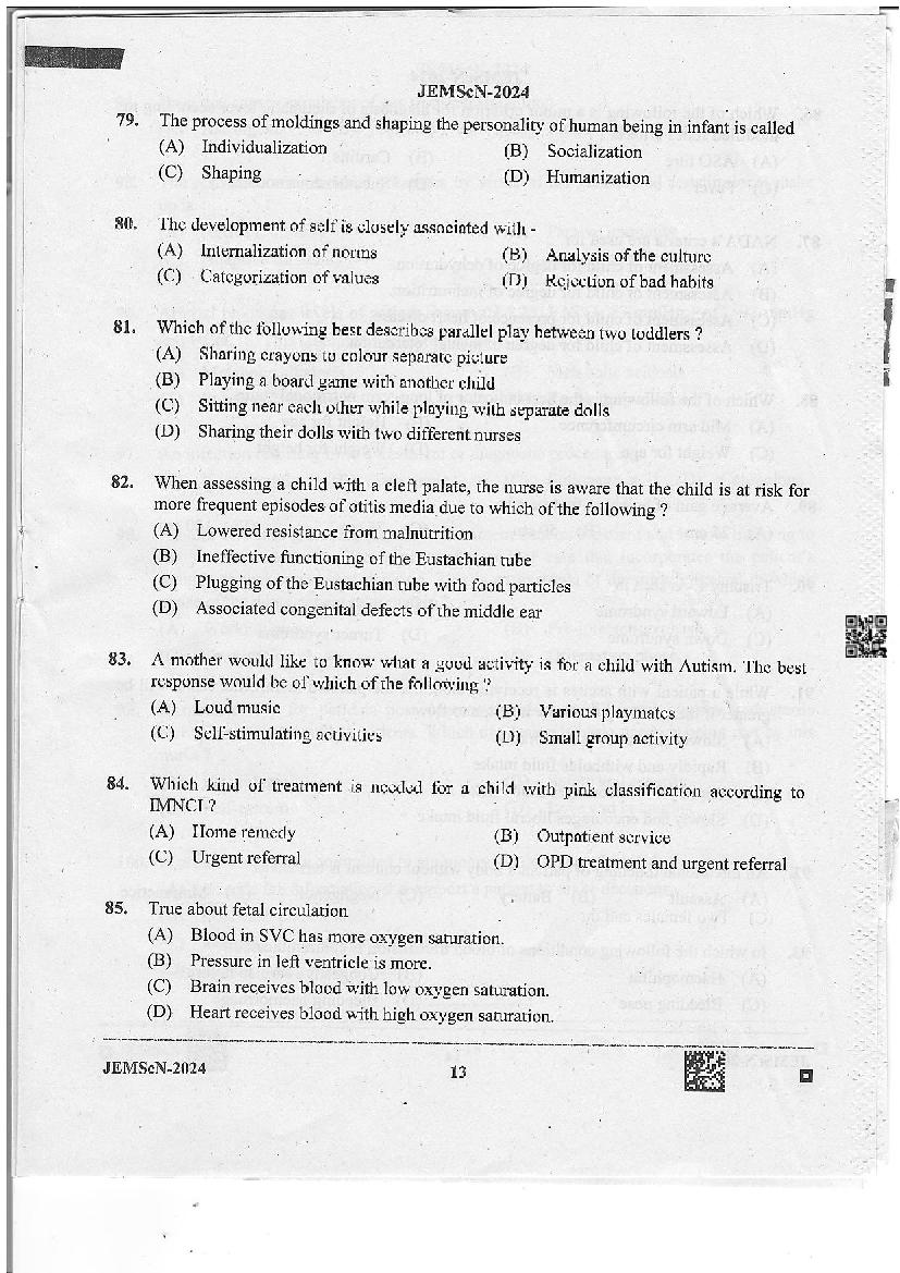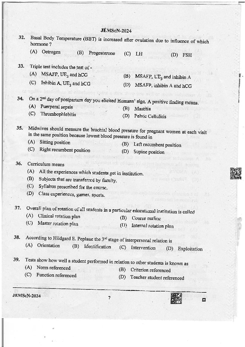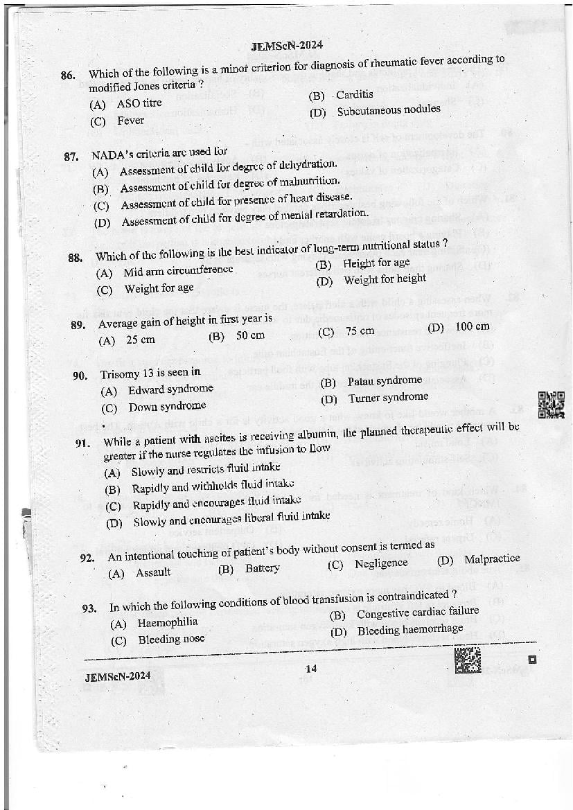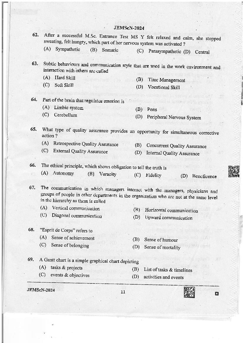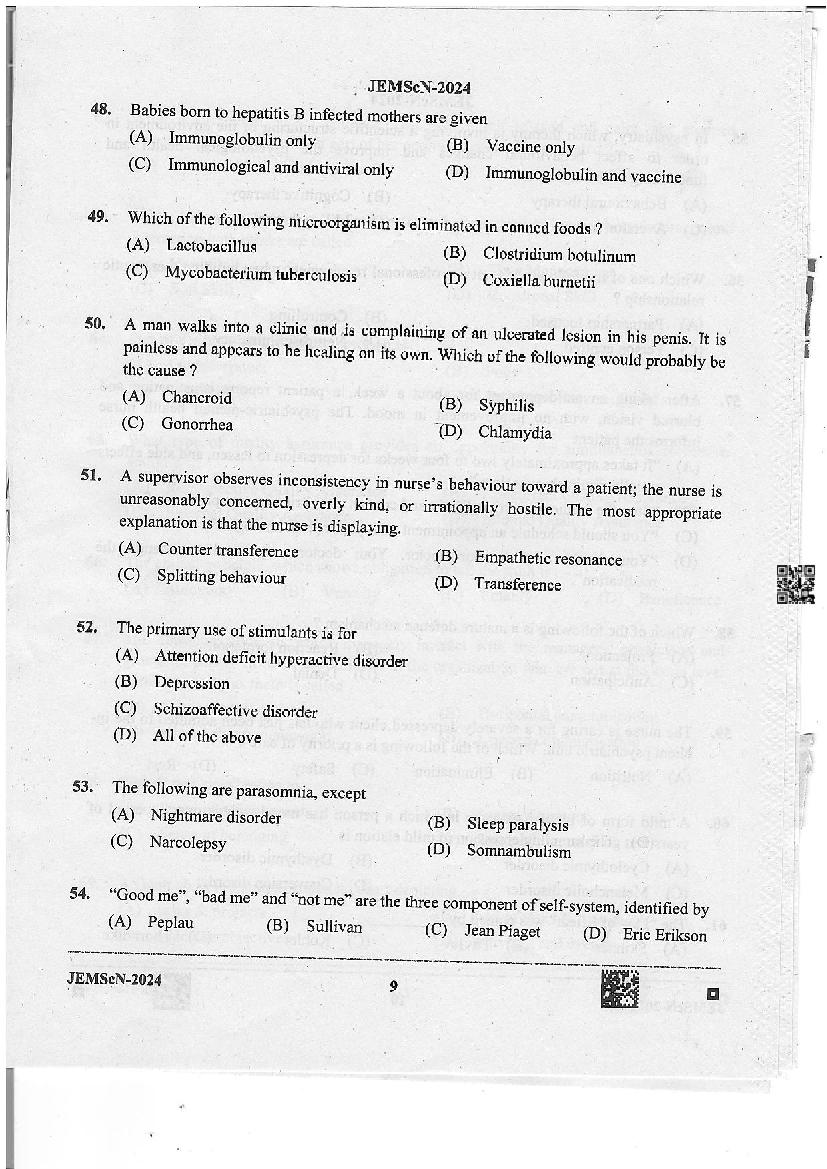 The key highlights of this Joint Entrance for Mater of Science Nursing (JEMSCN) 2024 question papers are as follows.
