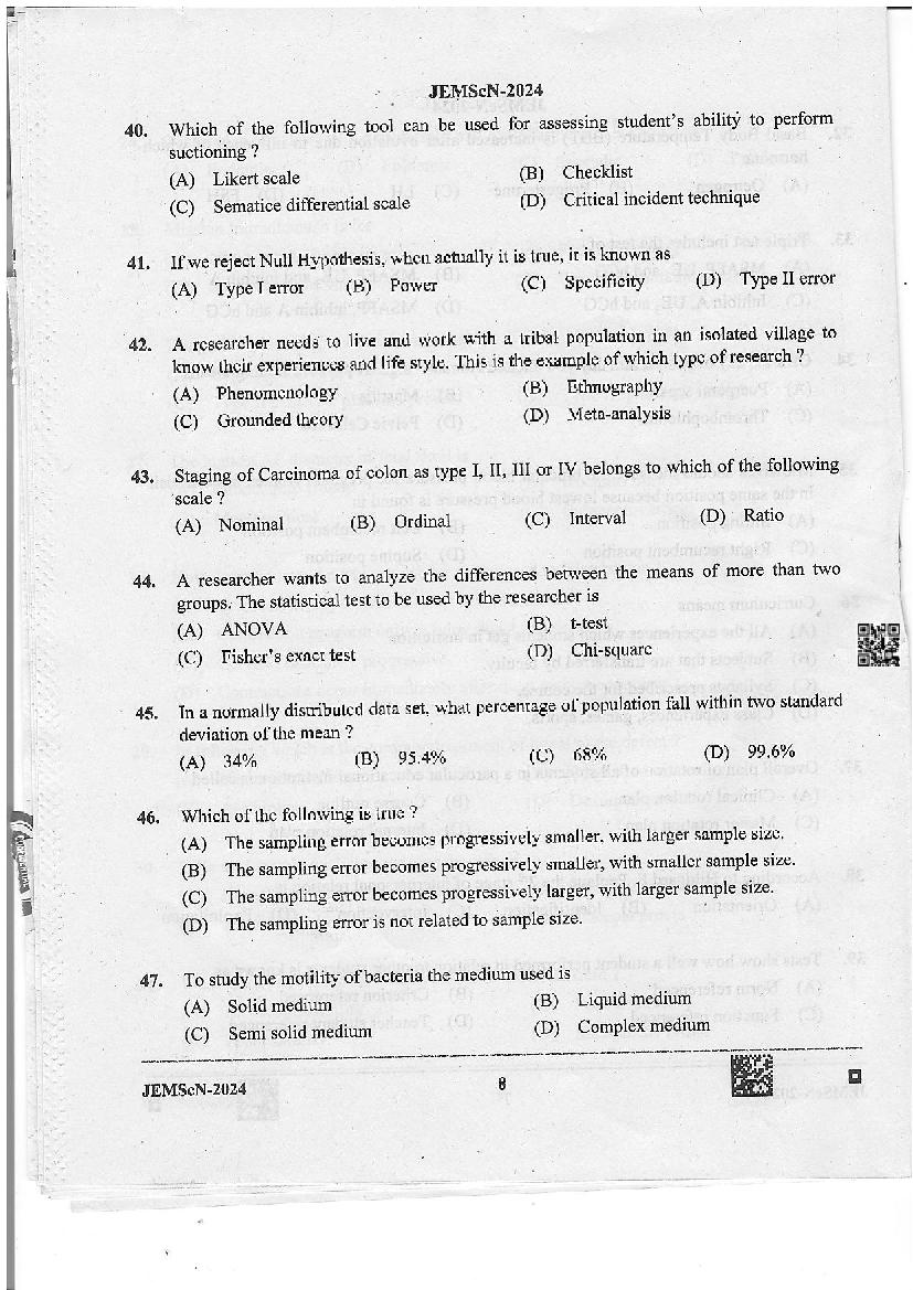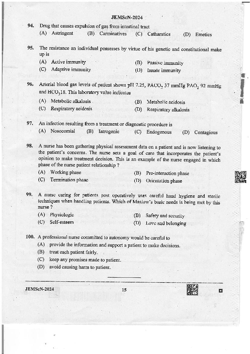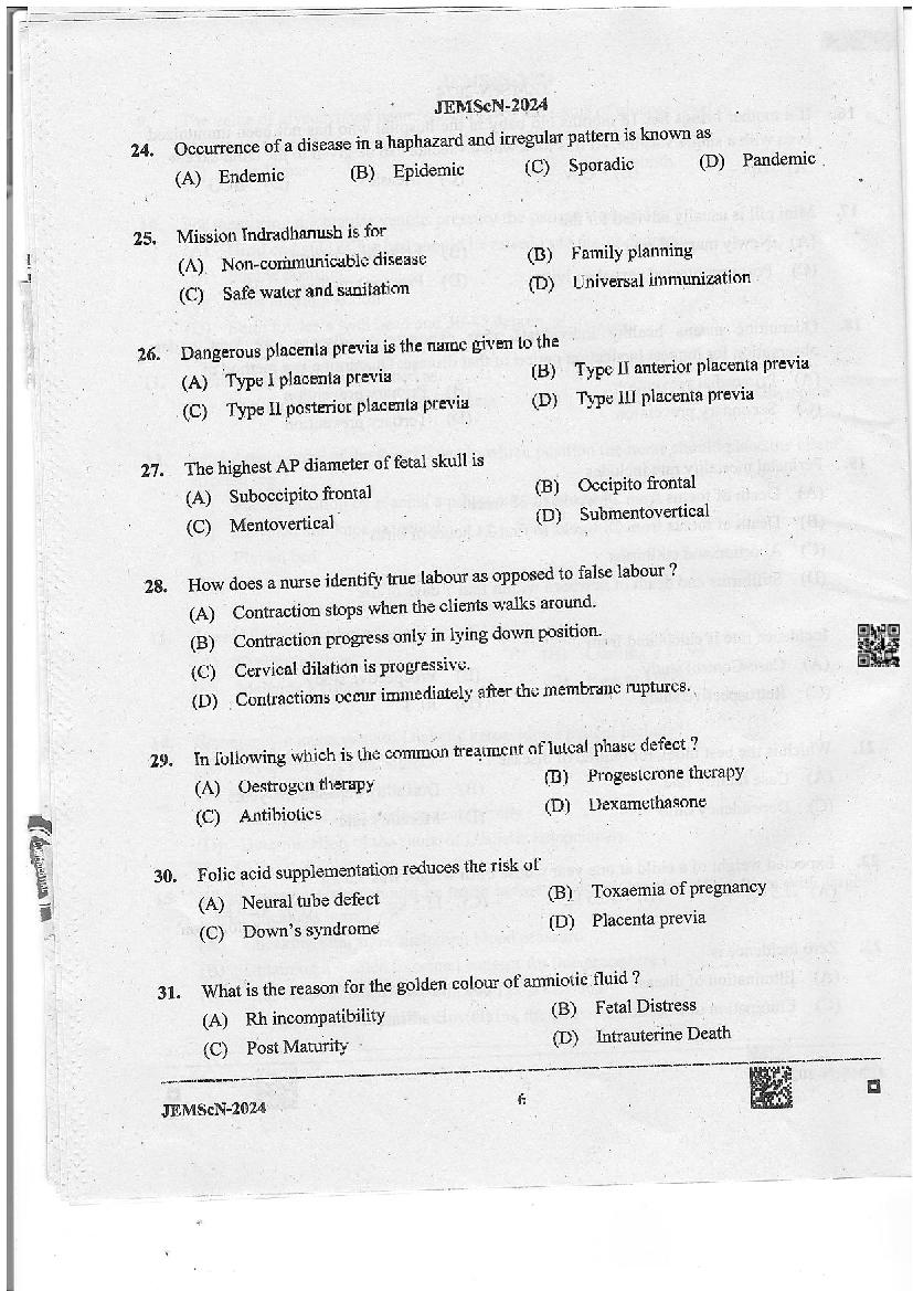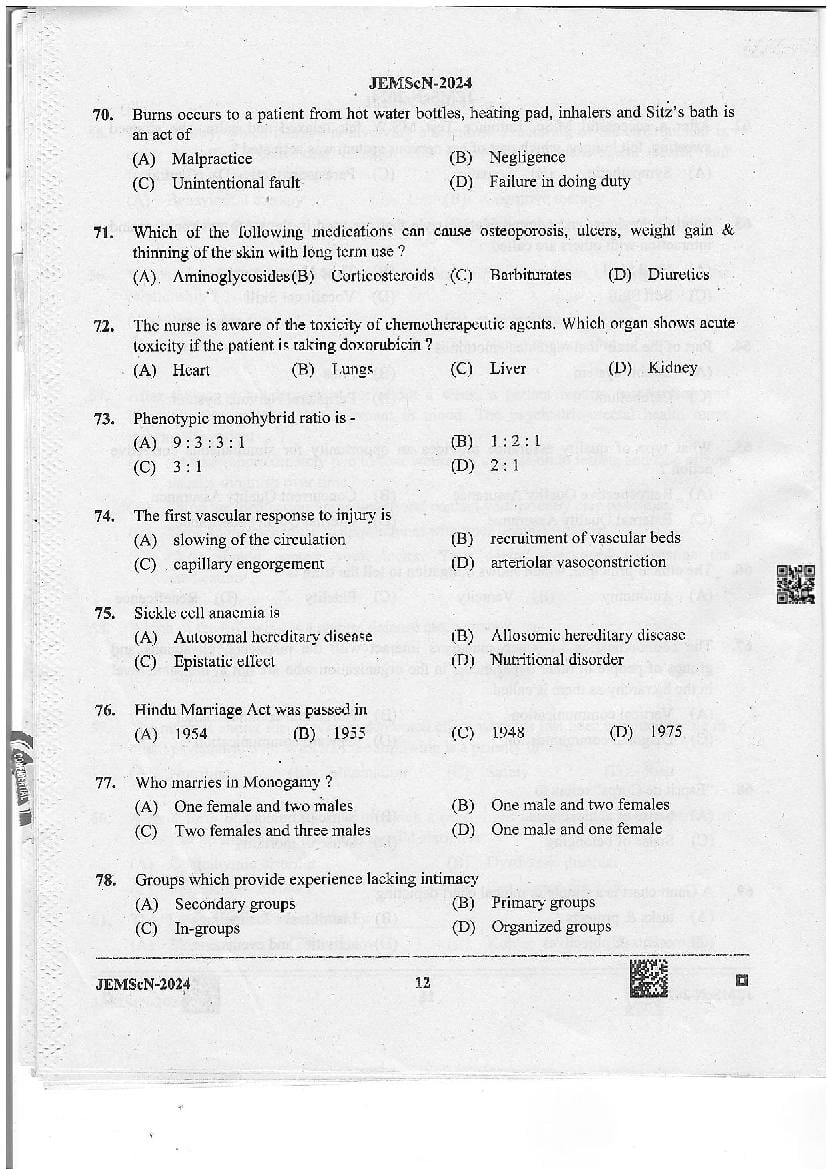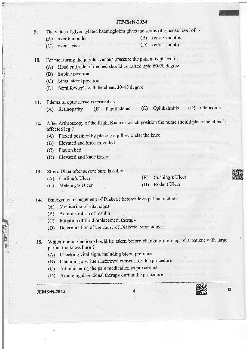| Exam Type of JEMSCN 2024 Question Paper | Nursing Entrance Exam |
