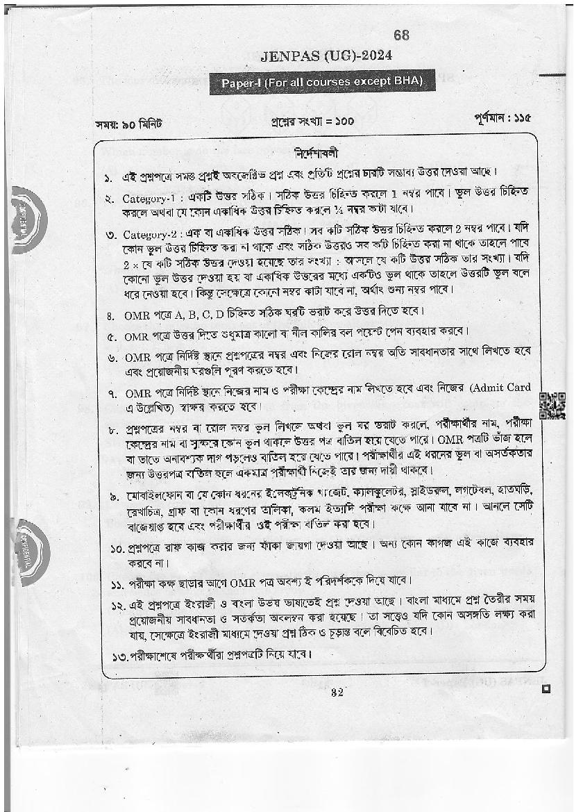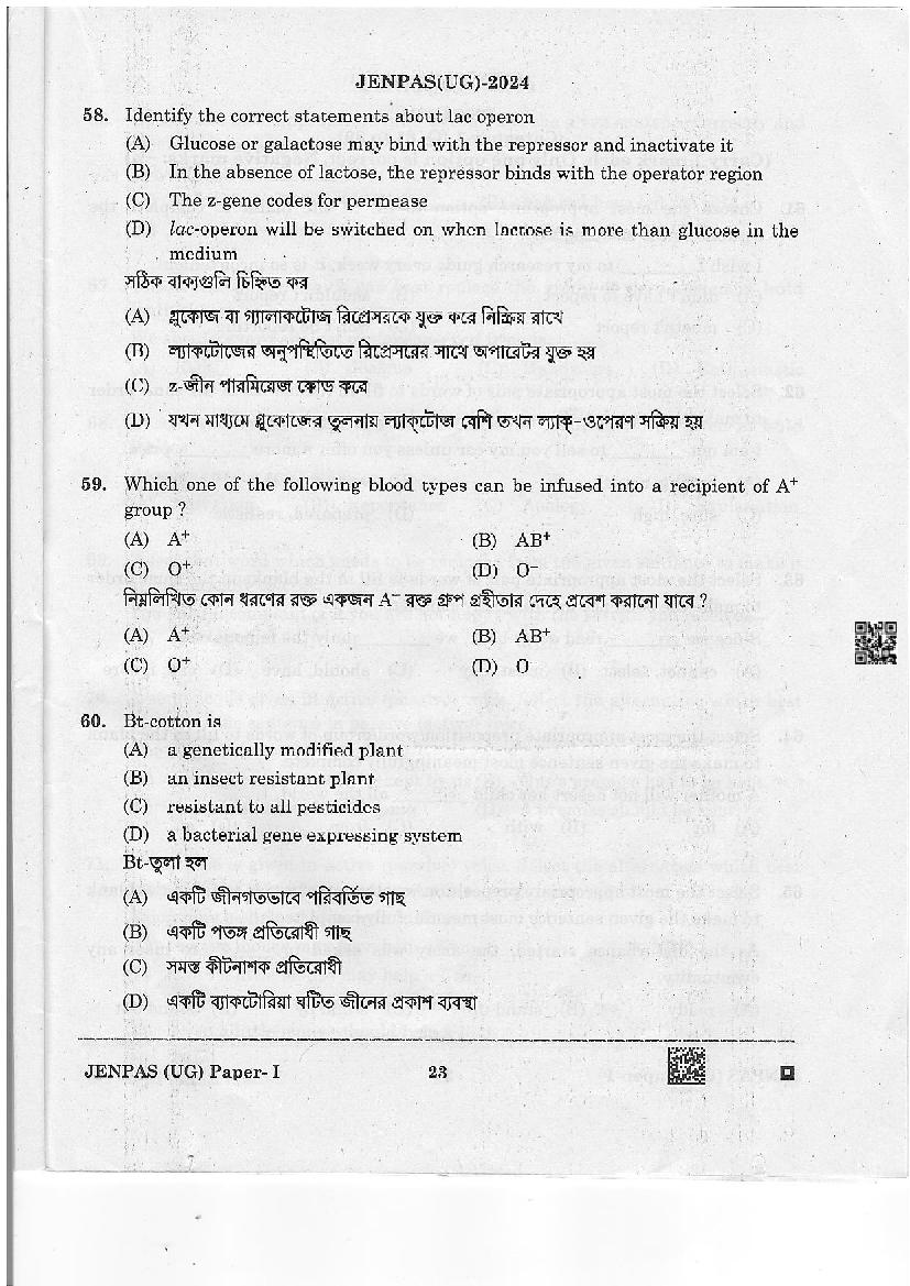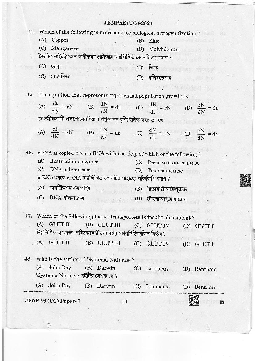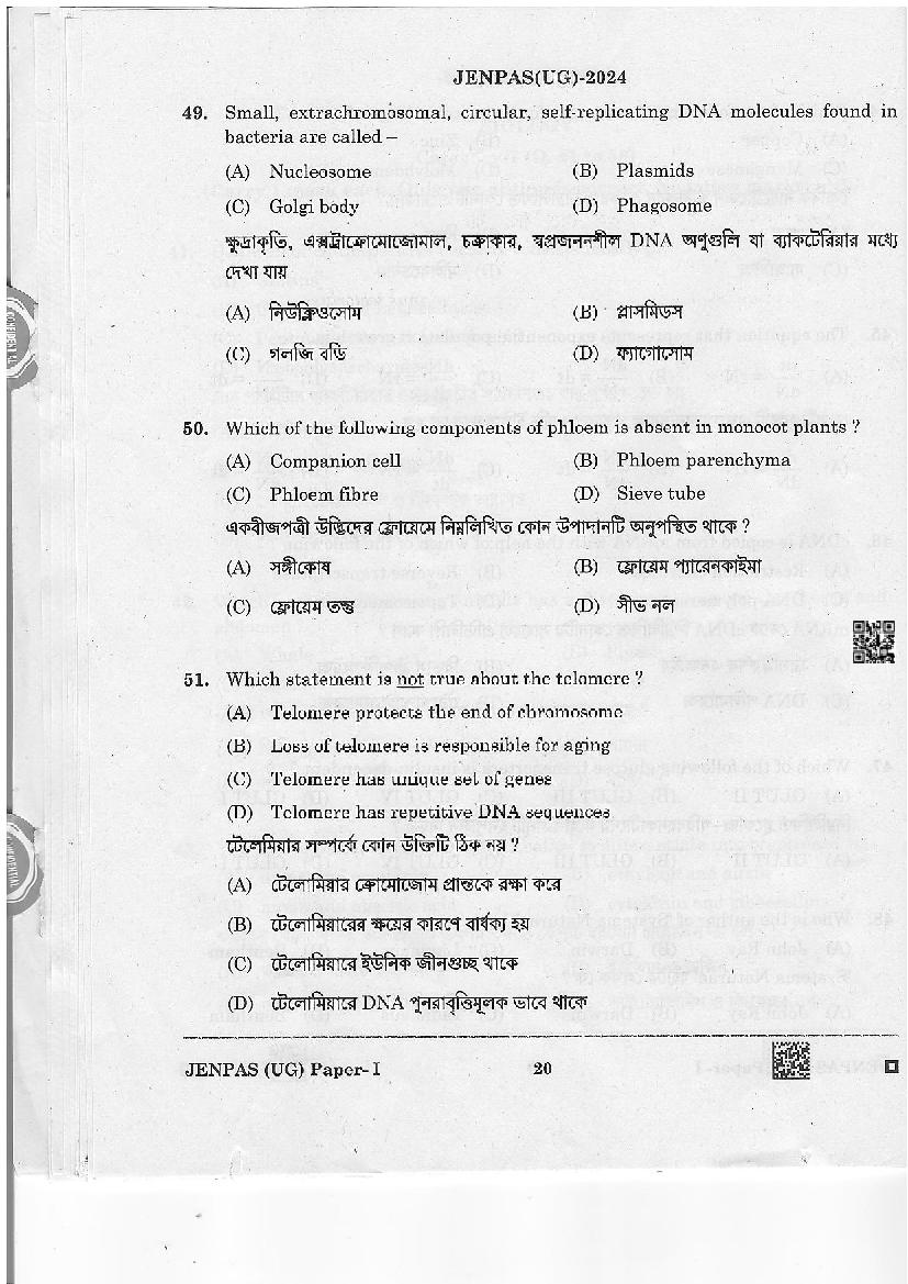 WBJEE JENPAS UG 2024 Question Paper (Paper 1) View Download