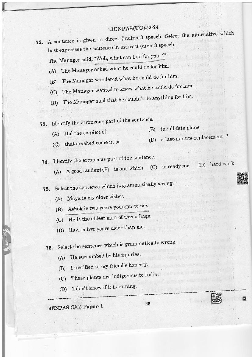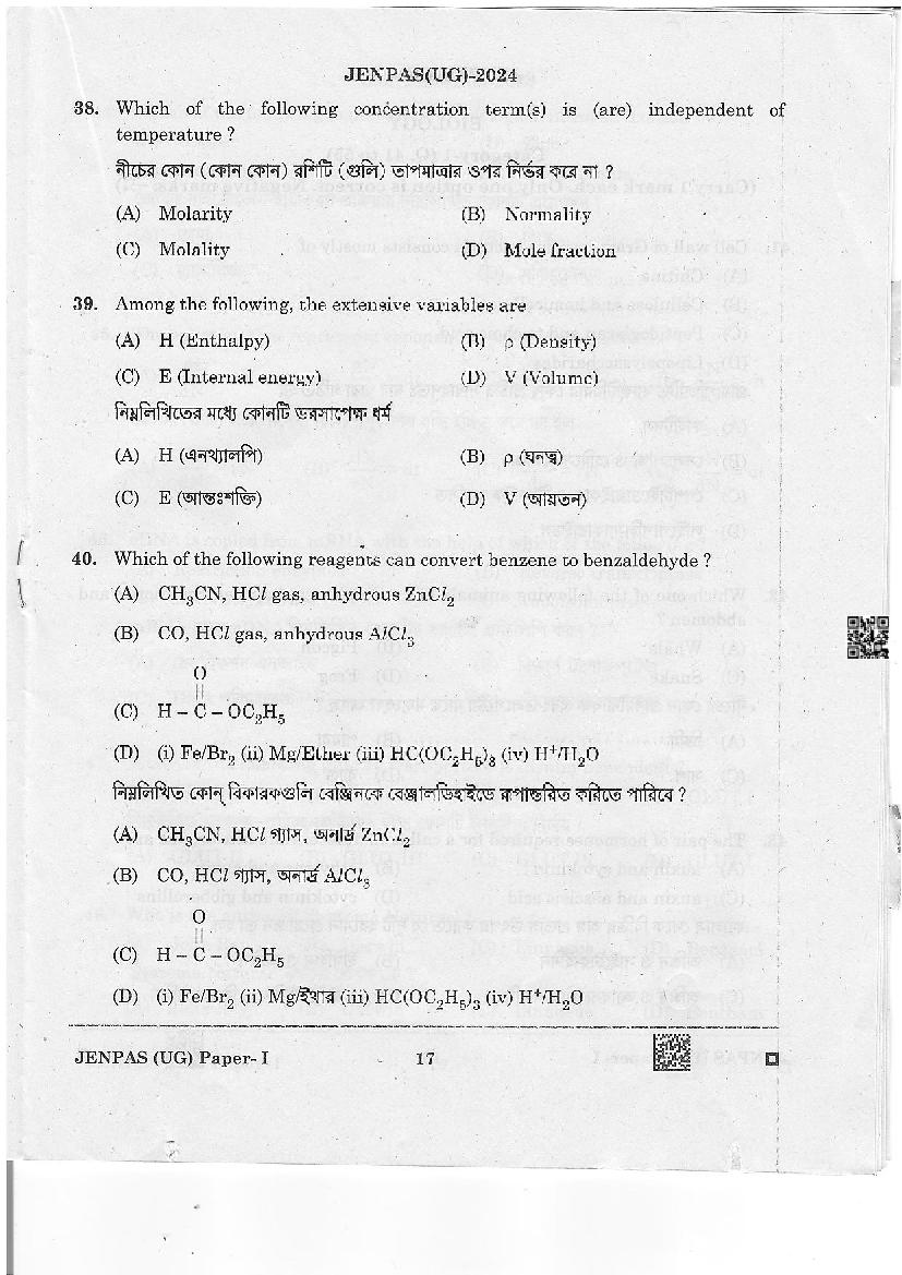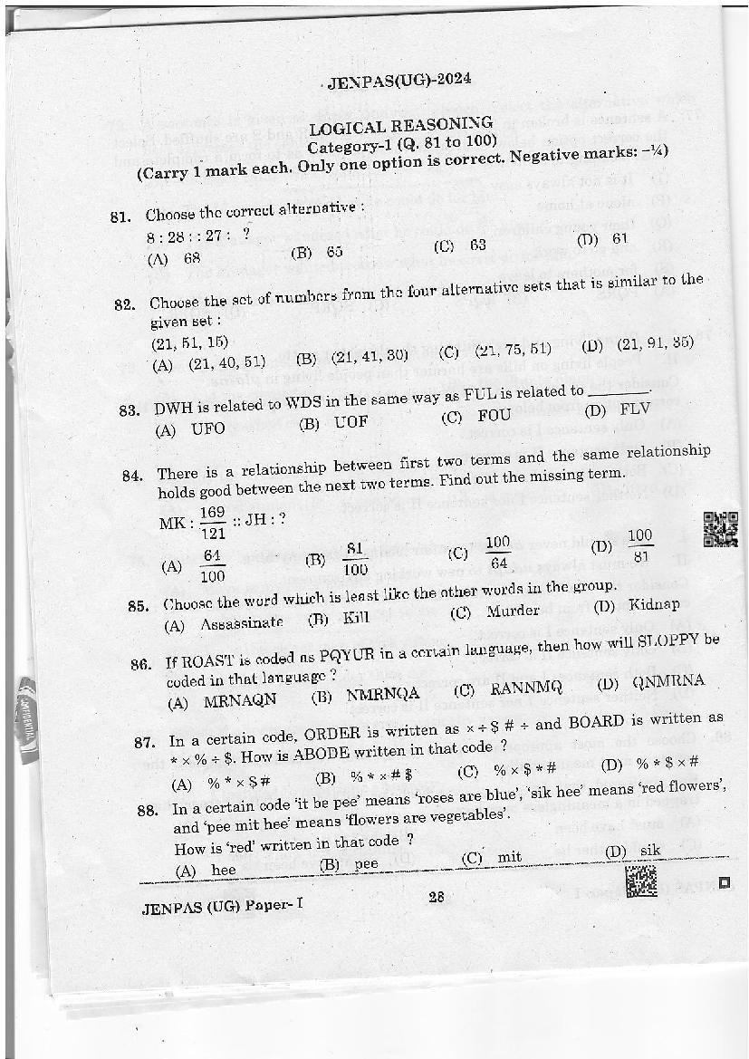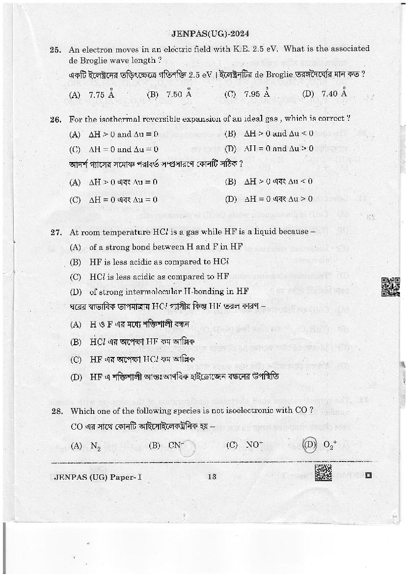 WBJEE JENPAS UG 2024 Question Paper (Paper 1) View Download