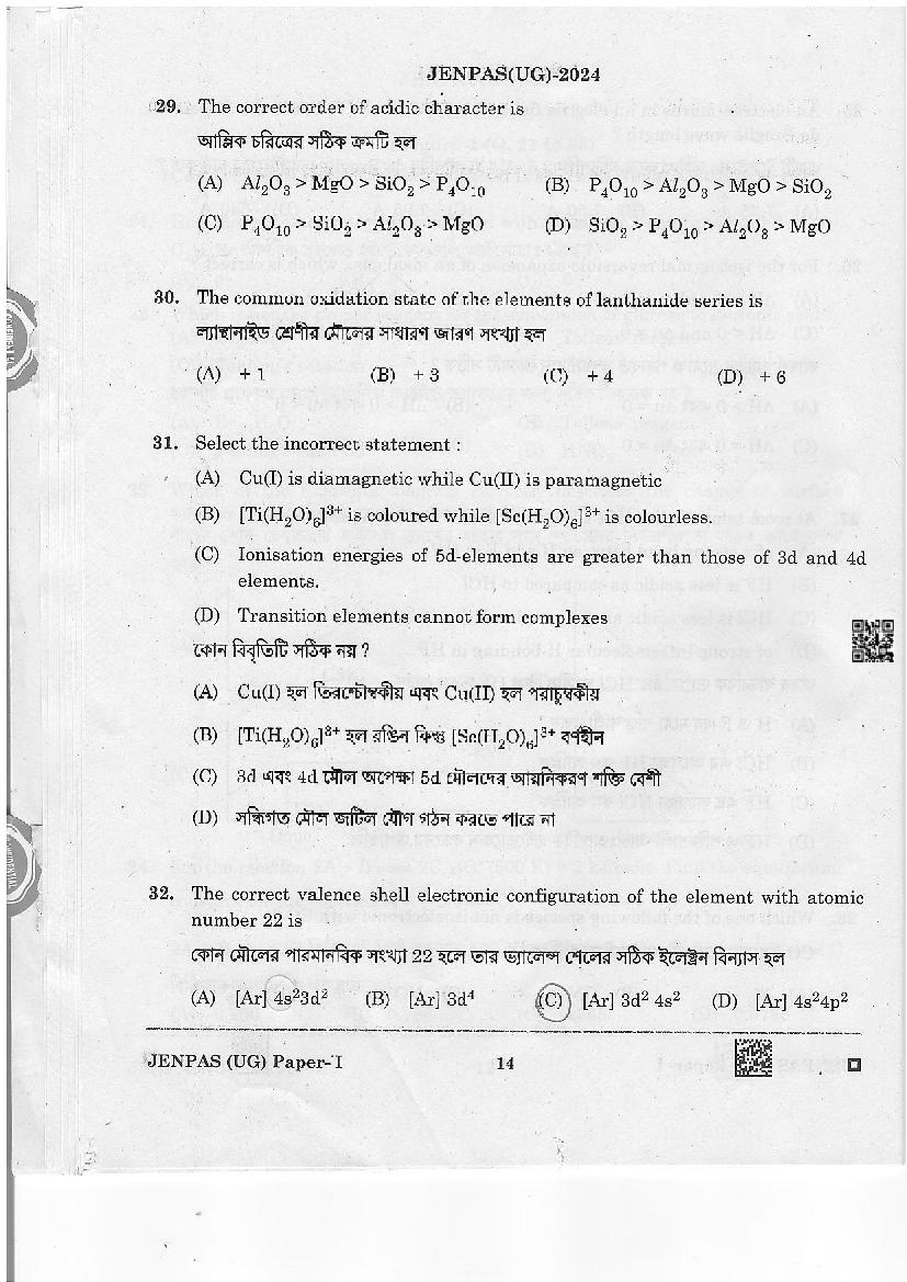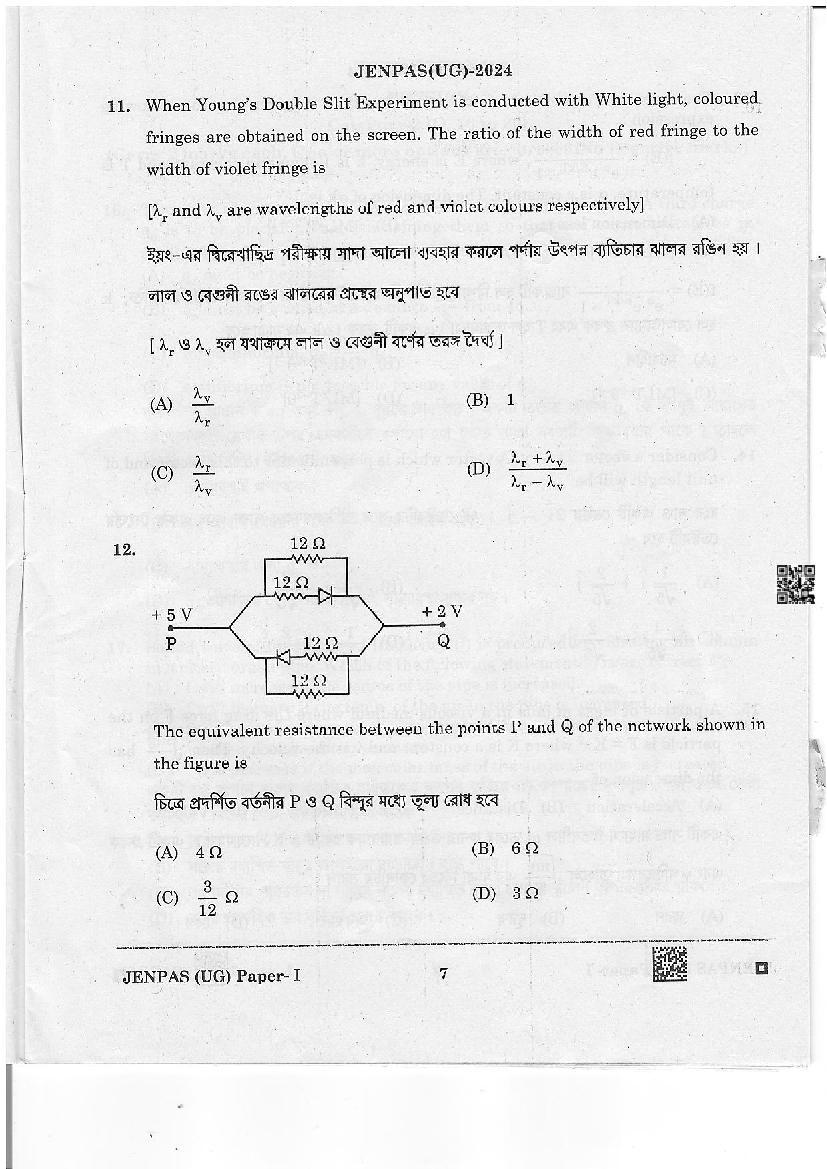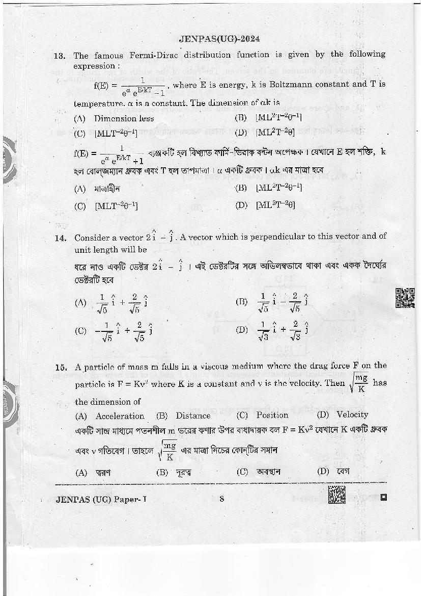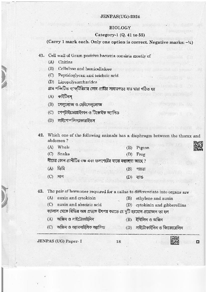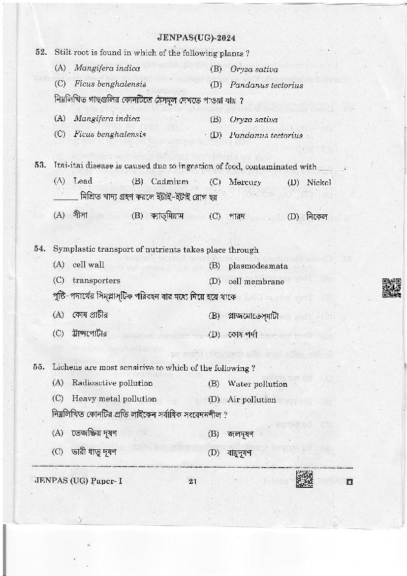 WBJEE JENPAS UG 2024 Question Paper PDF