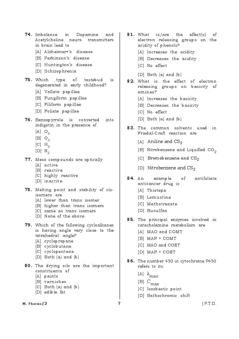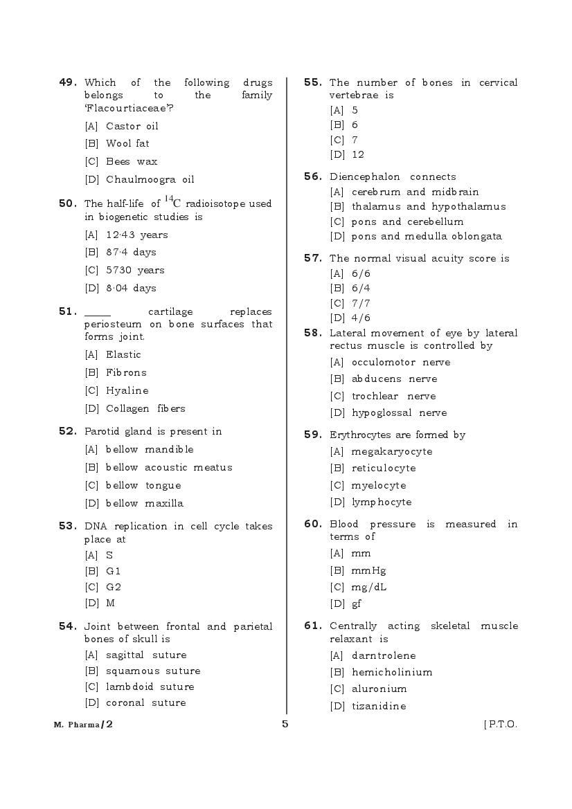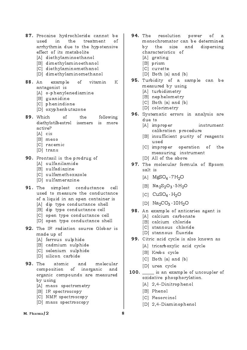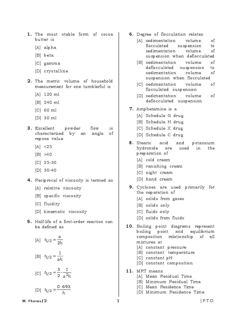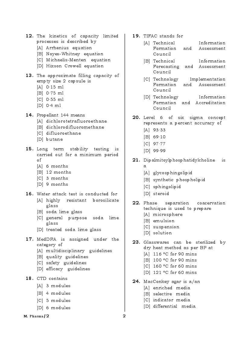 The question paper of PGCET for M.Pharm 2023 is as follows. Post Graduate Common Entrance Test for M.Pharm Pharm D (Karnataka M.Pharm Pharm D) is the State level Pharmacy entrance exam for admission to M.Pharm, Pharm D in M.Pharm, Pharm D Colleged in Karnataka.
