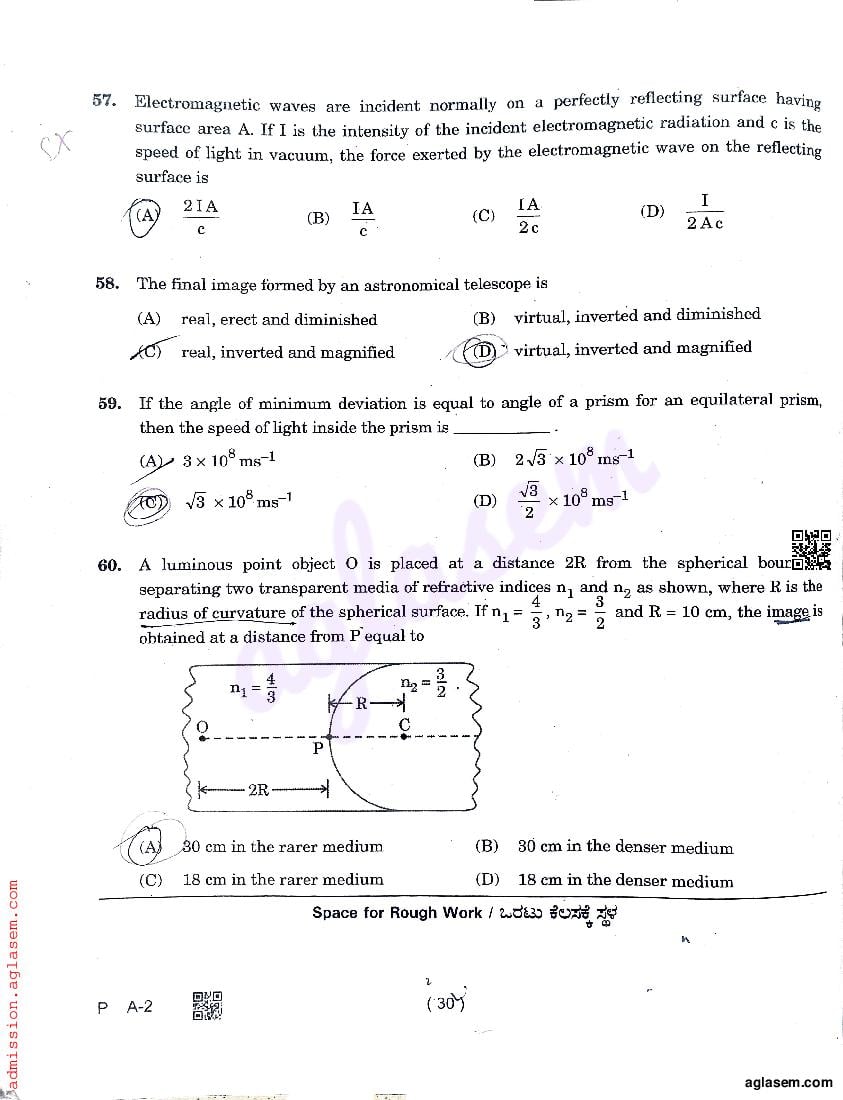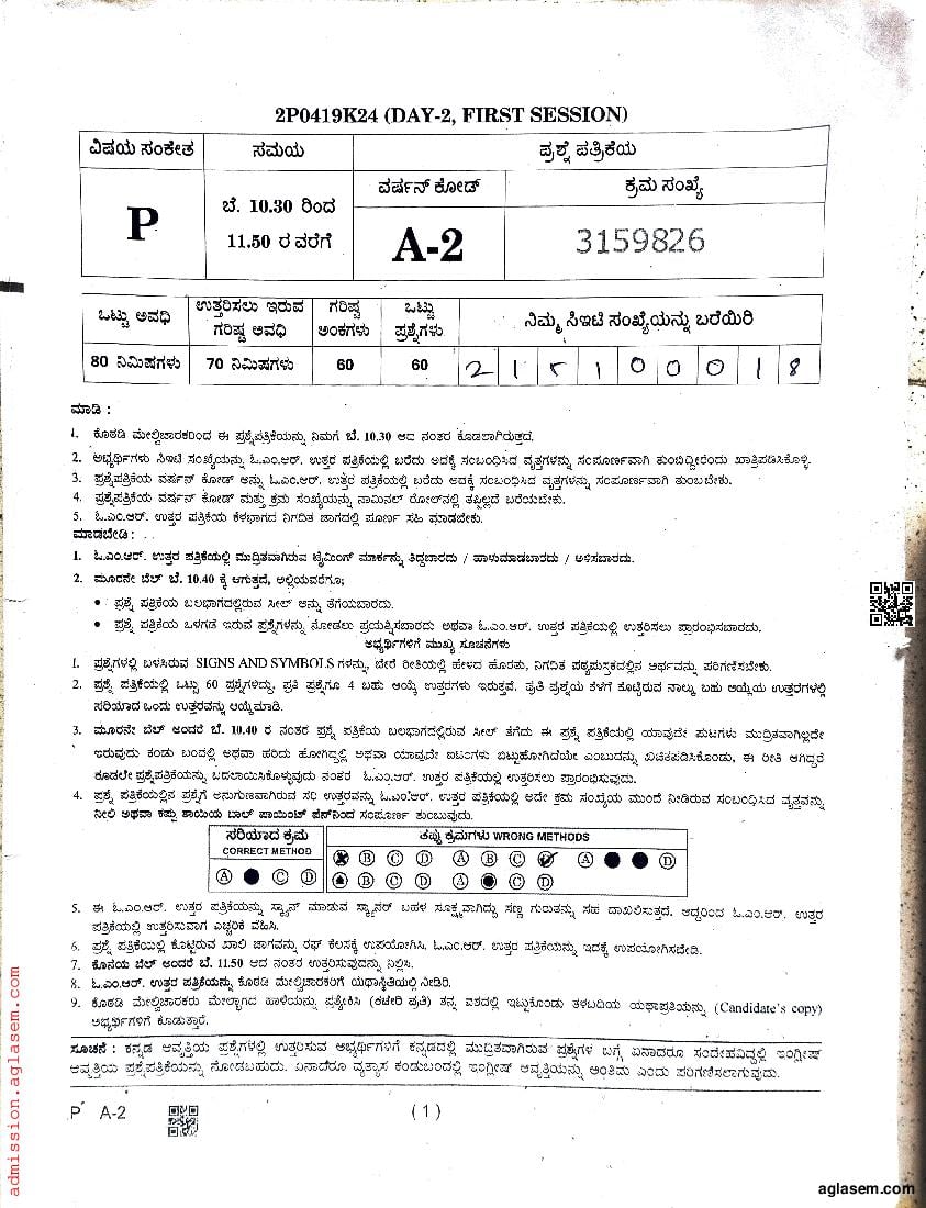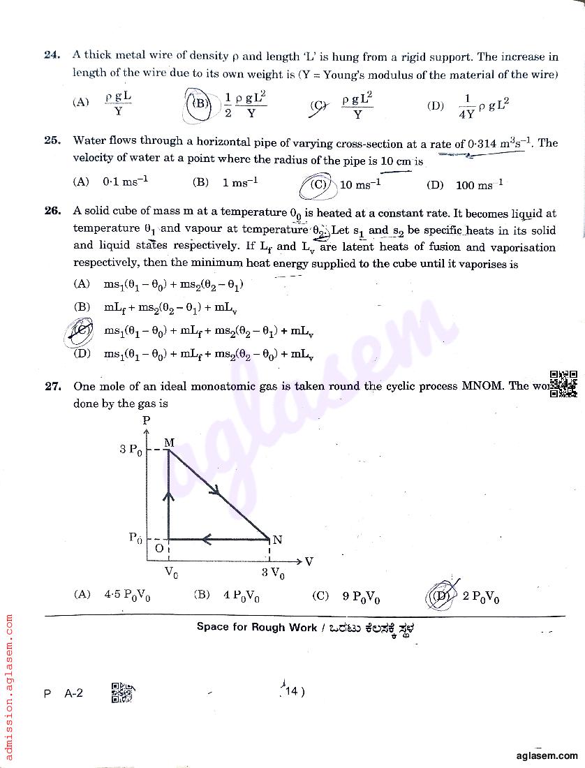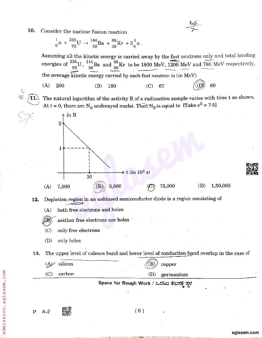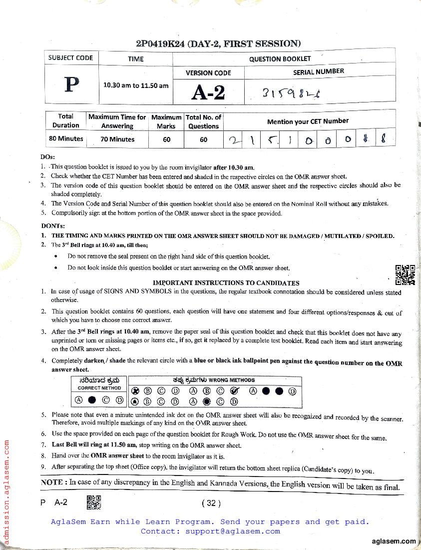 KCET 2024 question paper is published here. You can download the KCET Question Paper 2024 PDF from here on aglasem to know all the questions asked in exam. This KCET previous year question paper is of the Karnataka Common Entrance Test held in the year 2024. It contains exact questions asked in the test by Karnataka Examinations Authority (KEA). If you are appearing in upcoming KCET, then you can enhance your exam preparation by practicing this question paper.