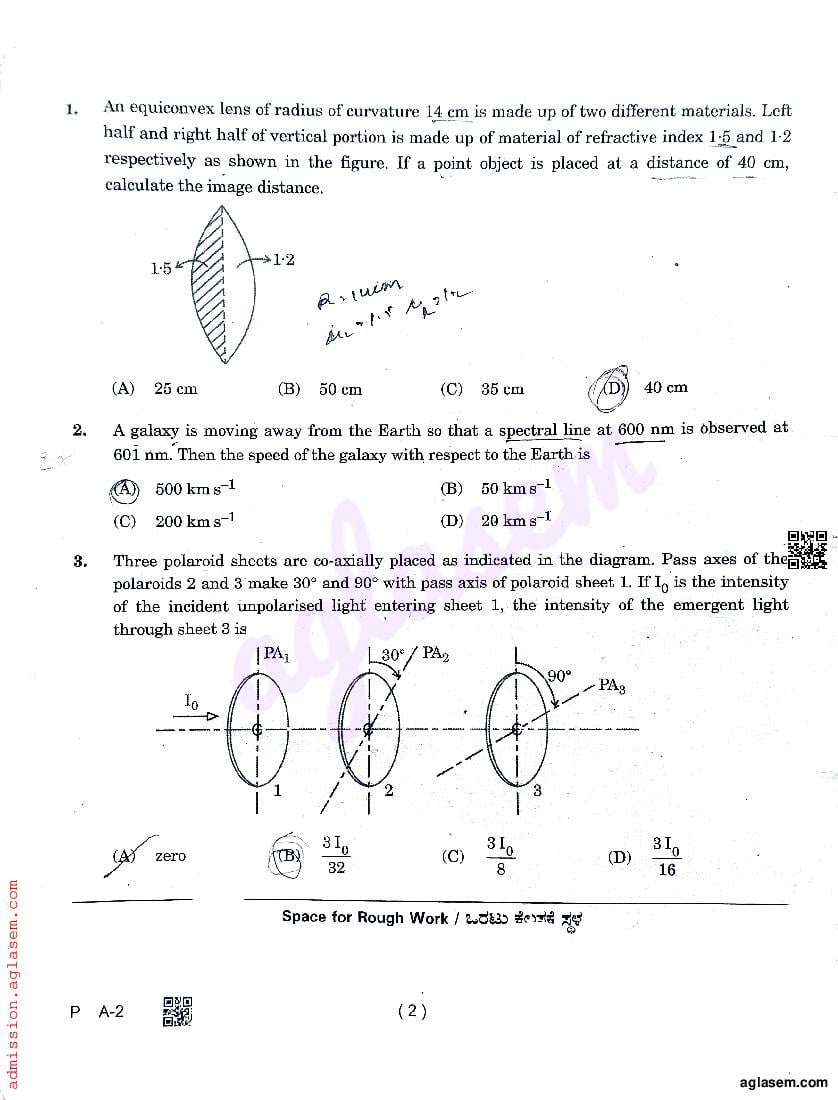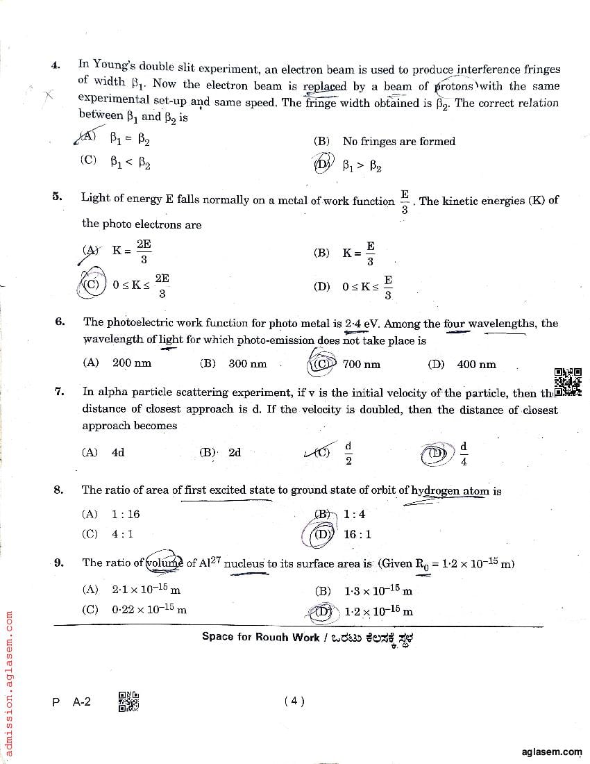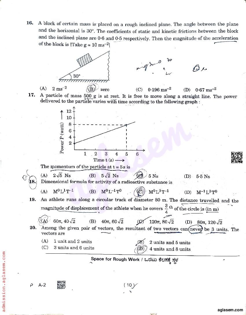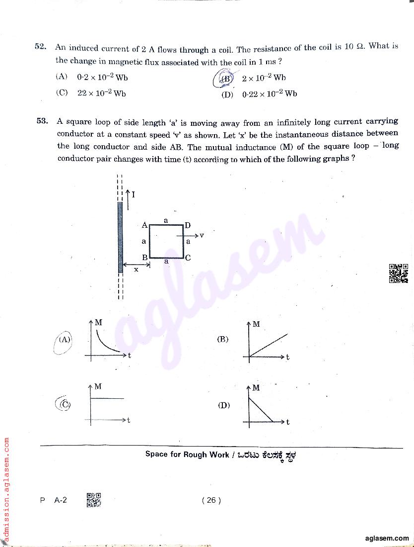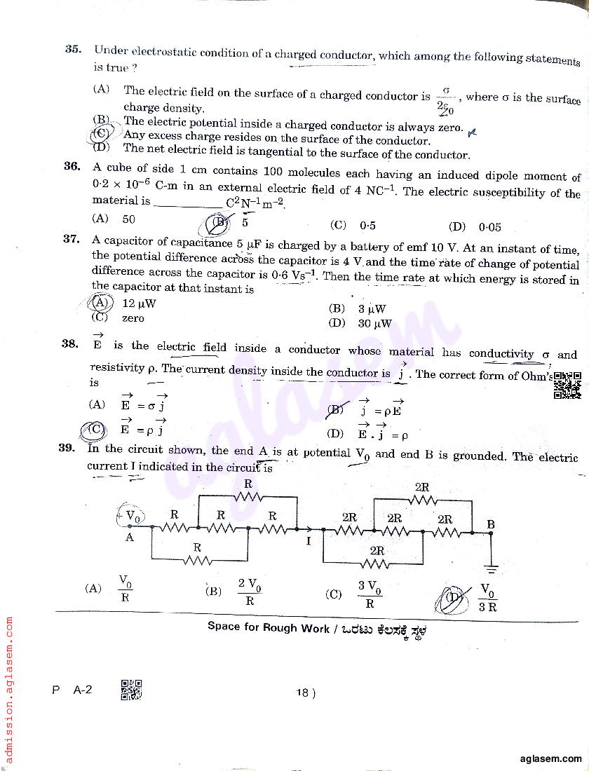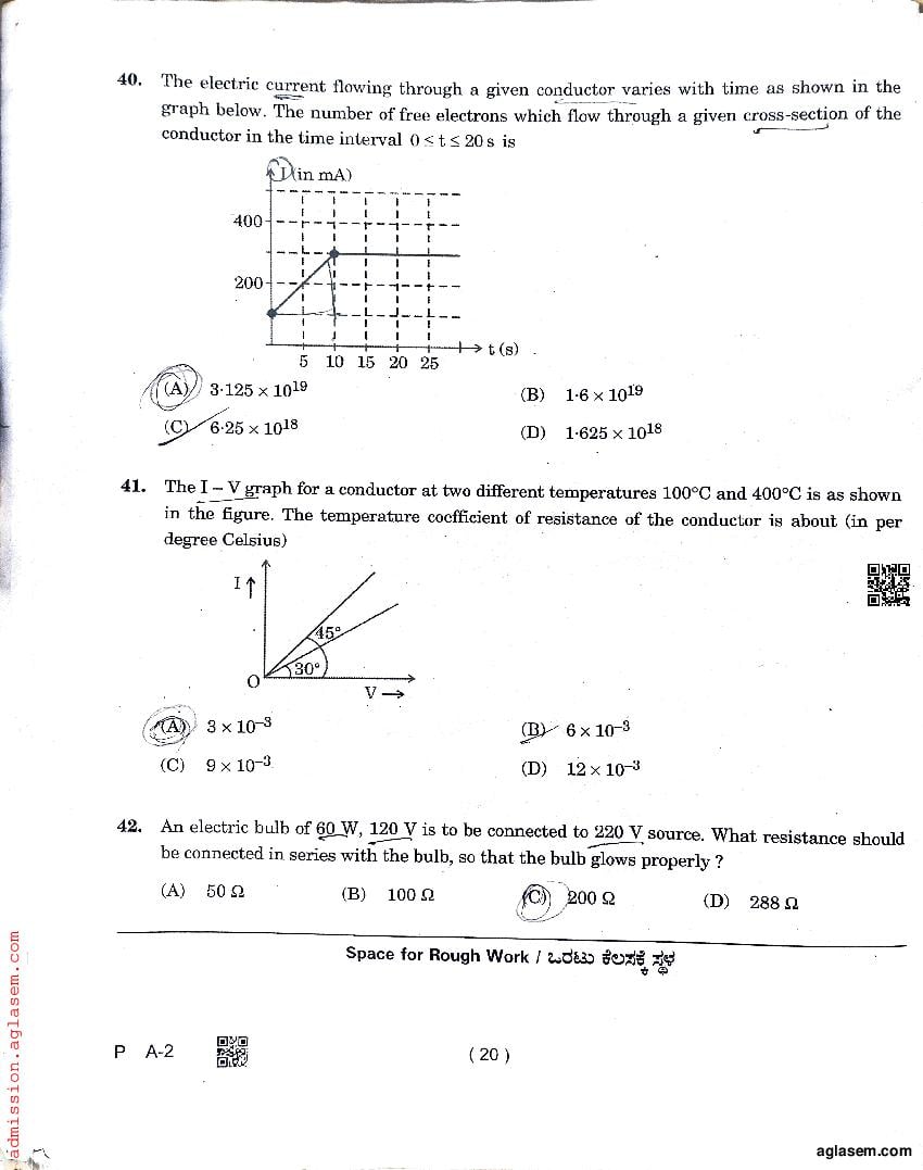KCET 2024 question paper is published here. You can download the KCET Question Paper 2024 PDF from here on aglasem to know all the questions asked in exam. This KCET previous year question paper is of the Karnataka Common Entrance Test held in the year 2024. It contains exact questions asked in the test by Karnataka Examinations Authority (KEA). If you are appearing in upcoming KCET, then you can enhance your exam preparation by practicing this question paper.