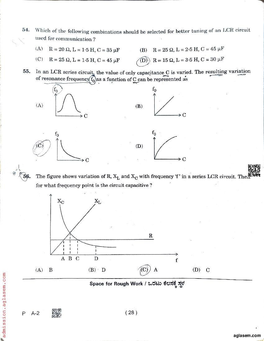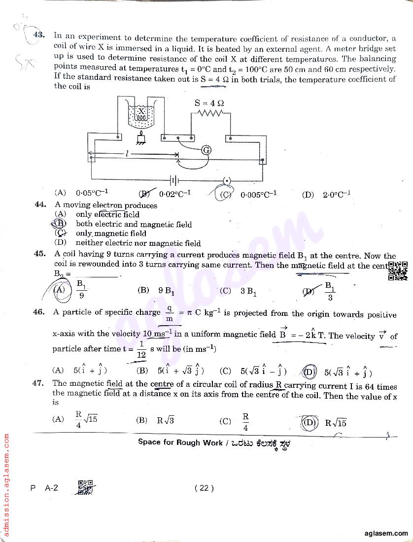 The question paper of KCET 2024 is as follows. Karnataka Common Entrance Test (KCET) is the State level Common entrance exam for admission to Engineering, Technology, Architecture, Bachelor of Yoga and Naturopathy (BNYS), Bachelor of Veterinary Science and Animal Husbandry (B.V.Sc. & A.H.), Farm Science courses i.e., [i.e., Bachelor of Veterinary Science and Animal Husbandry (B.V.Sc. & A.H.), B.Sc. (Hons) Agriculture, B.Sc. (Hons) Sericulture, B.Sc. (Hons) Horticulture, B.Sc (Hons) Forestry, B.Tech (Bio-Technology), B.Sc.(Hons) Community Science, B.Tech (Agricultural Engineering), B.Tech (Food Technology), B.Tech (D. Tech), B.F.Sc (Fisheries), B.Sc. (Hons) Agri. Business Management] B. Pharma, Pharma-D and 2nd year B-Pharma (Lateral Entry) course in Government, University, Private Aided, Private Un-Aided Professional Educational Institutions.