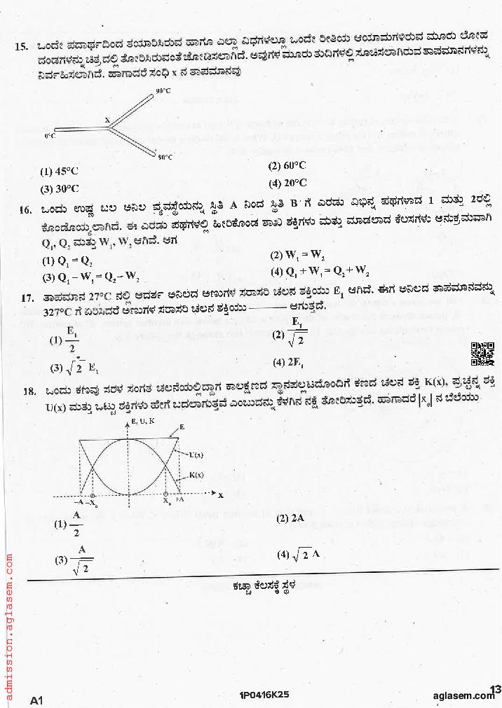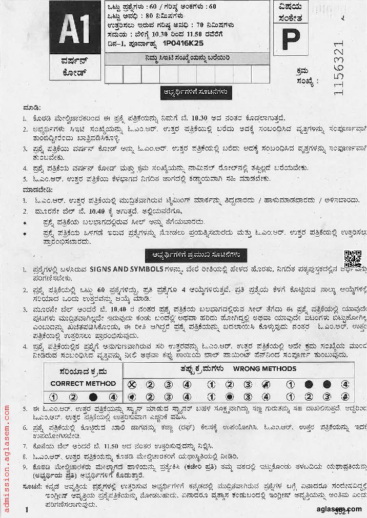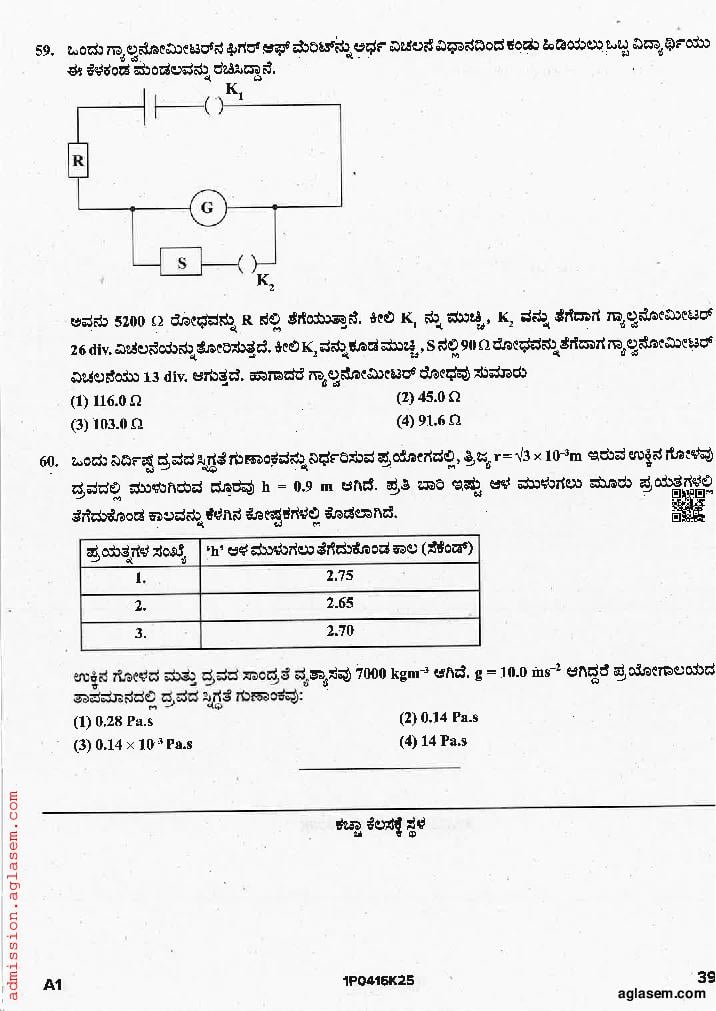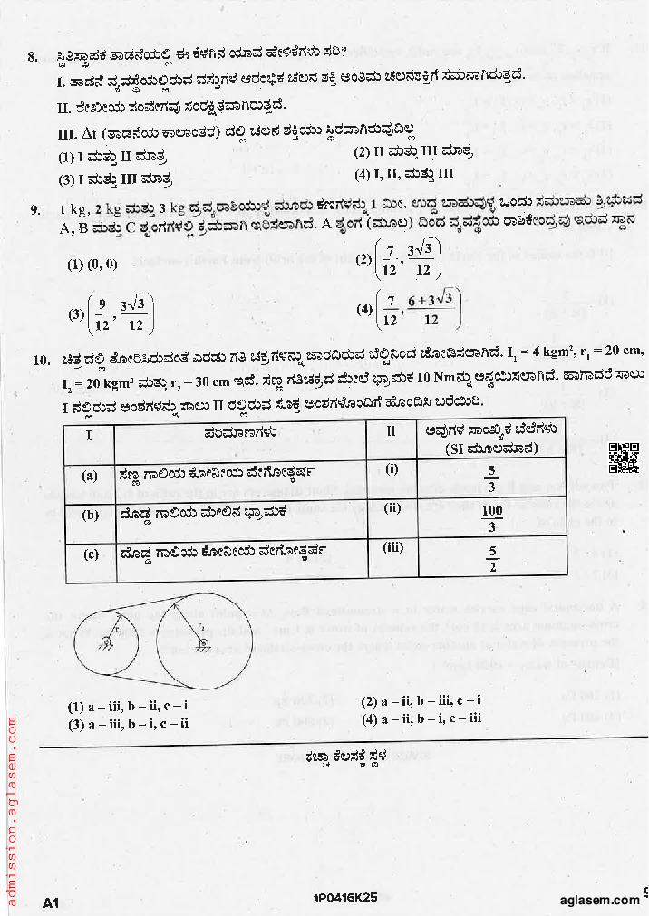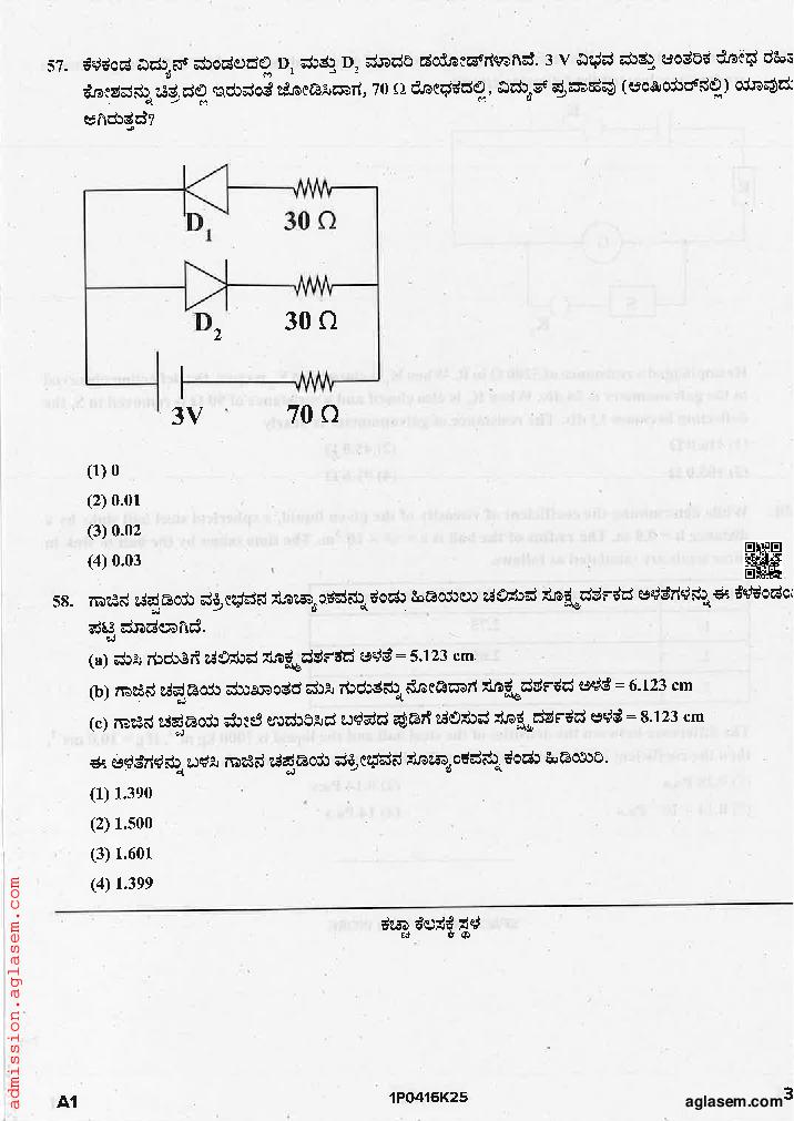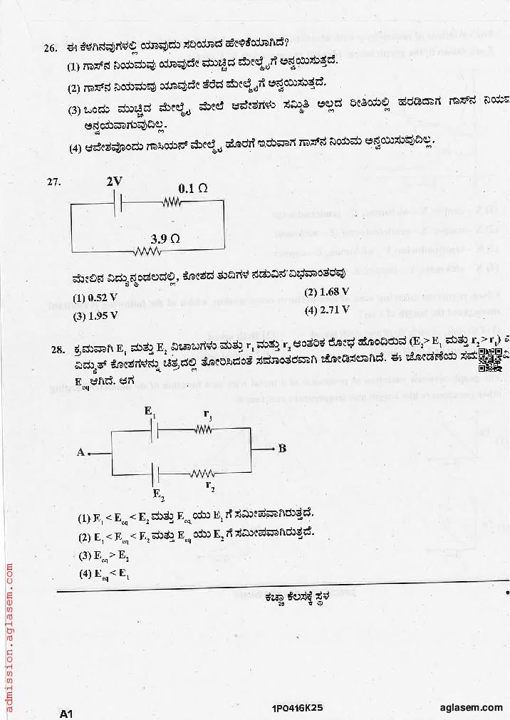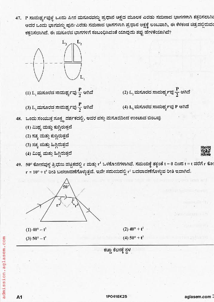KCET 2025 question paper is published here. You can download the KCET Question Paper 2025 PDF from here on aglasem to know all the questions asked in exam. This KCET previous year question paper is of the Karnataka Common Entrance Test held in the year 2025. It contains exact questions asked in the test by Karnataka Examinations Authority (KEA). If you are appearing in upcoming KCET, then you can enhance your exam preparation by practicing this question paper.