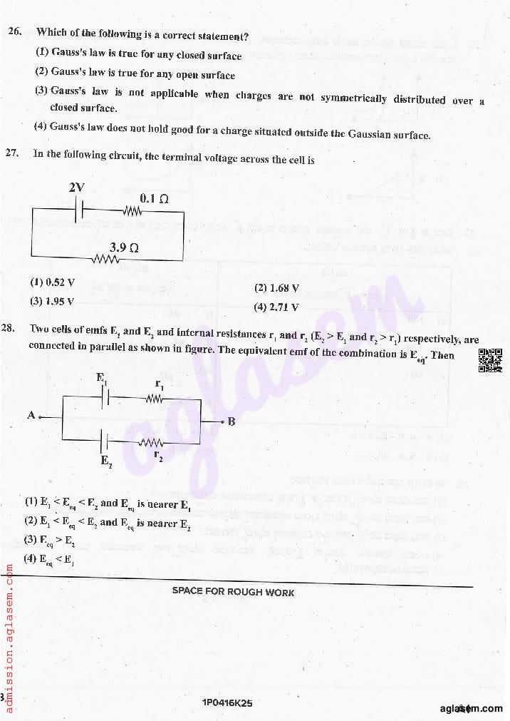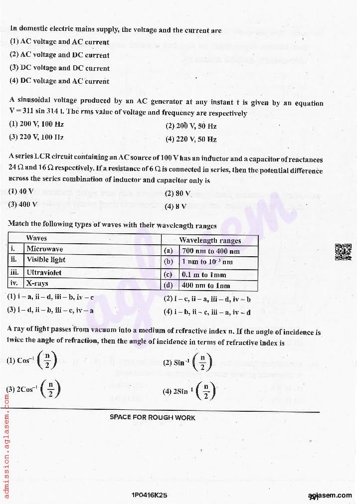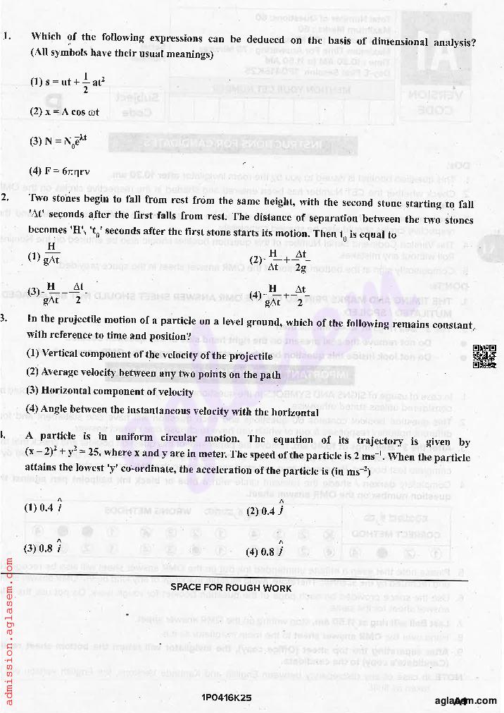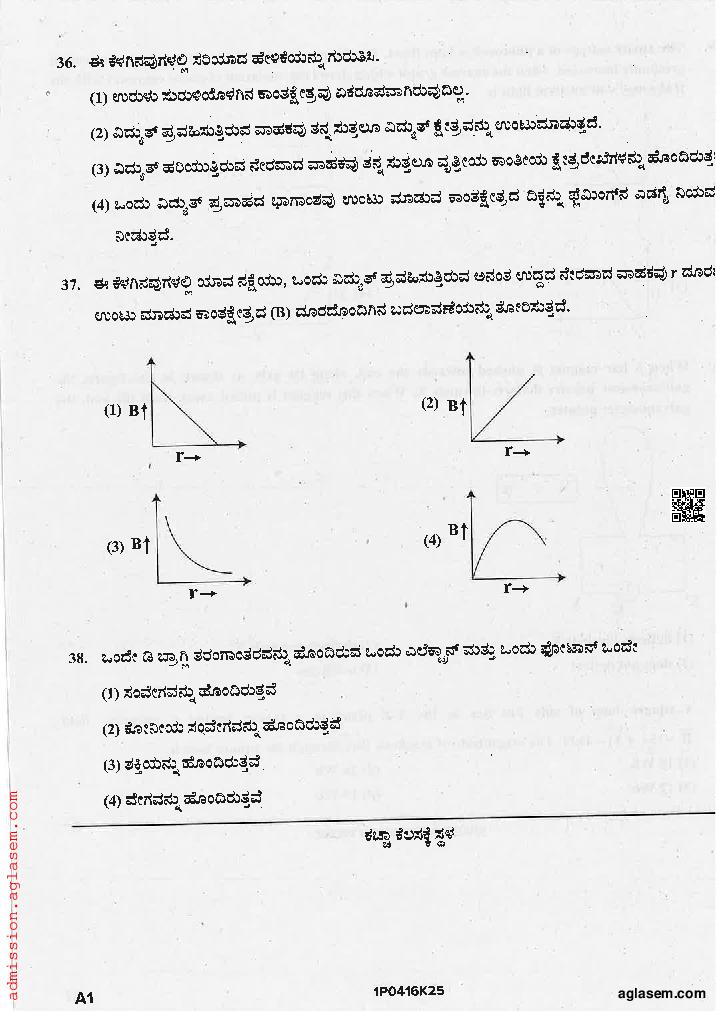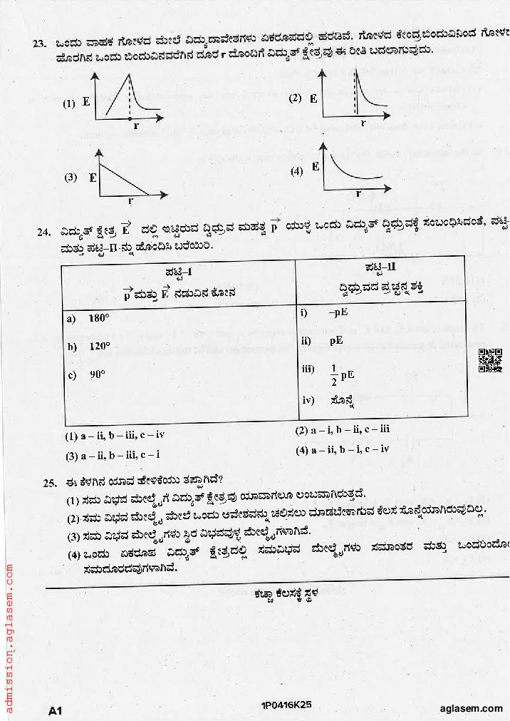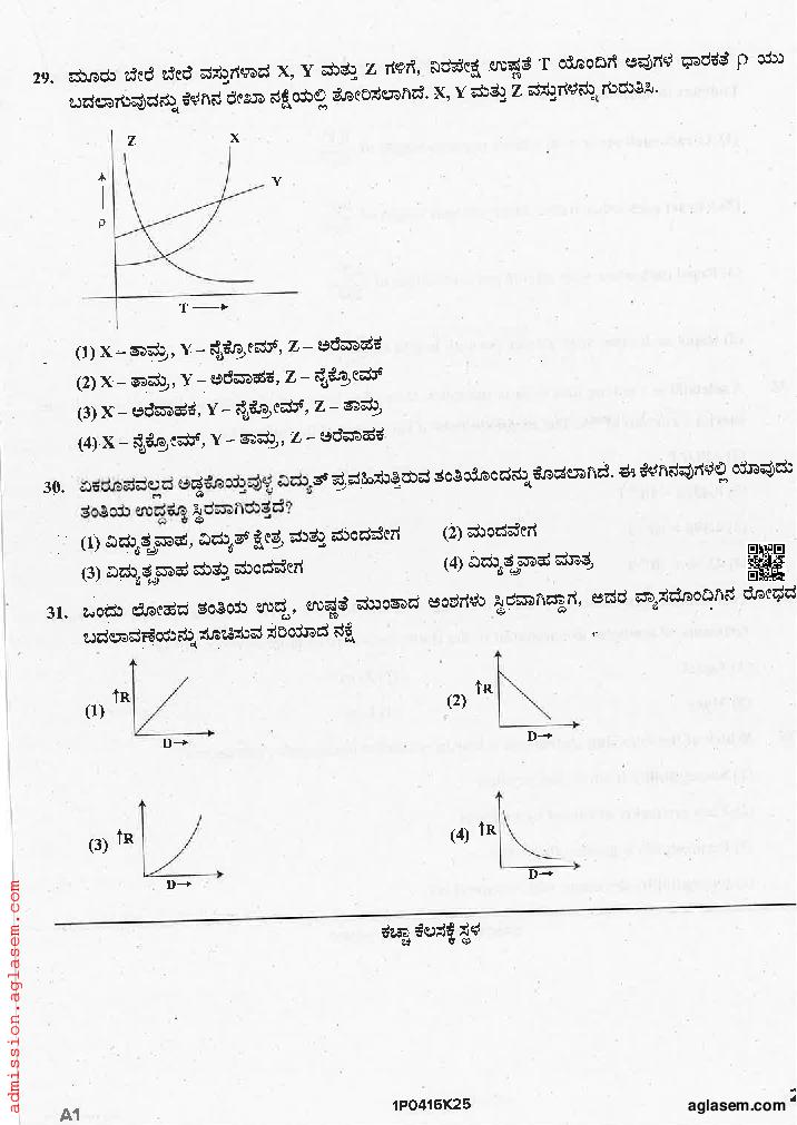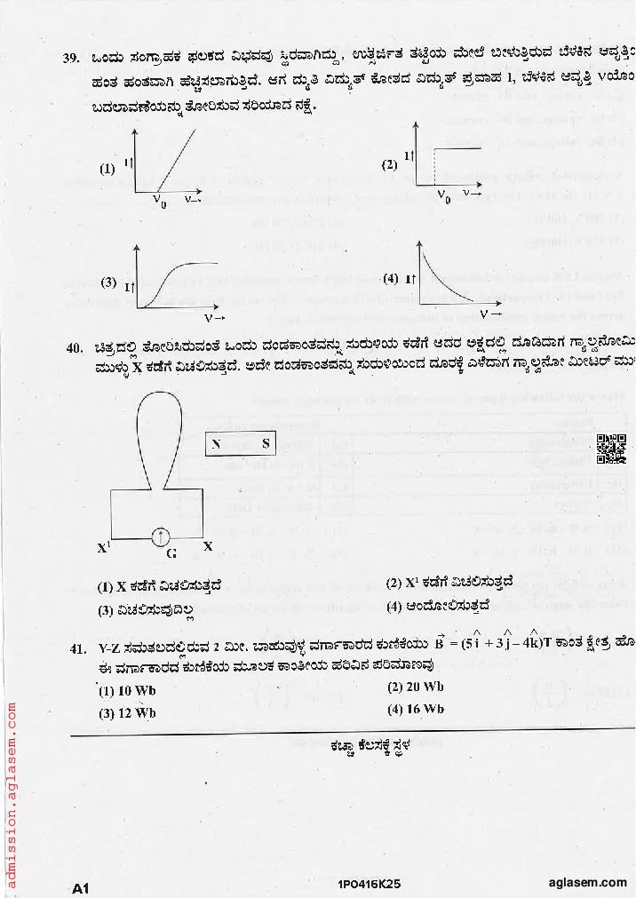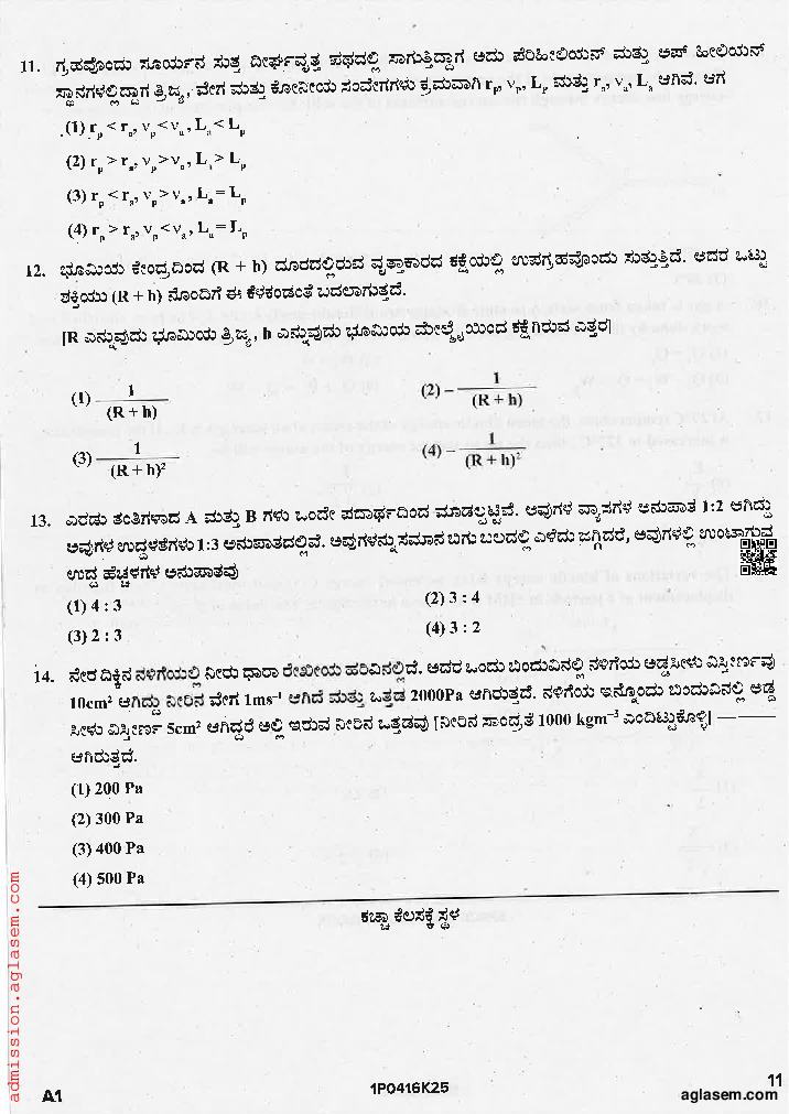The question paper of KCET 2025 is as follows. Karnataka Common Entrance Test (KCET) is the State level Common entrance exam for admission to Engineering, Technology, Architecture, Bachelor of Yoga and Naturopathy (BNYS), Bachelor of Veterinary Science and Animal Husbandry (B.V.Sc. & A.H.), Farm Science courses i.e., [i.e., Bachelor of Veterinary Science and Animal Husbandry (B.V.Sc. & A.H.), B.Sc. (Hons) Agriculture, B.Sc. (Hons) Sericulture, B.Sc. (Hons) Horticulture, B.Sc (Hons) Forestry, B.Tech (Bio-Technology), B.Sc.(Hons) Community Science, B.Tech (Agricultural Engineering), B.Tech (Food Technology), B.Tech (D. Tech), B.F.Sc (Fisheries), B.Sc. (Hons) Agri. Business Management] B. Pharma, Pharma-D and 2nd year B-Pharma (Lateral Entry) course in Government, University, Private Aided, Private Un-Aided Professional Educational Institutions.