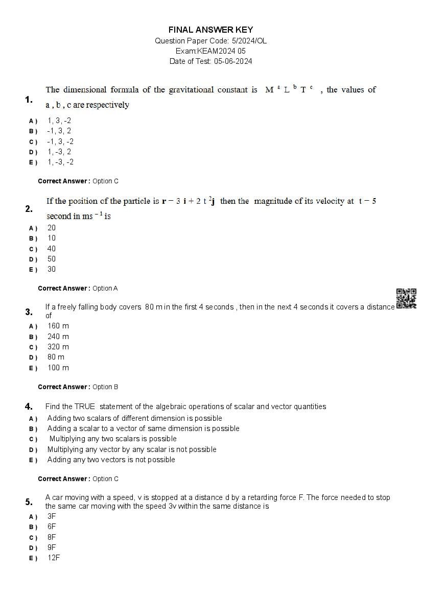 - KEAM 2024 Question Paper Engineering with Answers