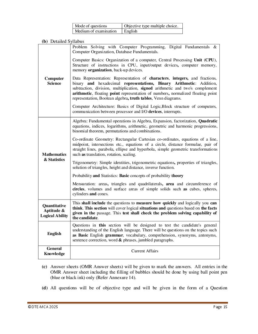 | Exam Type | MCA Entrance Exam |