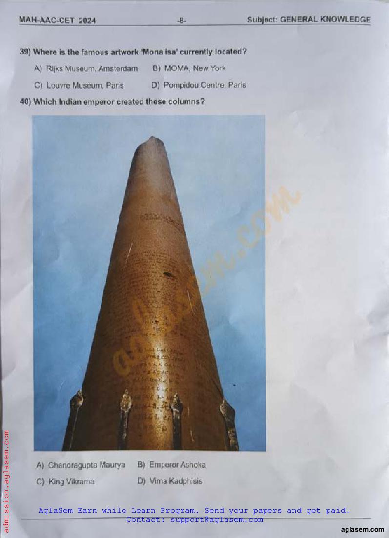 - Search MAH AAC CET 2024 Question Paper aglasem.