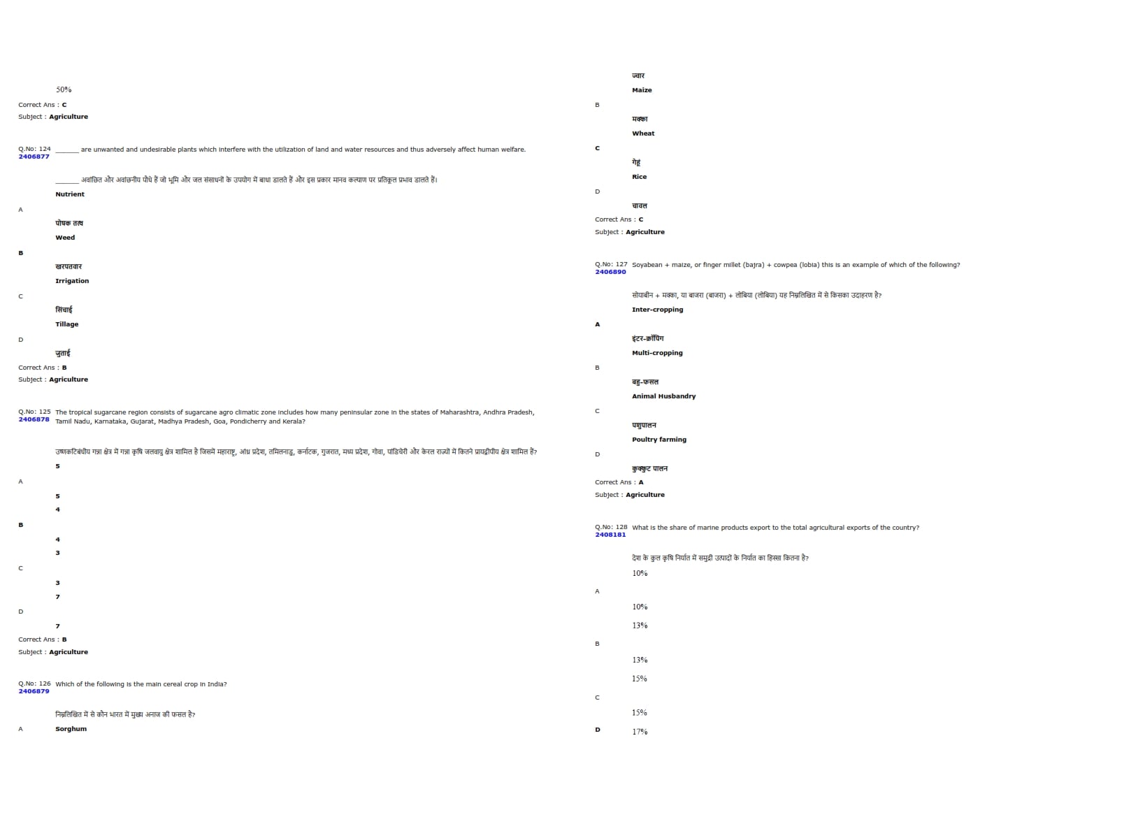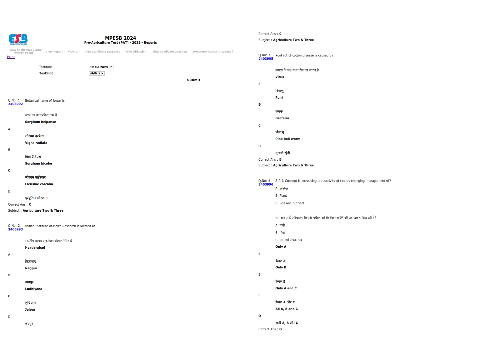 The key highlights of this Madhya Pradesh Pre Agriculture Test (MP PAT) 2023 question papers are as follows.