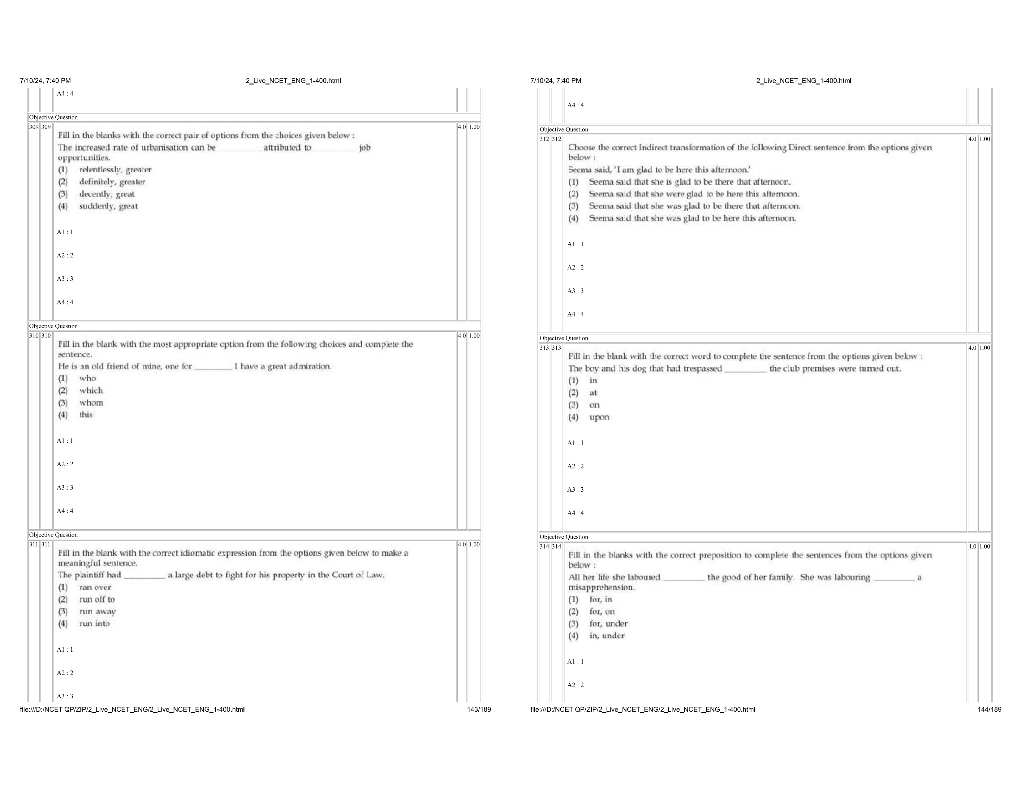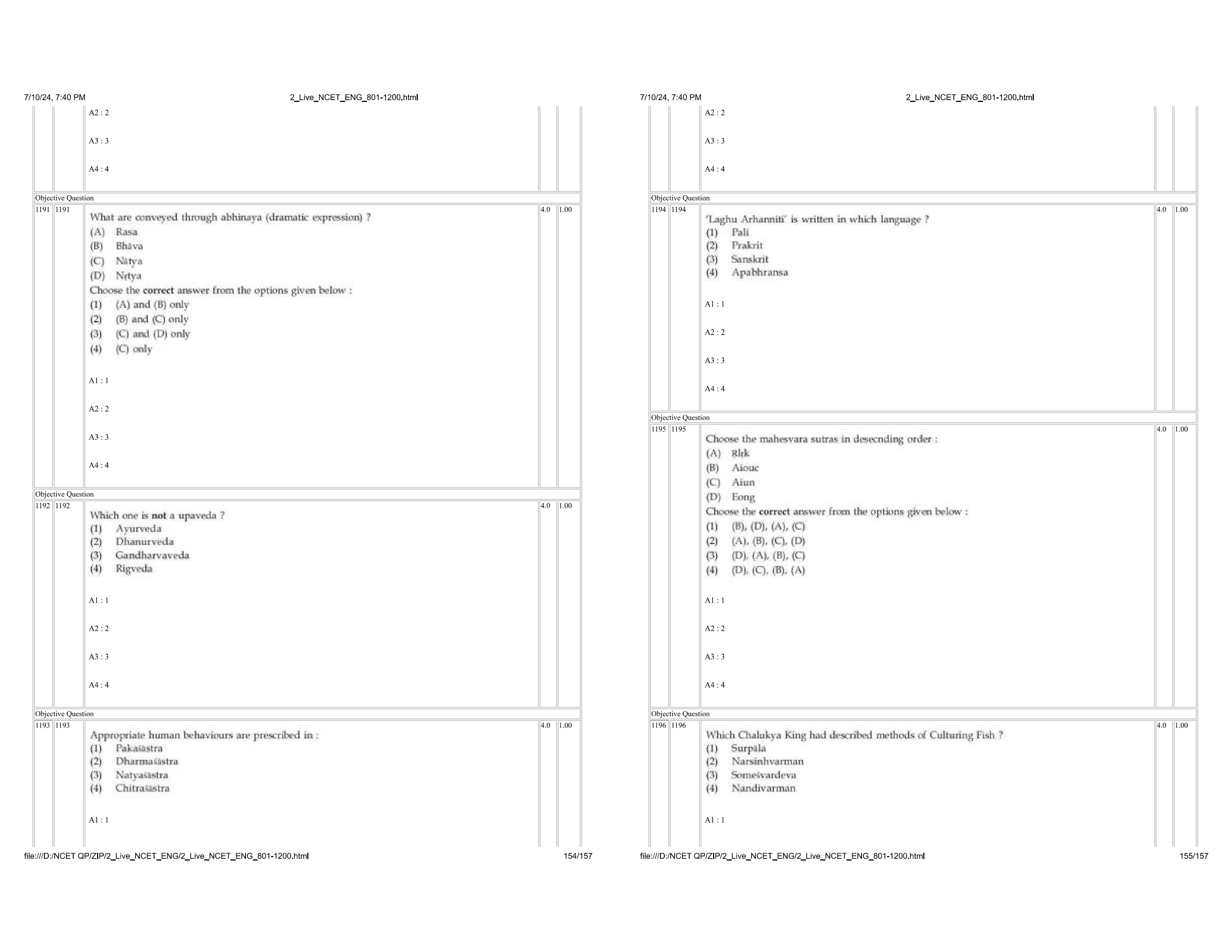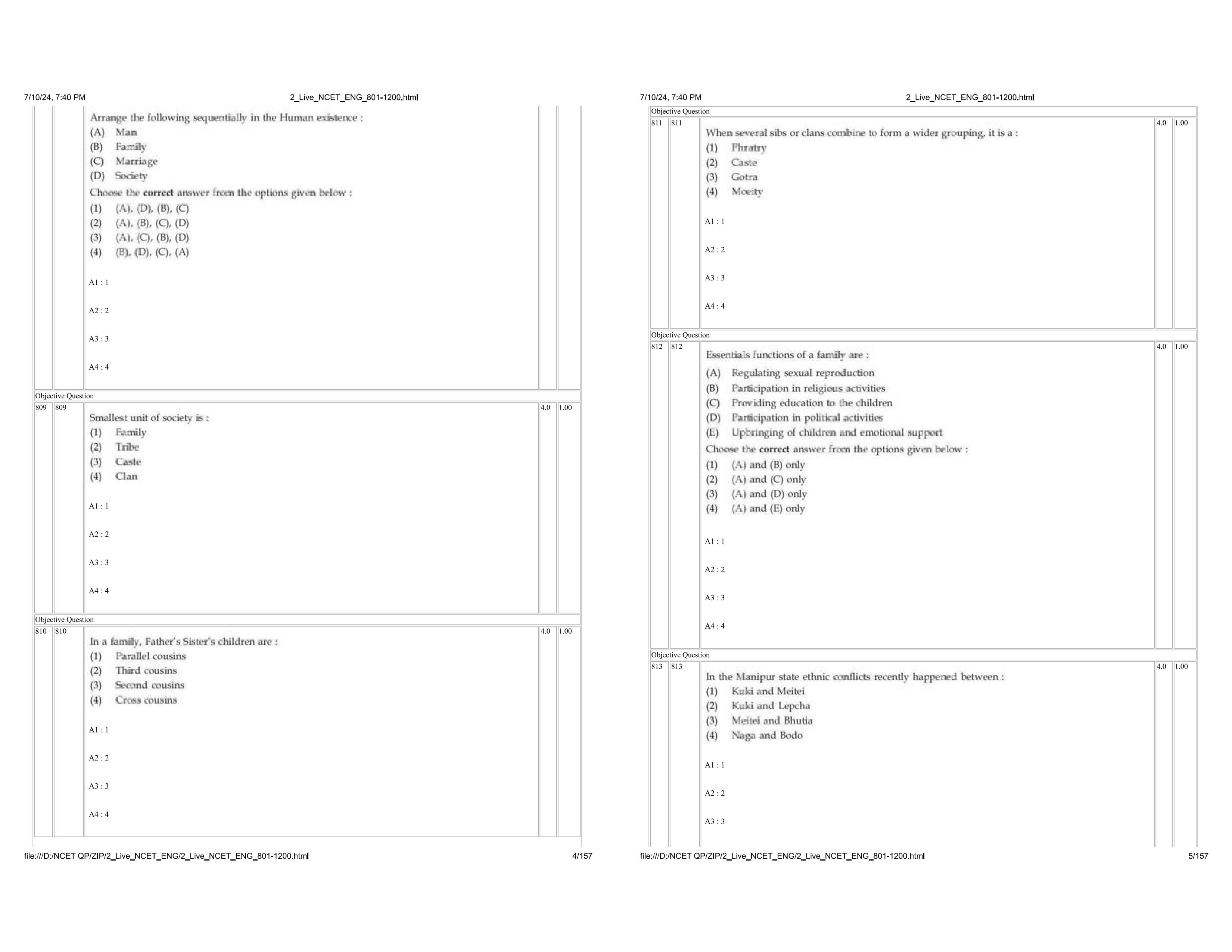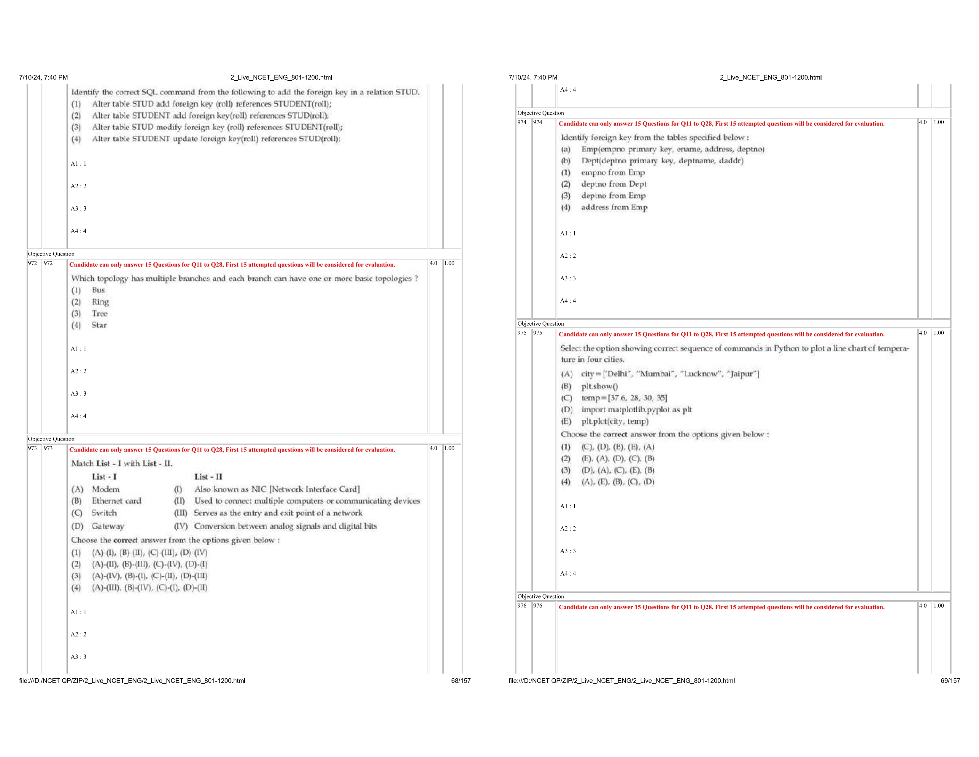 The question paper of NCET 2024 is as follows. National Common Entrance Test (NCET) is the National level Education entrance exam for admission to 4-Year Integrated Teacher Education Programme (ITEP) in Central, State Universities, Institutions including IITs, NITs, RIEs, and Government Colleges.