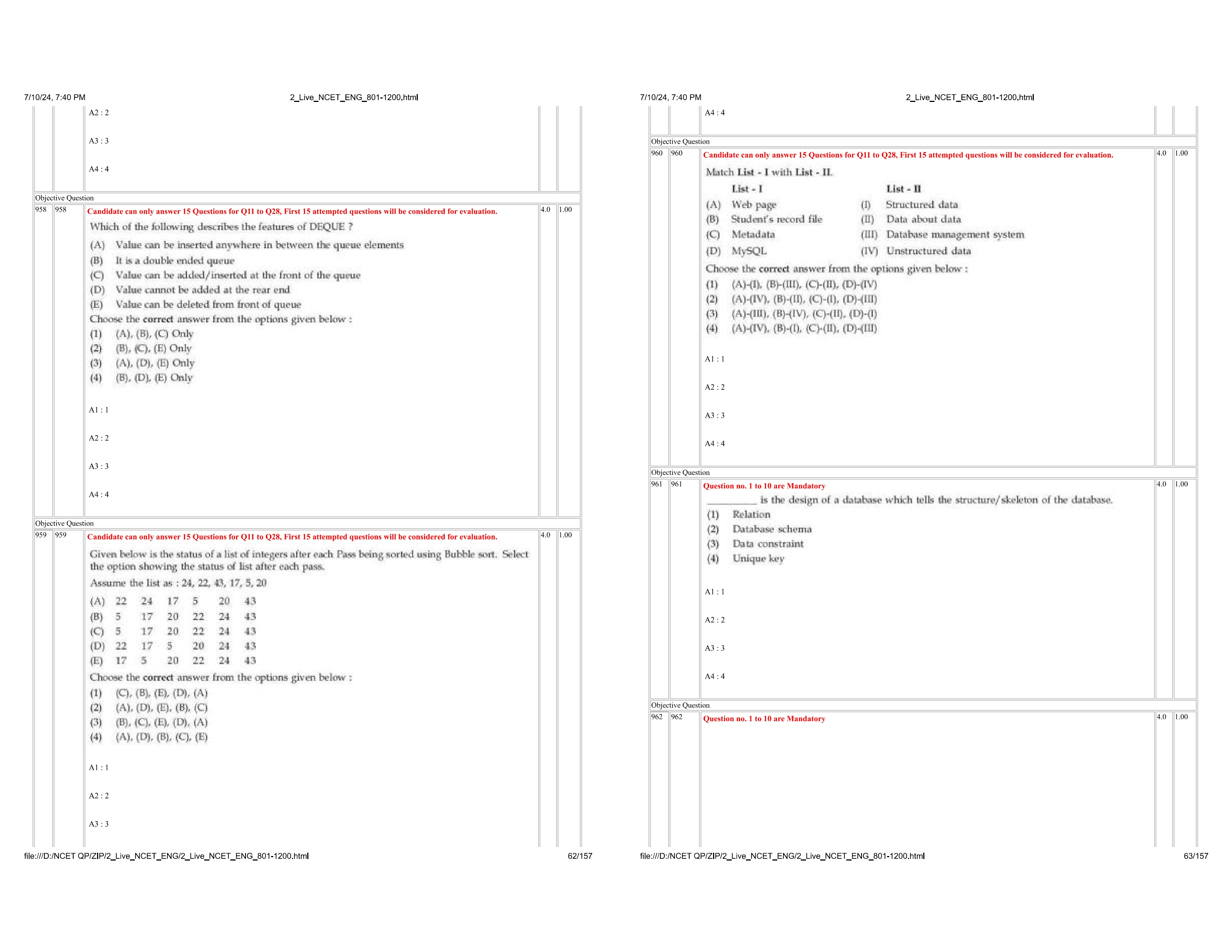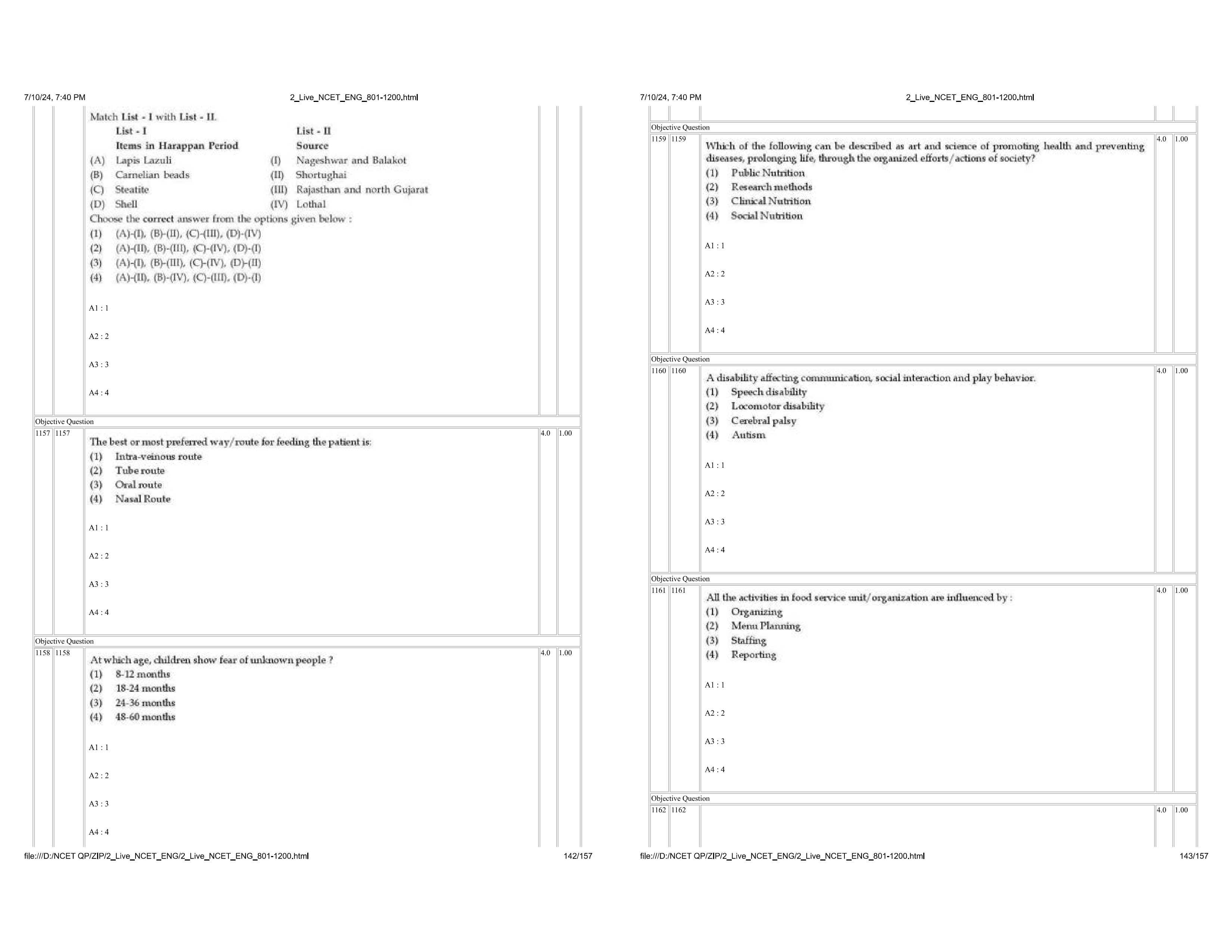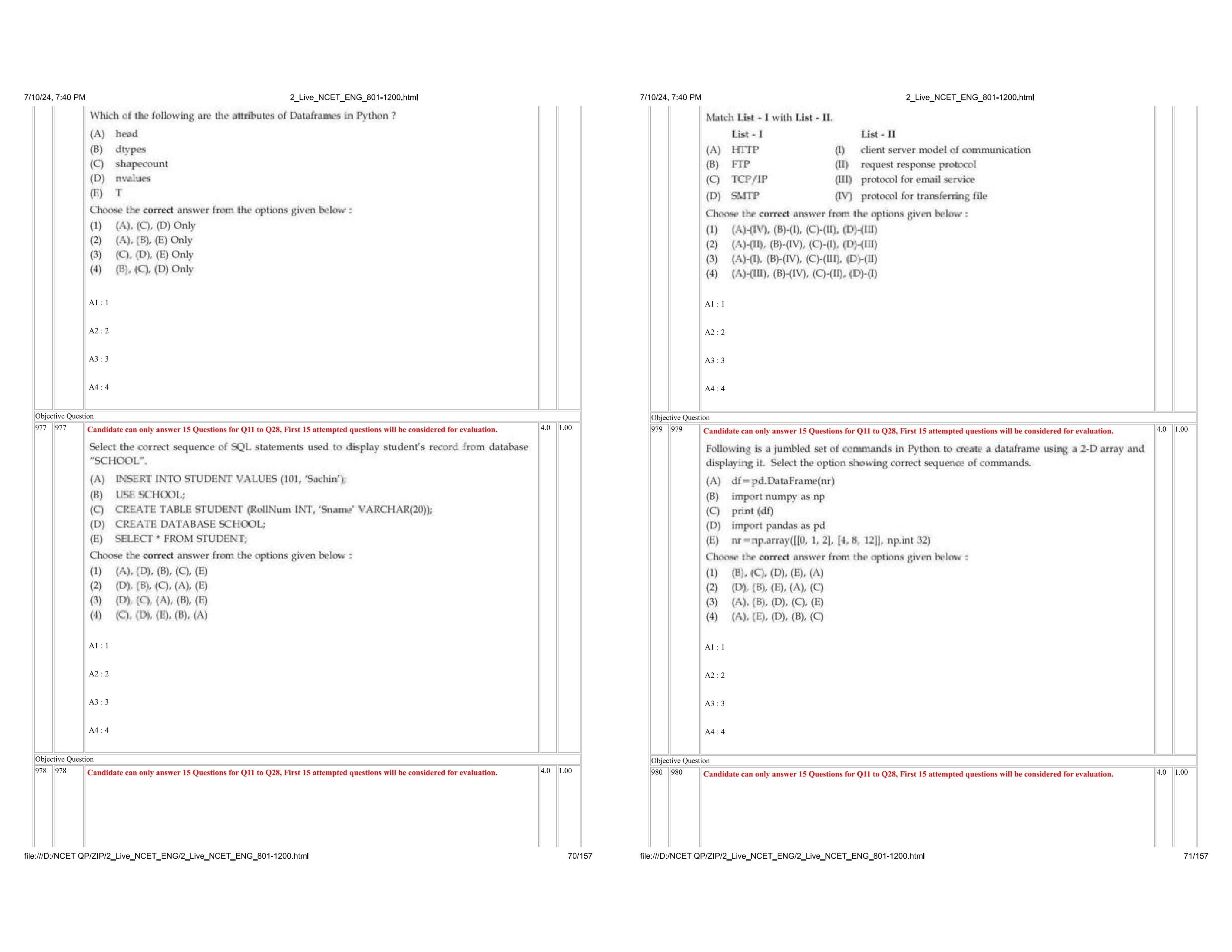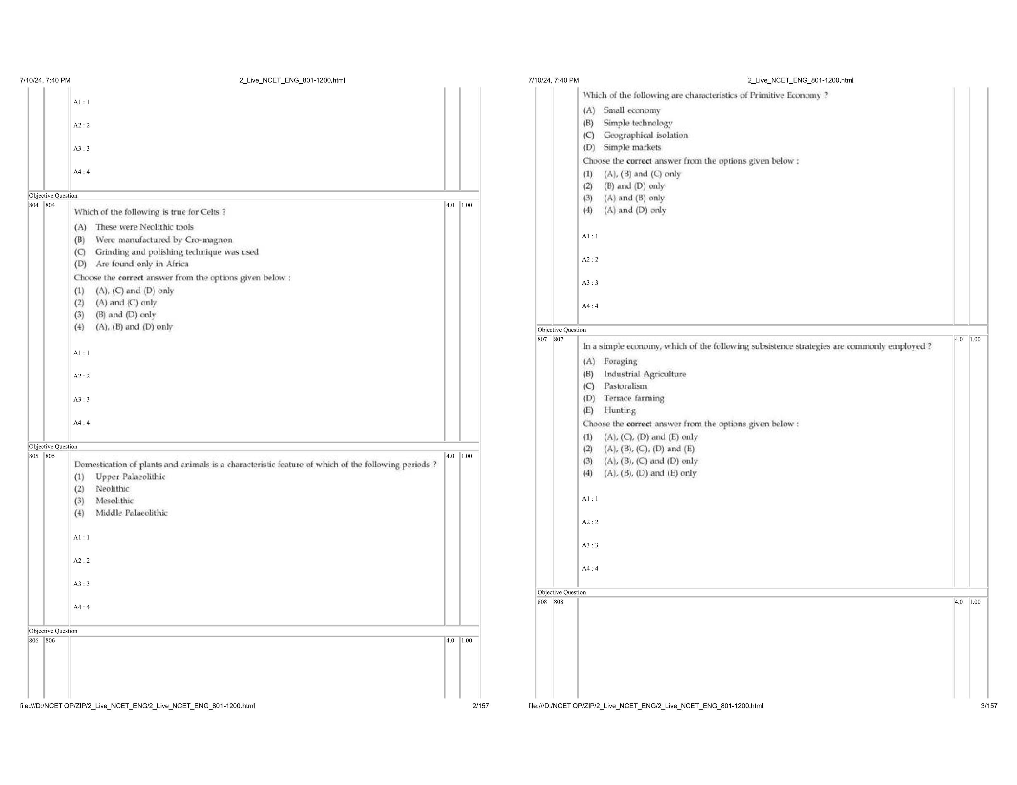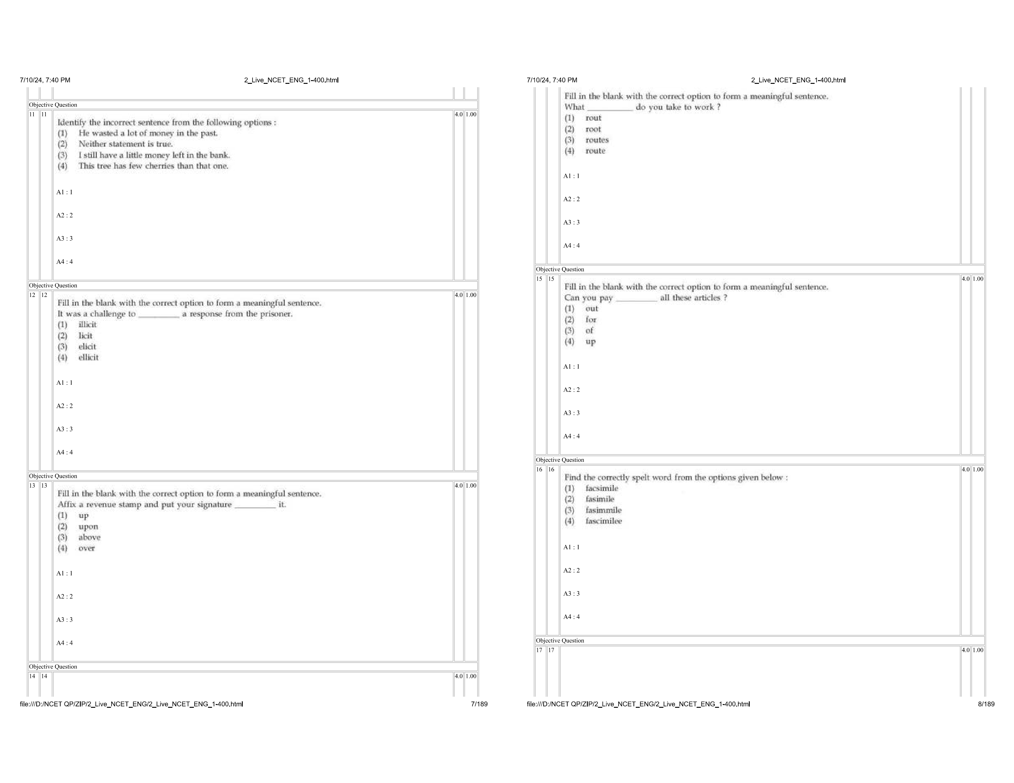 The question paper of NCET 2024 is as follows. National Common Entrance Test (NCET) is the National level Education entrance exam for admission to 4-Year Integrated Teacher Education Programme (ITEP) in Central, State Universities, Institutions including IITs, NITs, RIEs, and Government Colleges.