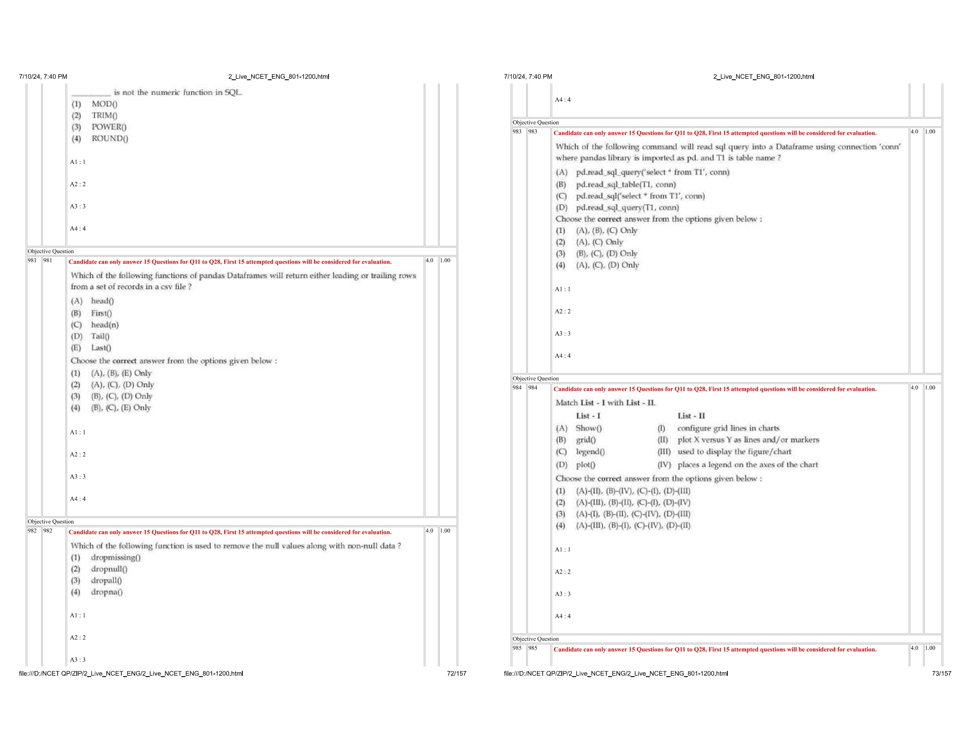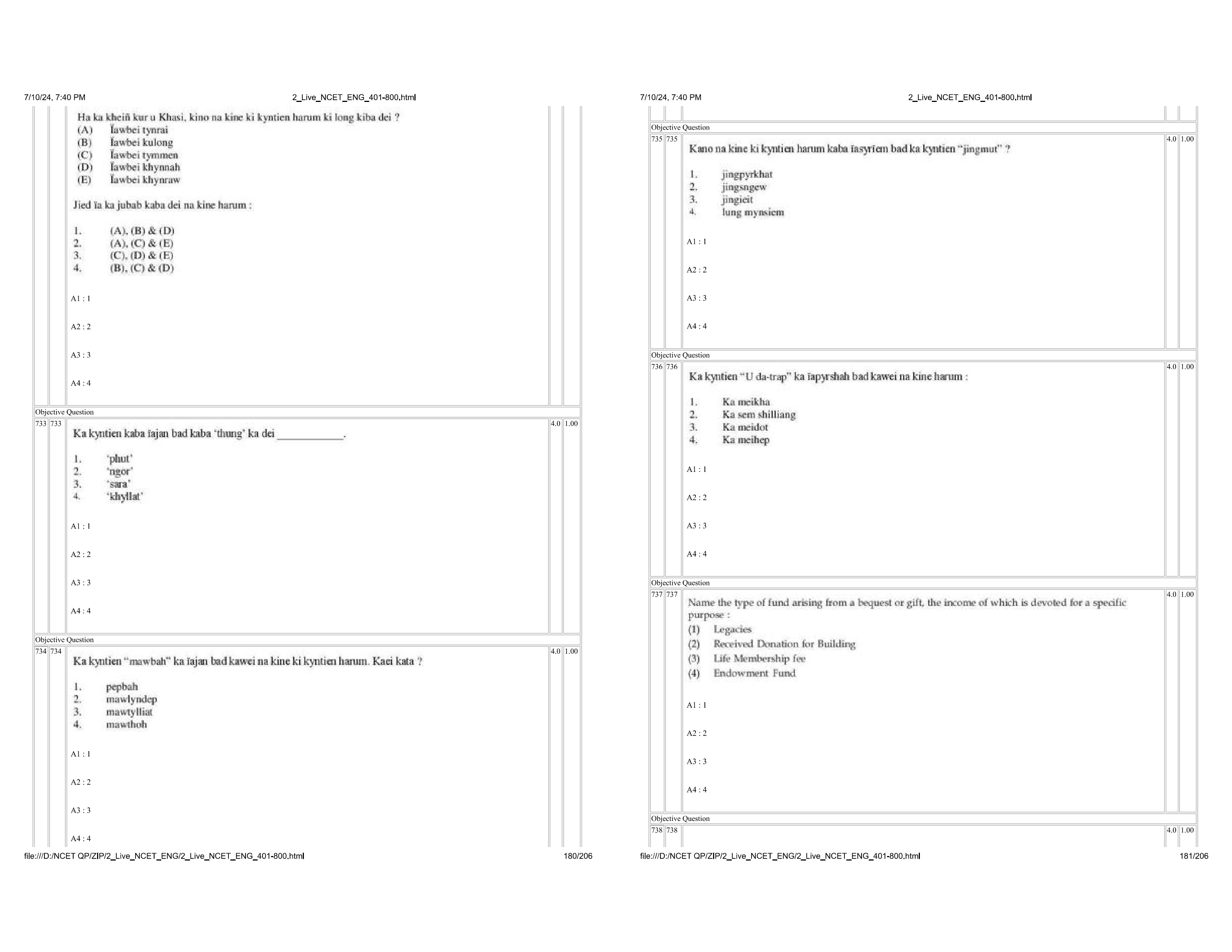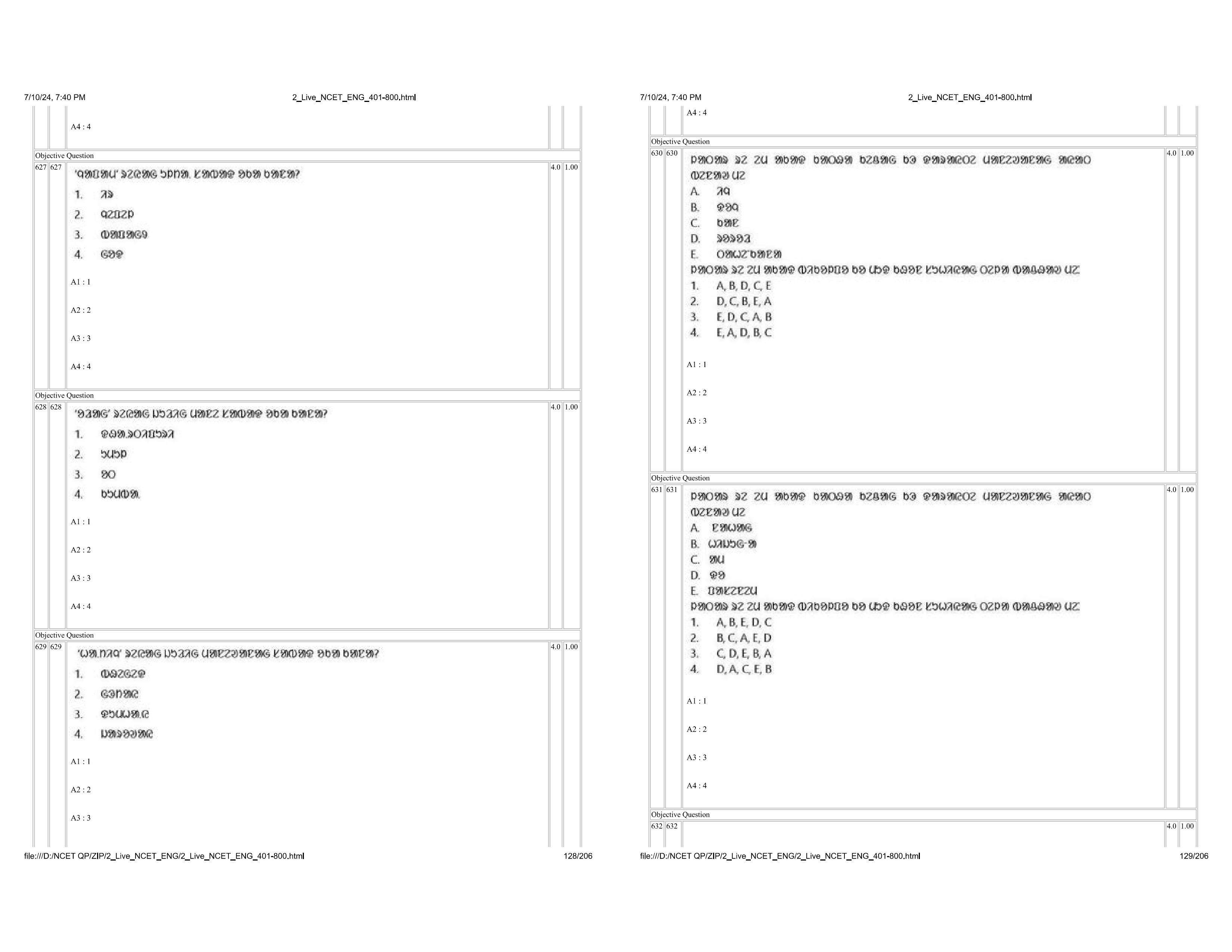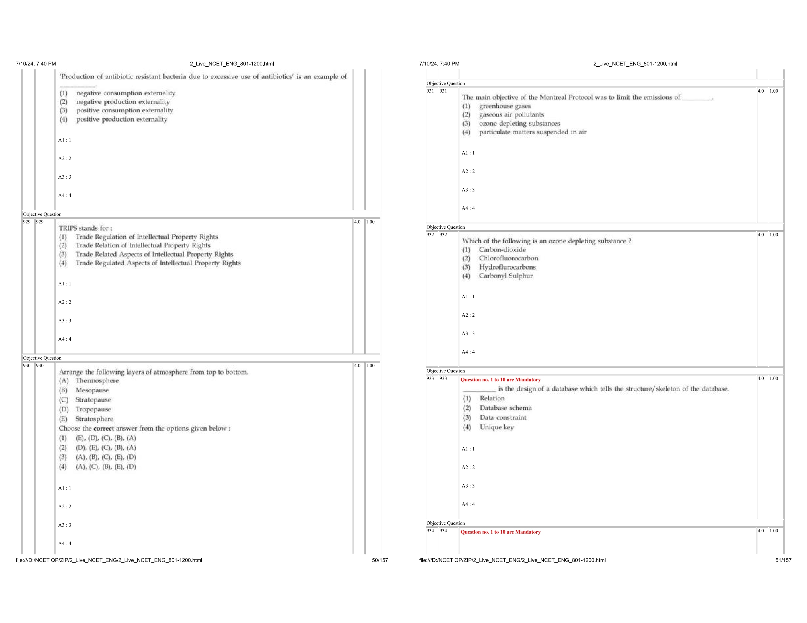 The question paper of NCET 2024 is as follows. National Common Entrance Test (NCET) is the National level Education entrance exam for admission to 4-Year Integrated Teacher Education Programme (ITEP) in Central, State Universities, Institutions including IITs, NITs, RIEs, and Government Colleges.