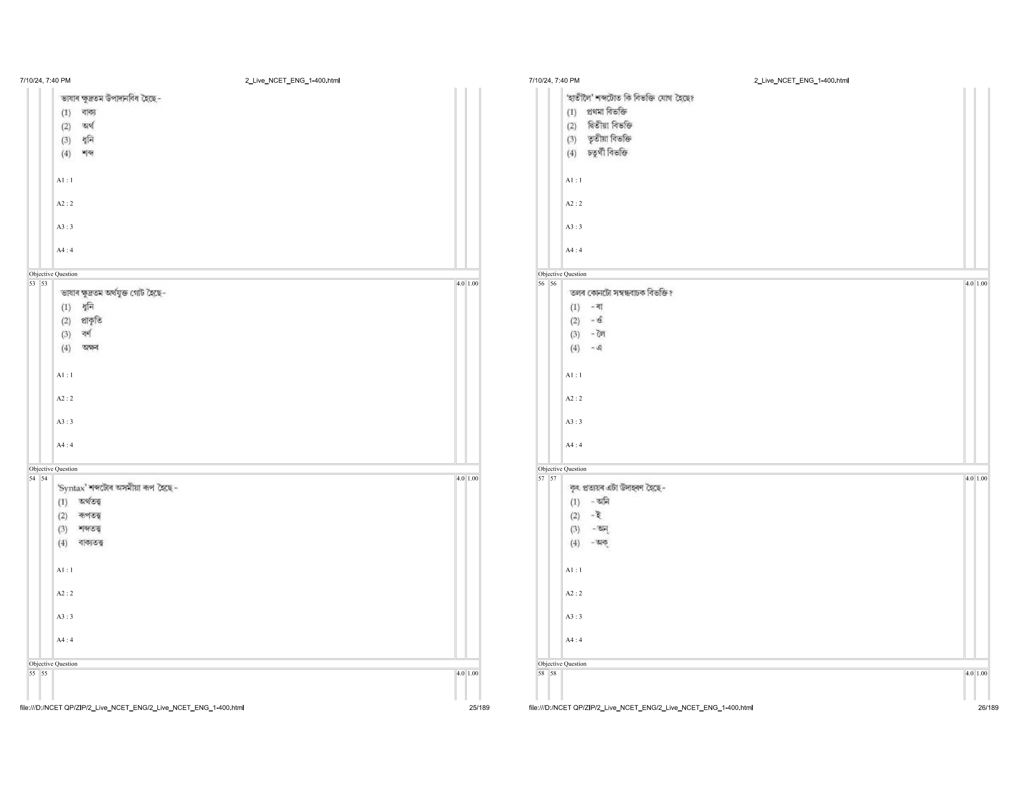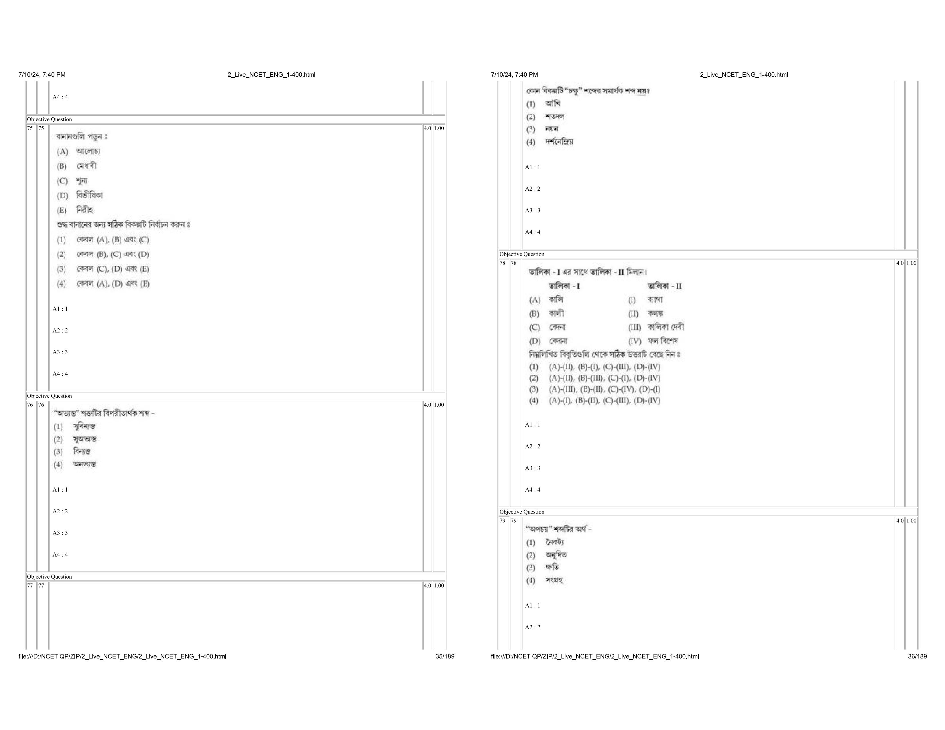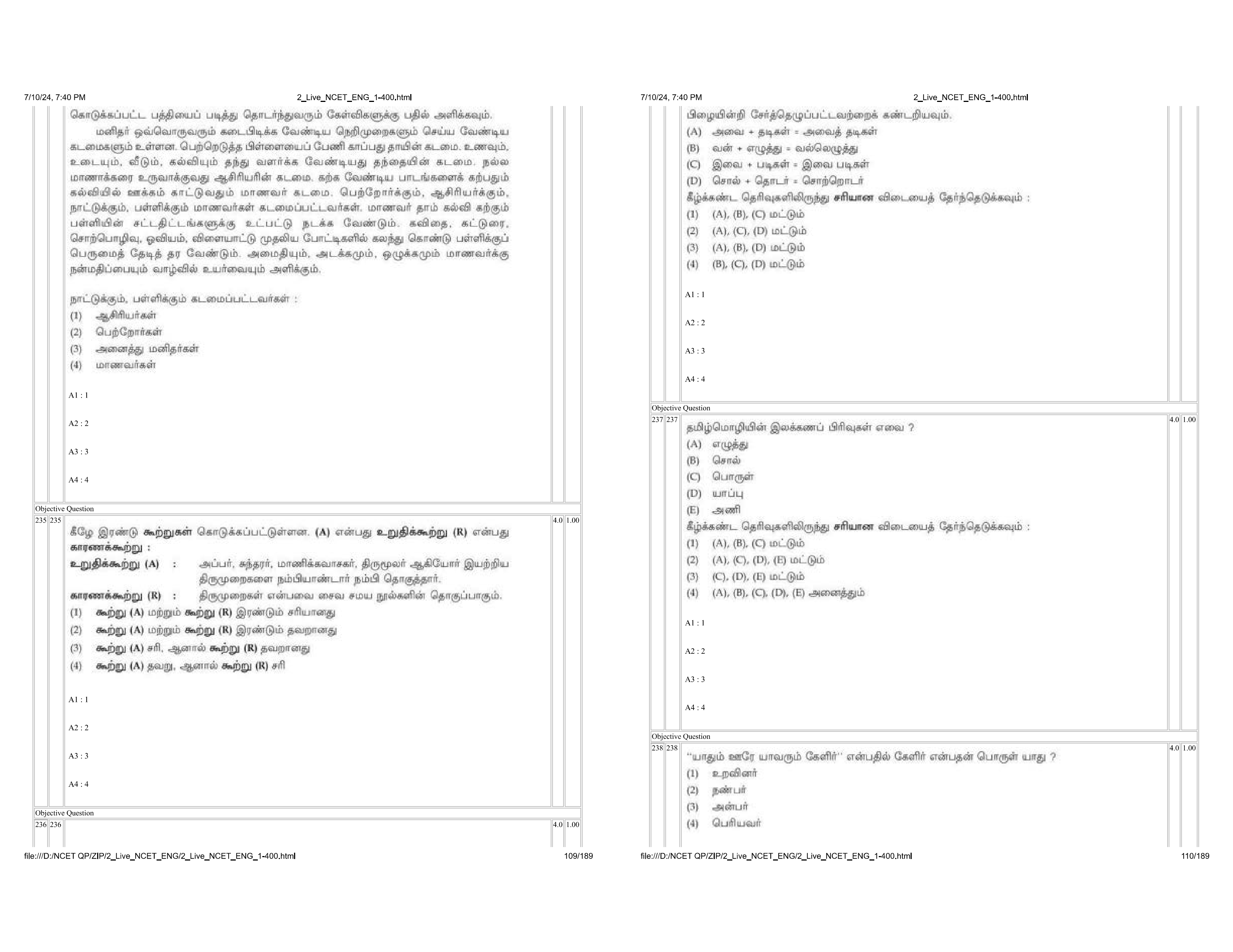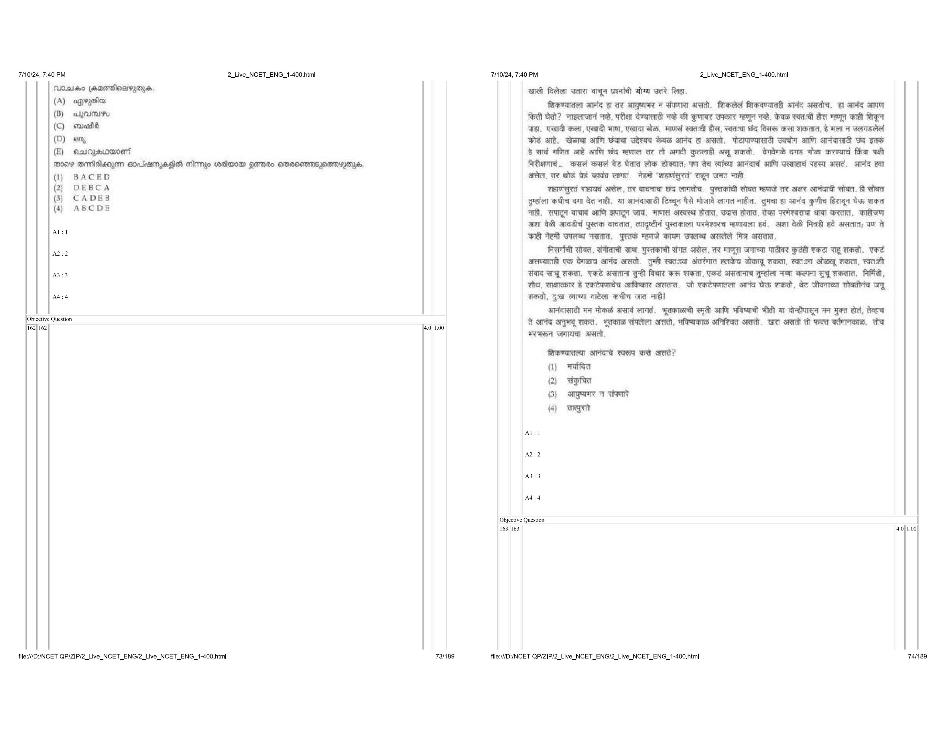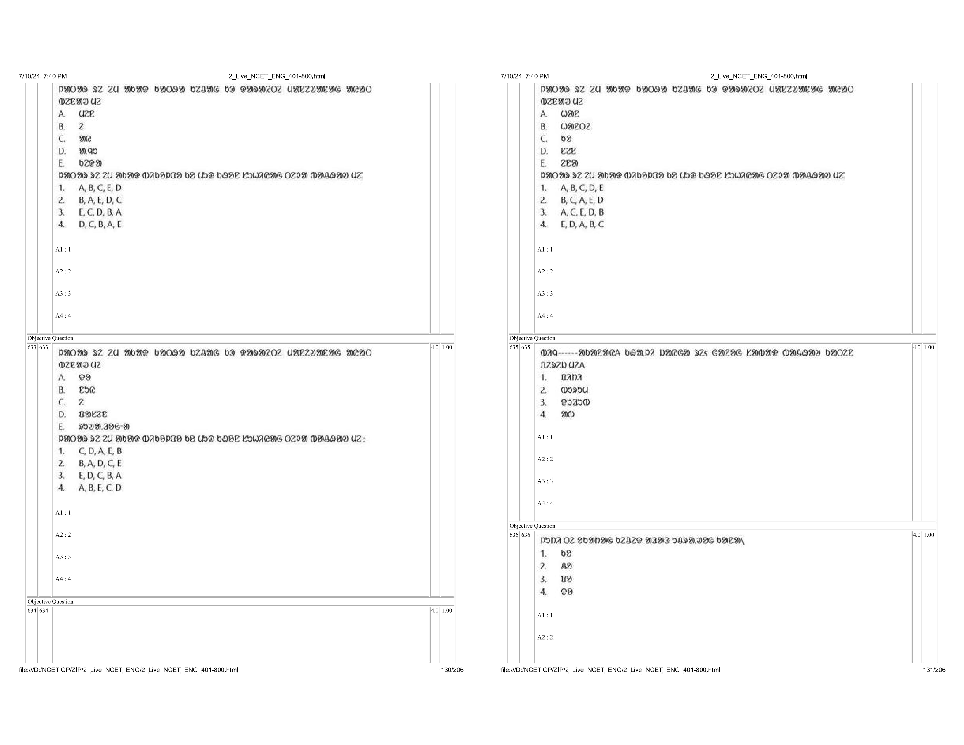 The question paper of NCET 2024 is as follows. National Common Entrance Test (NCET) is the National level Education entrance exam for admission to 4-Year Integrated Teacher Education Programme (ITEP) in Central, State Universities, Institutions including IITs, NITs, RIEs, and Government Colleges.