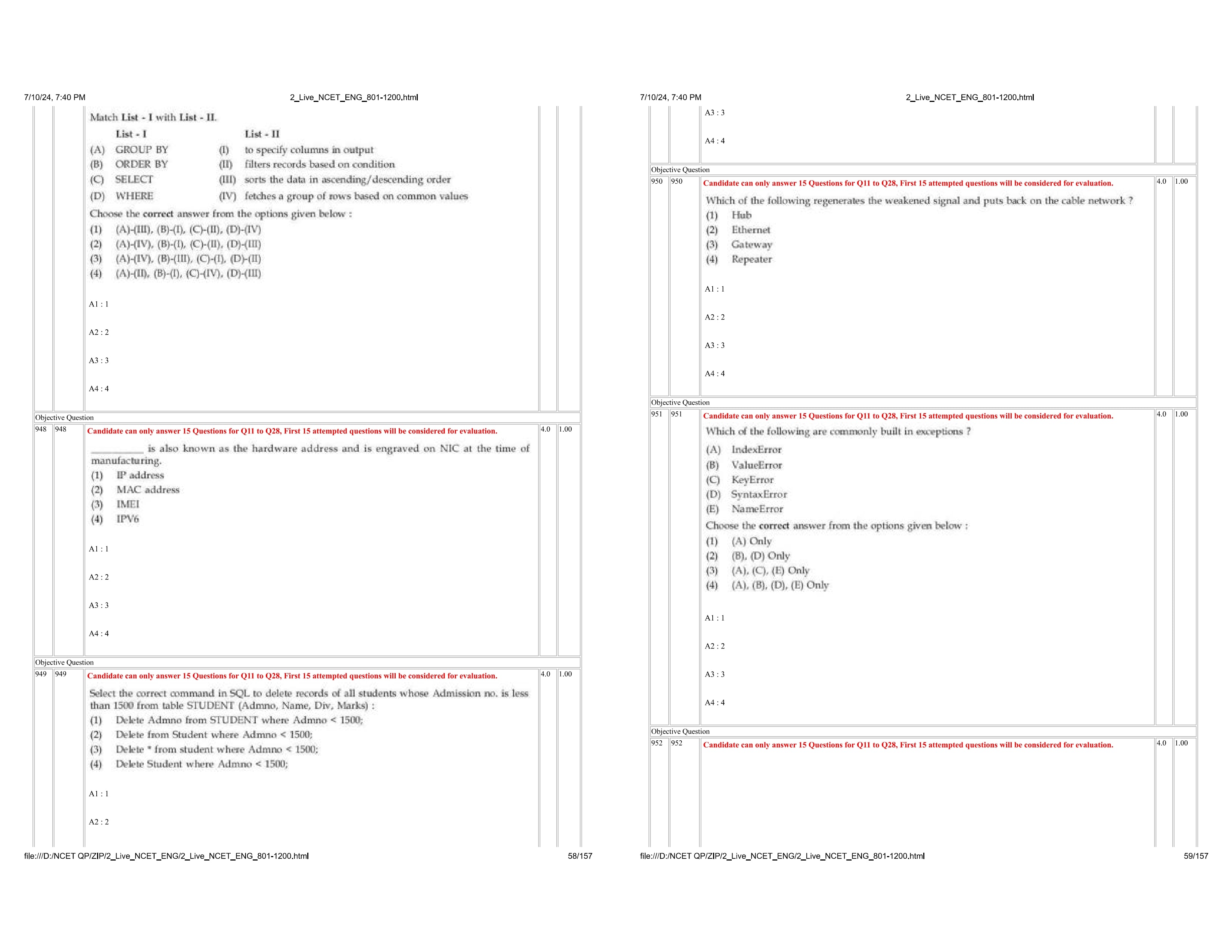 If you have any queries on NCET 2024 Question Paper, then please ask in comments below.