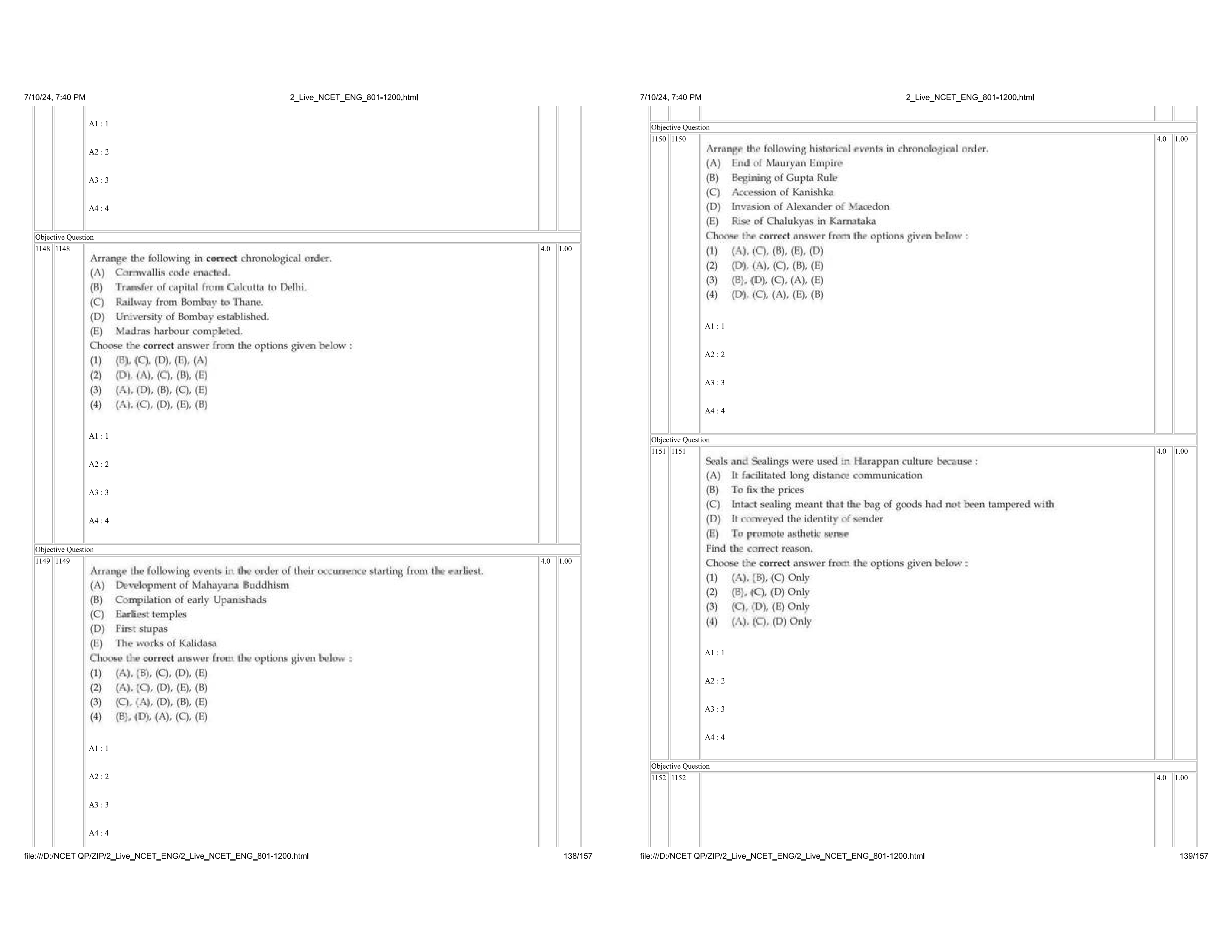The key highlights of this National Common Entrance Test (NCET) 2024 question papers are as follows.