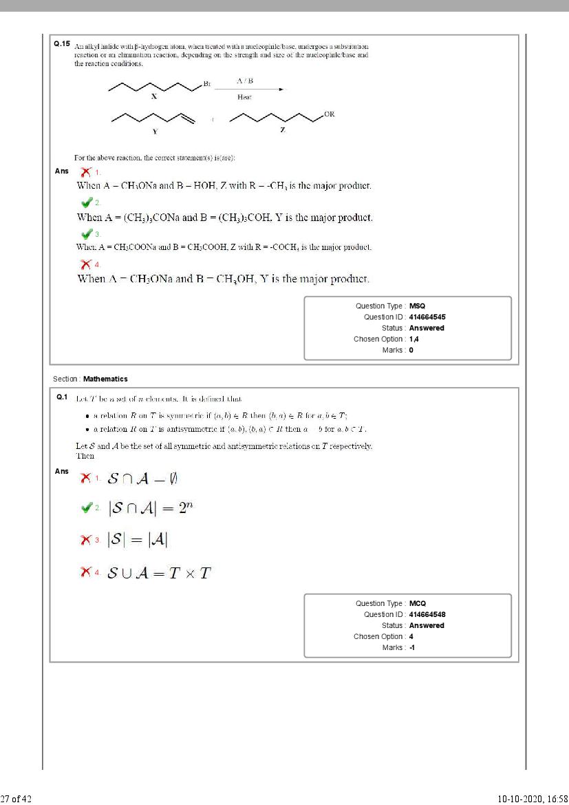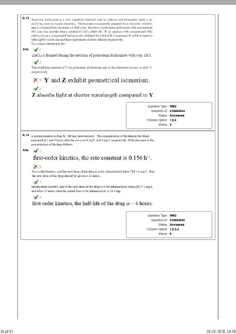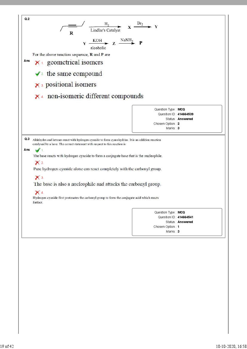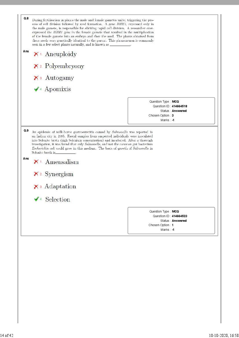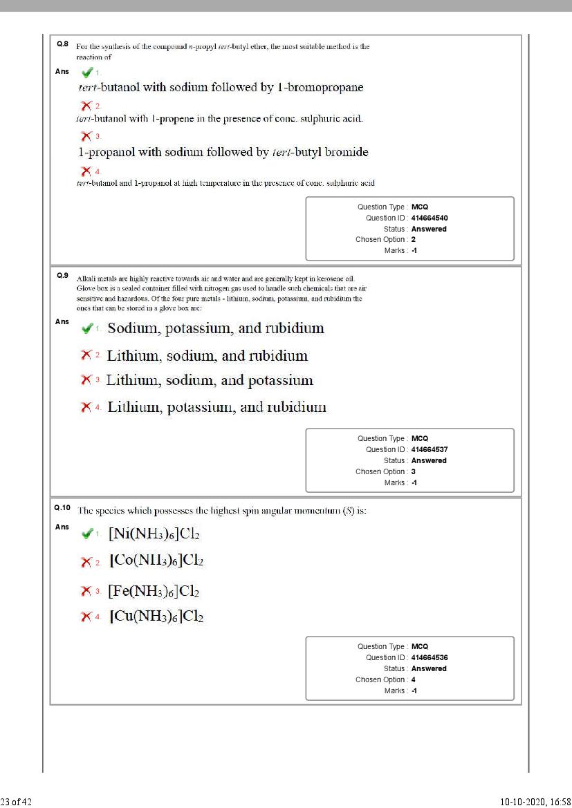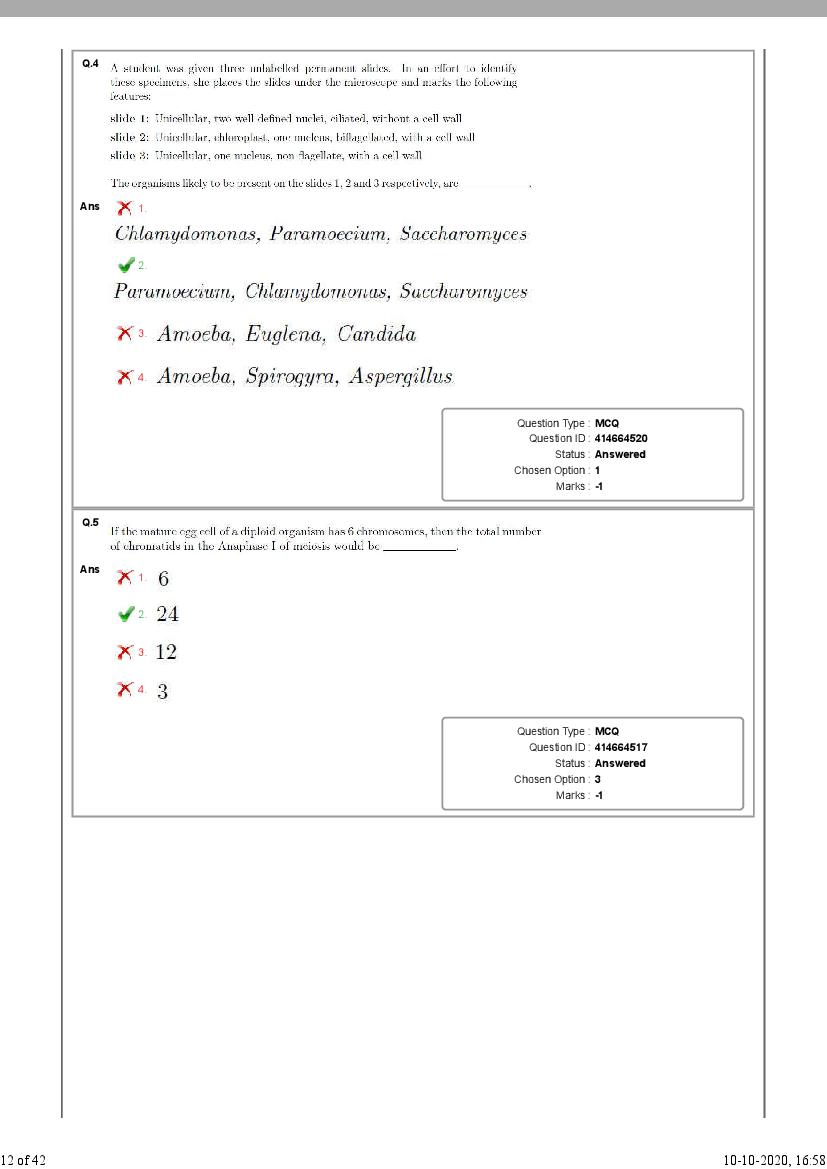 - Then see number of correct / incorrect answers as per NEST 2020 solutions.