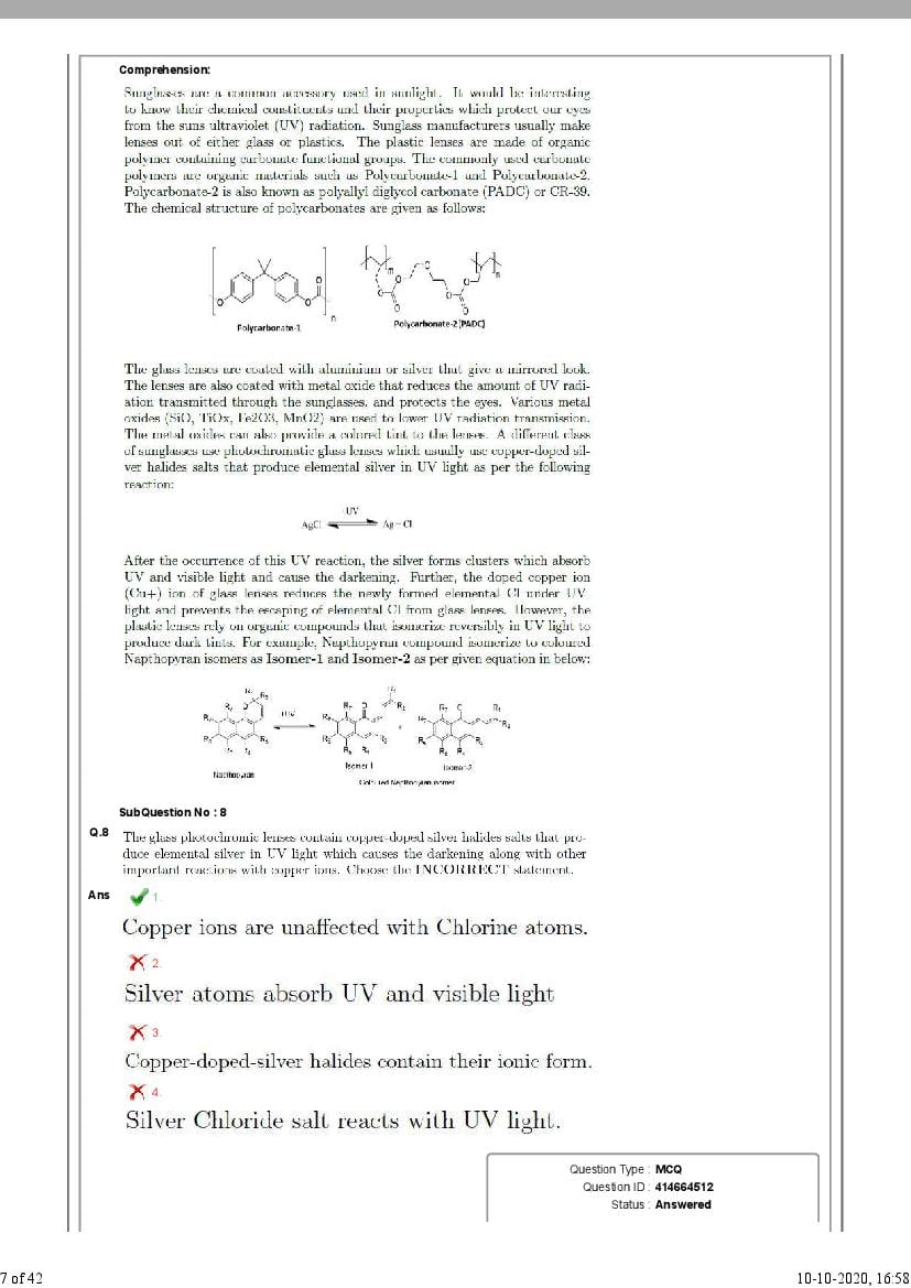 - Search NEST 2020 Question Paper aglasem.
