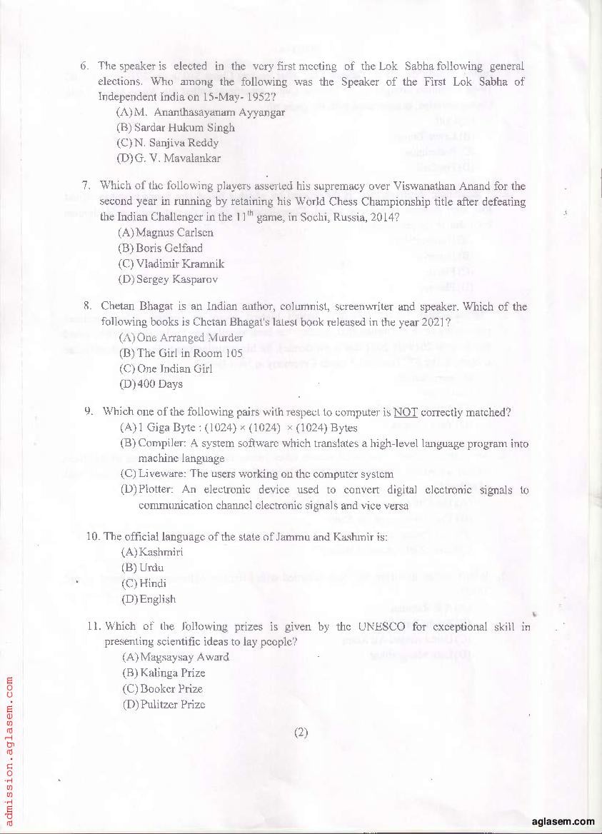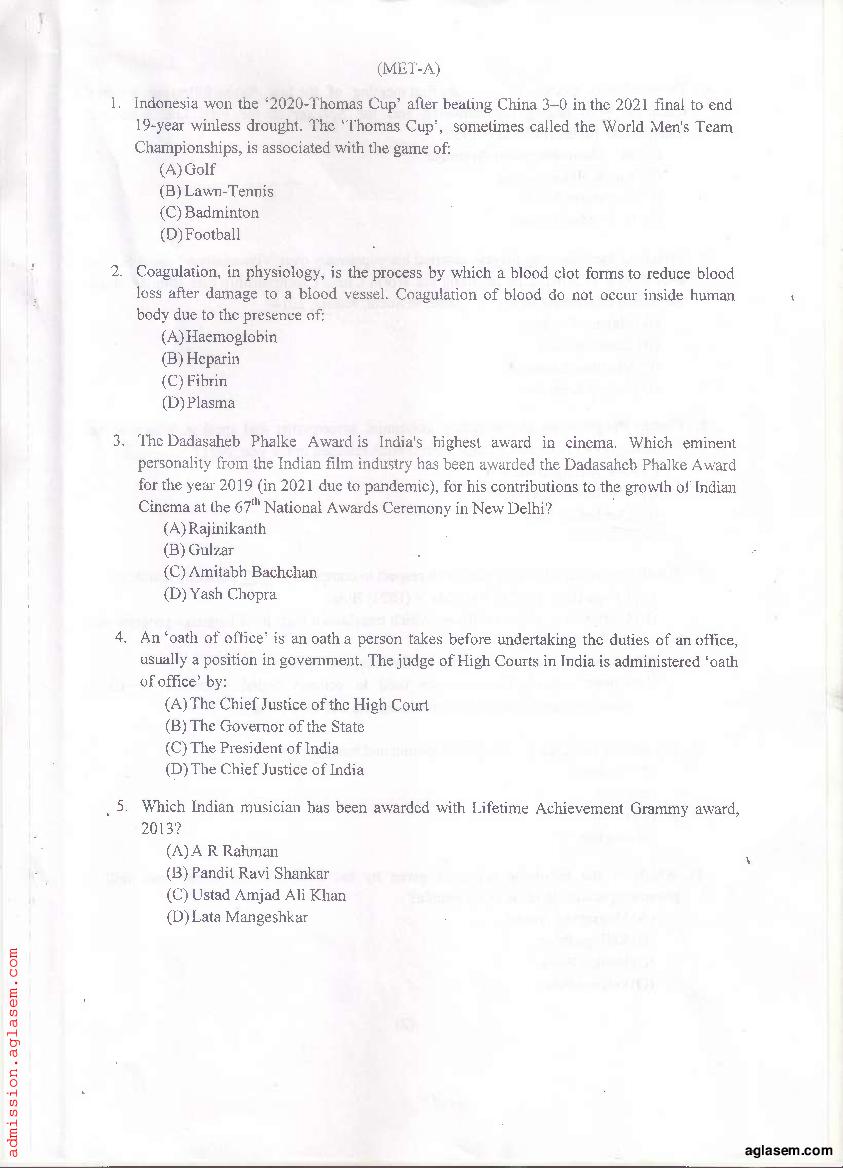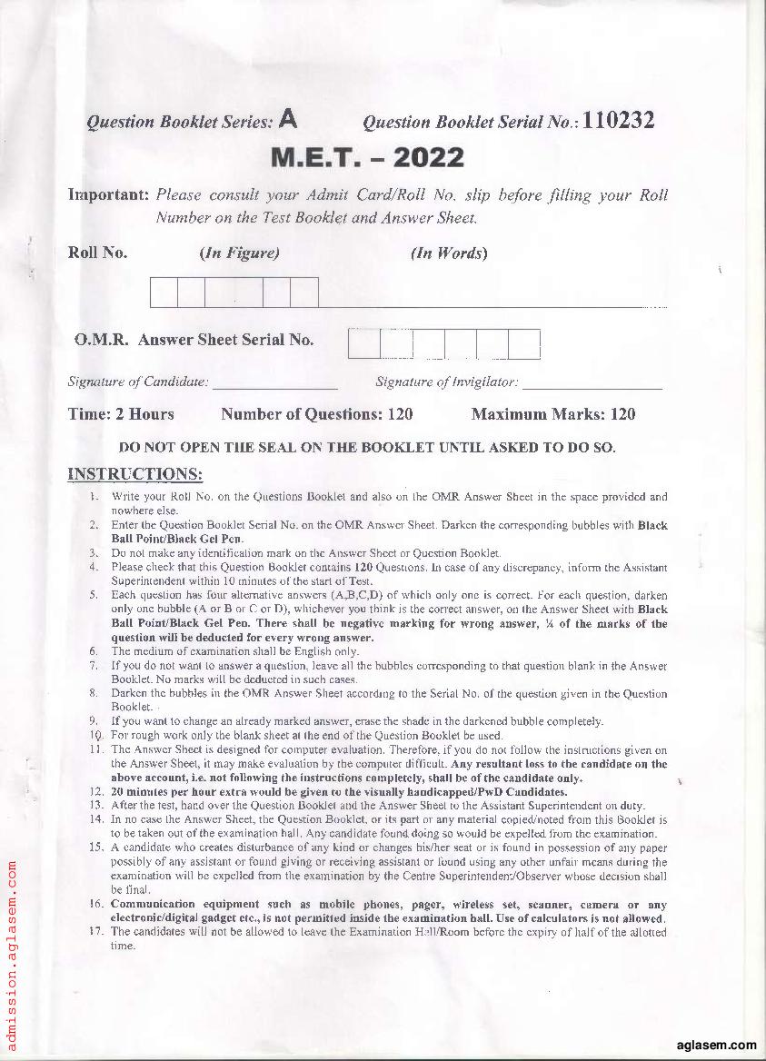 - Then click the PU MET 2022 Question Paper link of aglasem.