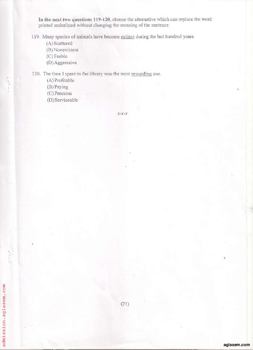The question paper of PU MET 2022 is as follows. Other than Panjab University Management Entrance Test, you can prepare for other MBA entrance exams also with it.