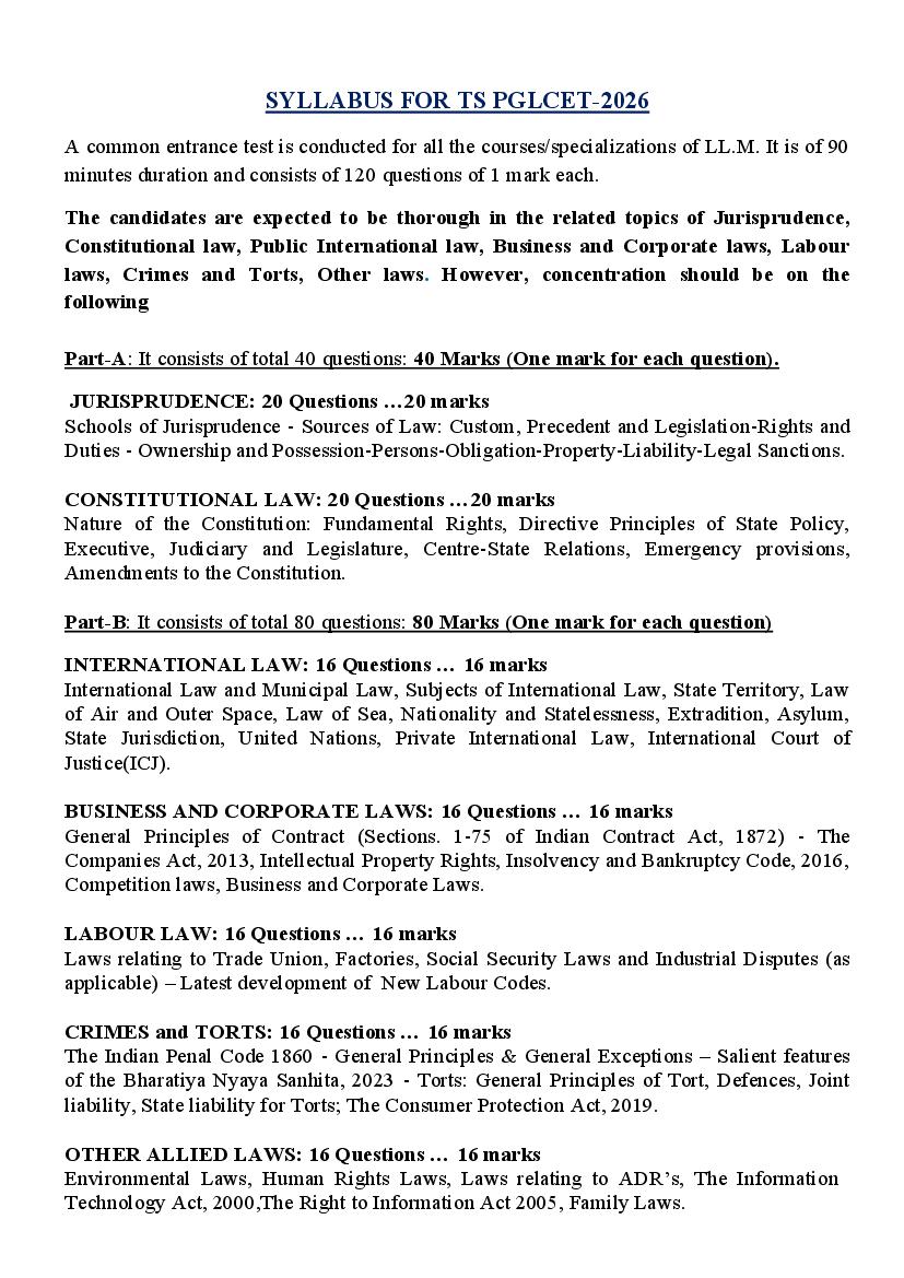| Official Website for Syllabus | lawcet.tgche.ac.in |