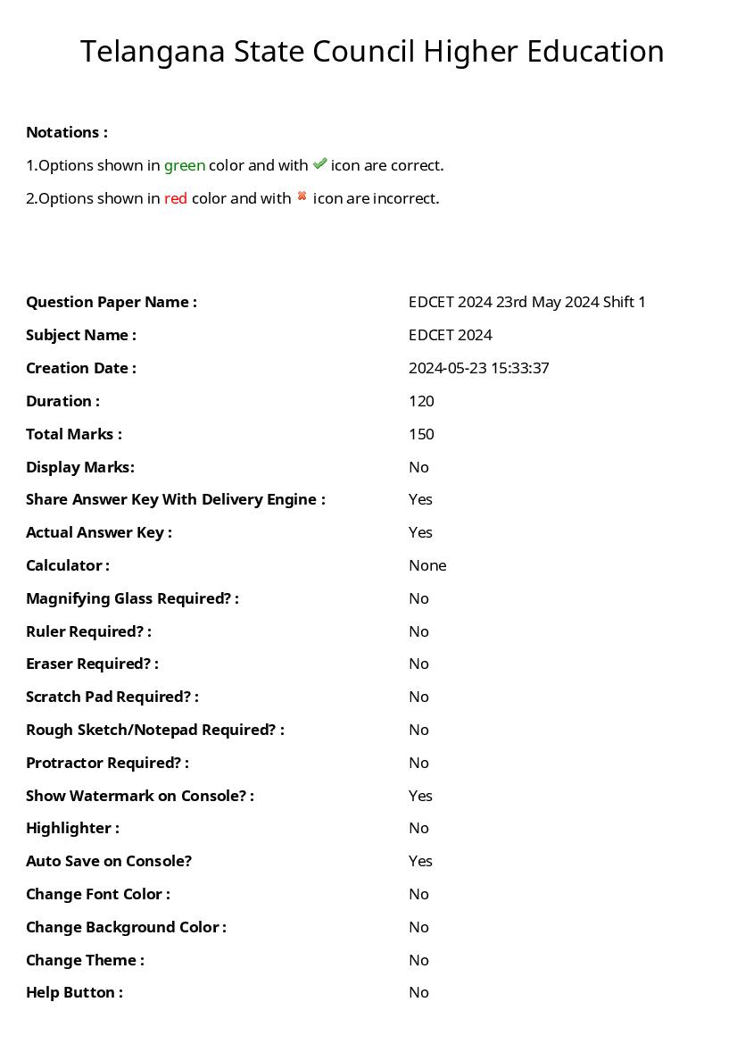 TS EdCET 2024 Question Paper 23 May Shift 1 View Download