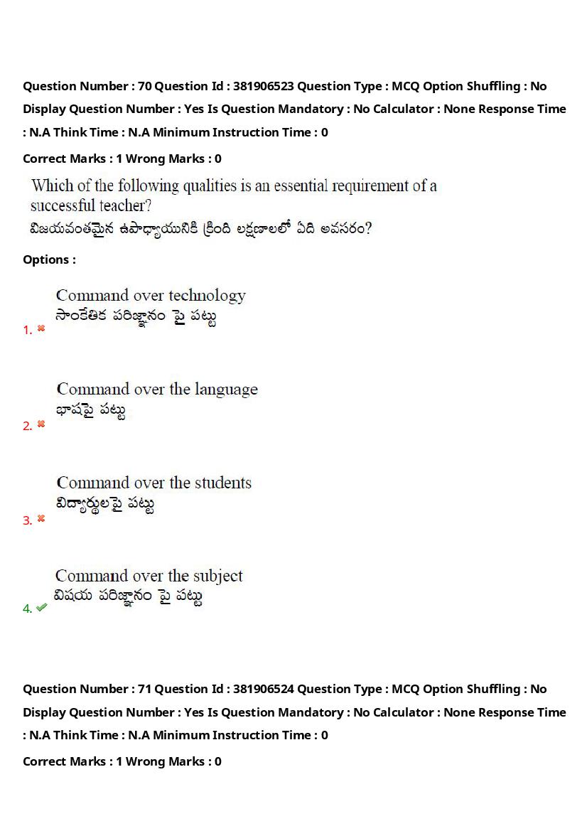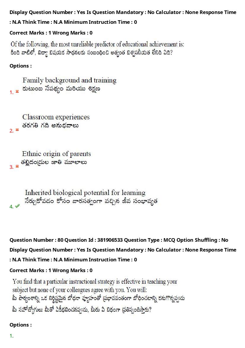 The question paper of TS EDCET 2024 is as follows. Telangana State Education Common Entrance Test (TS EdCET) is the State level Education entrance exam for admission to B.Ed in Colleges of Education in Telangana.