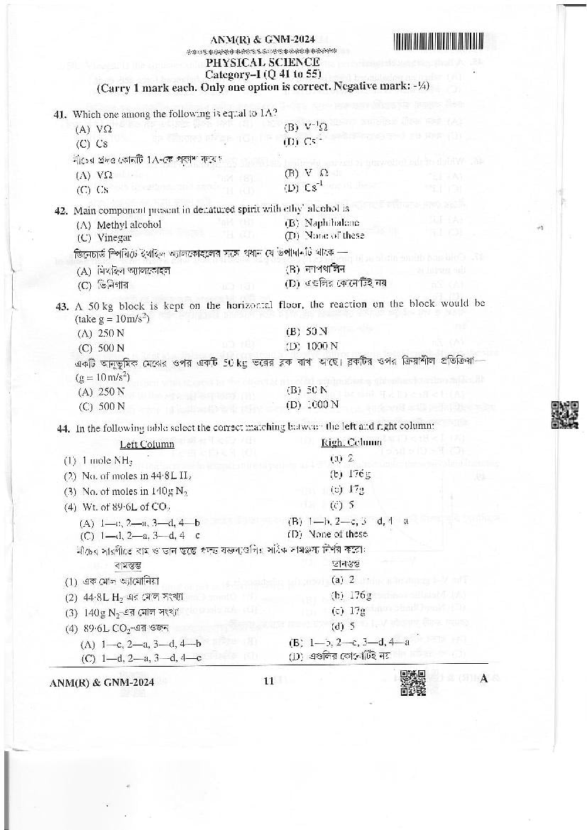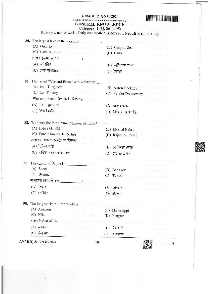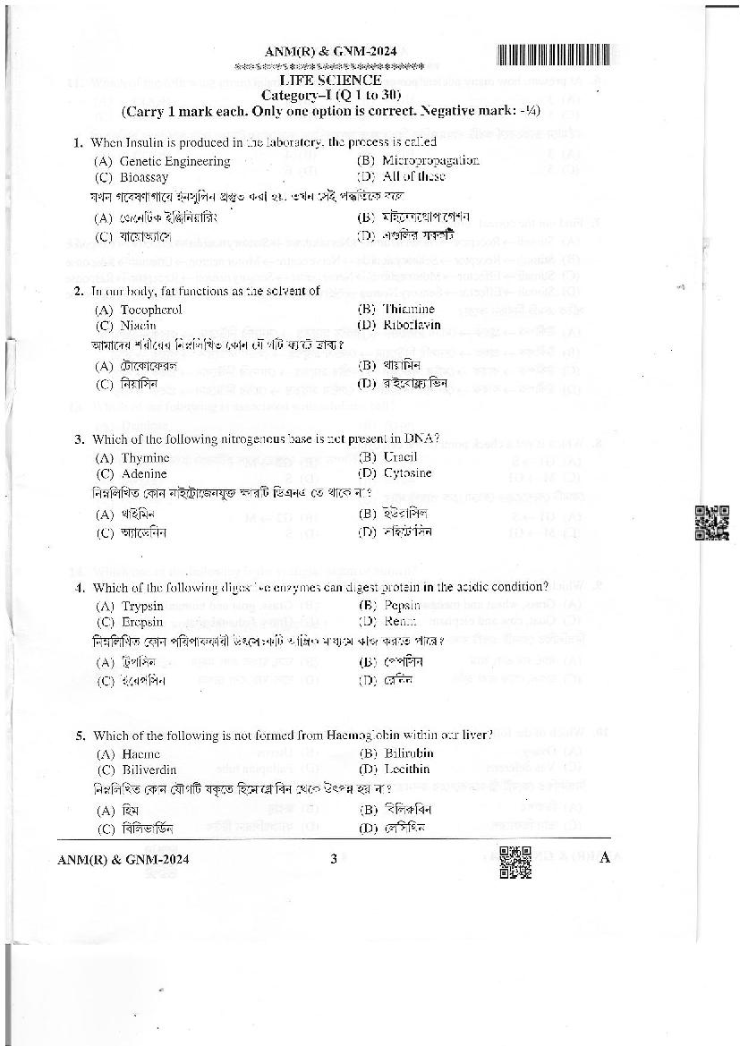 The portable document format of the West Bengal ANM GNM Question Paper 2024 is the following.