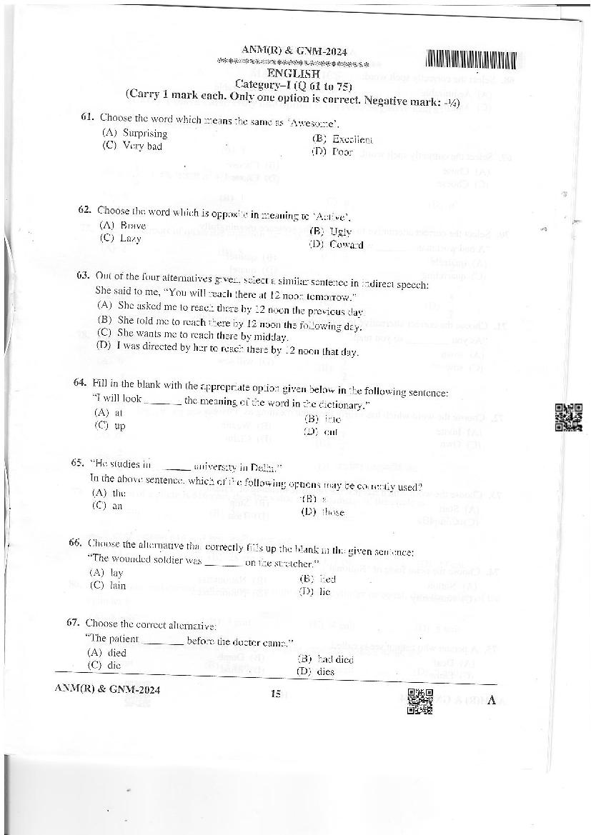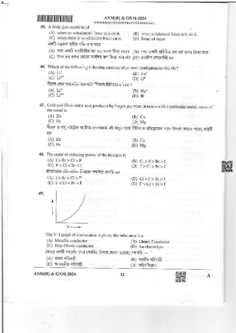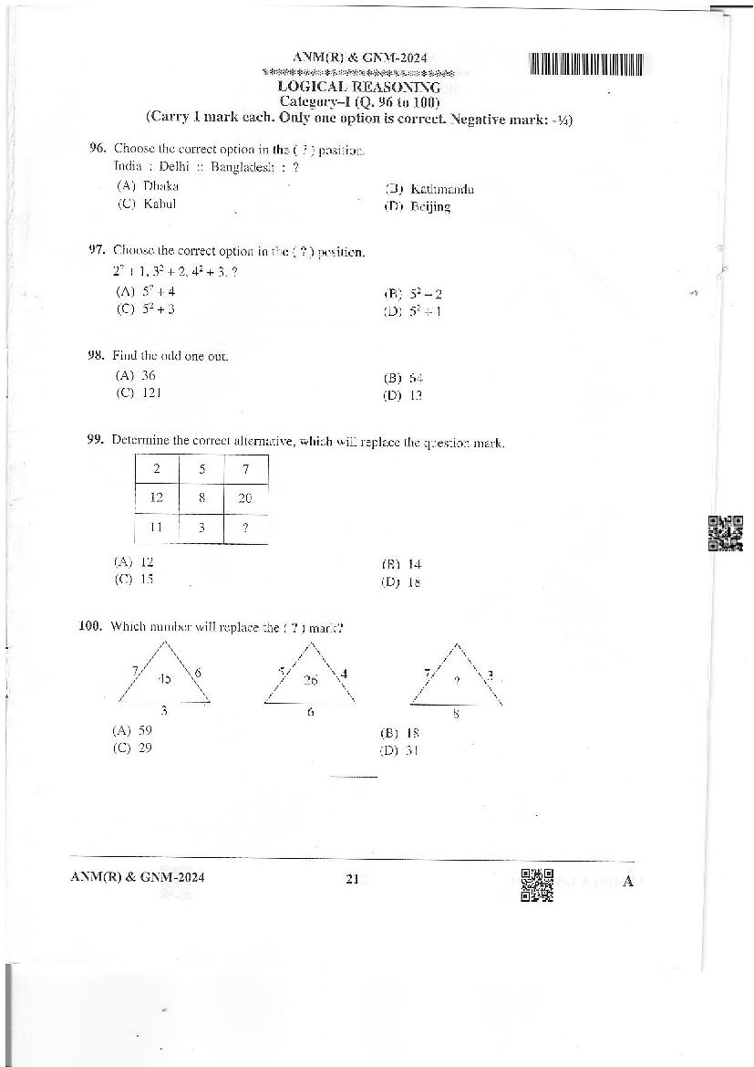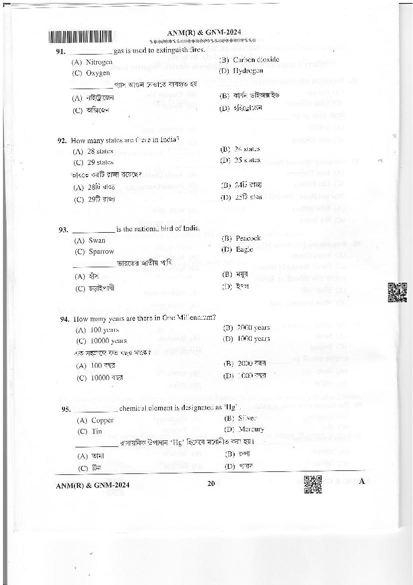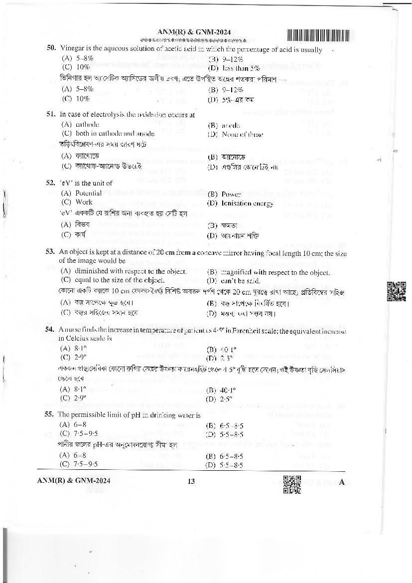 - Search West Bengal ANM GNM 2024 Question Paper aglasem.