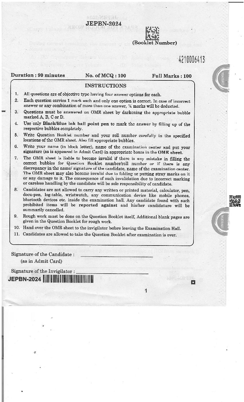 Qs. Can I get WBJEE JEPBN 2024 Question paper?